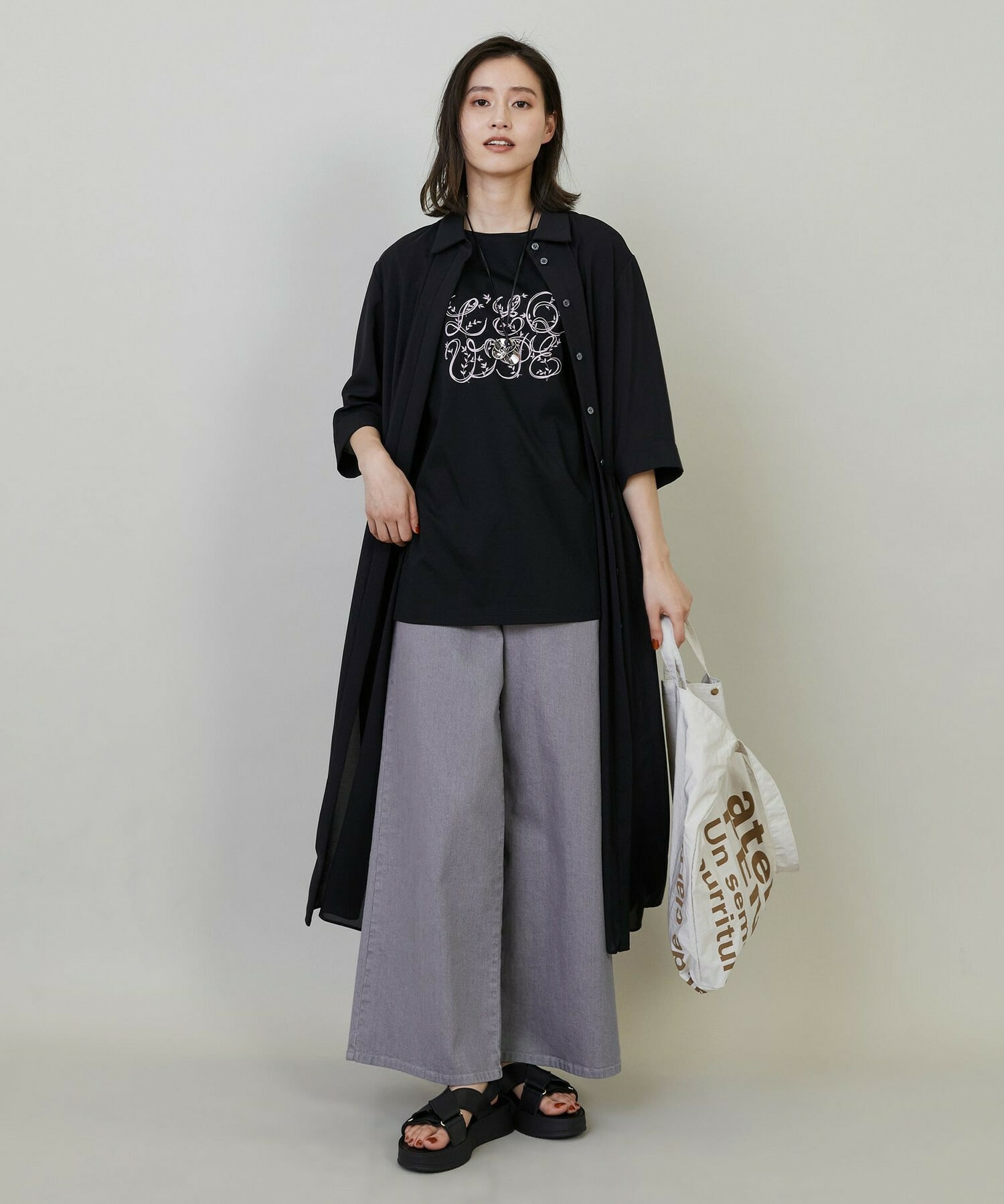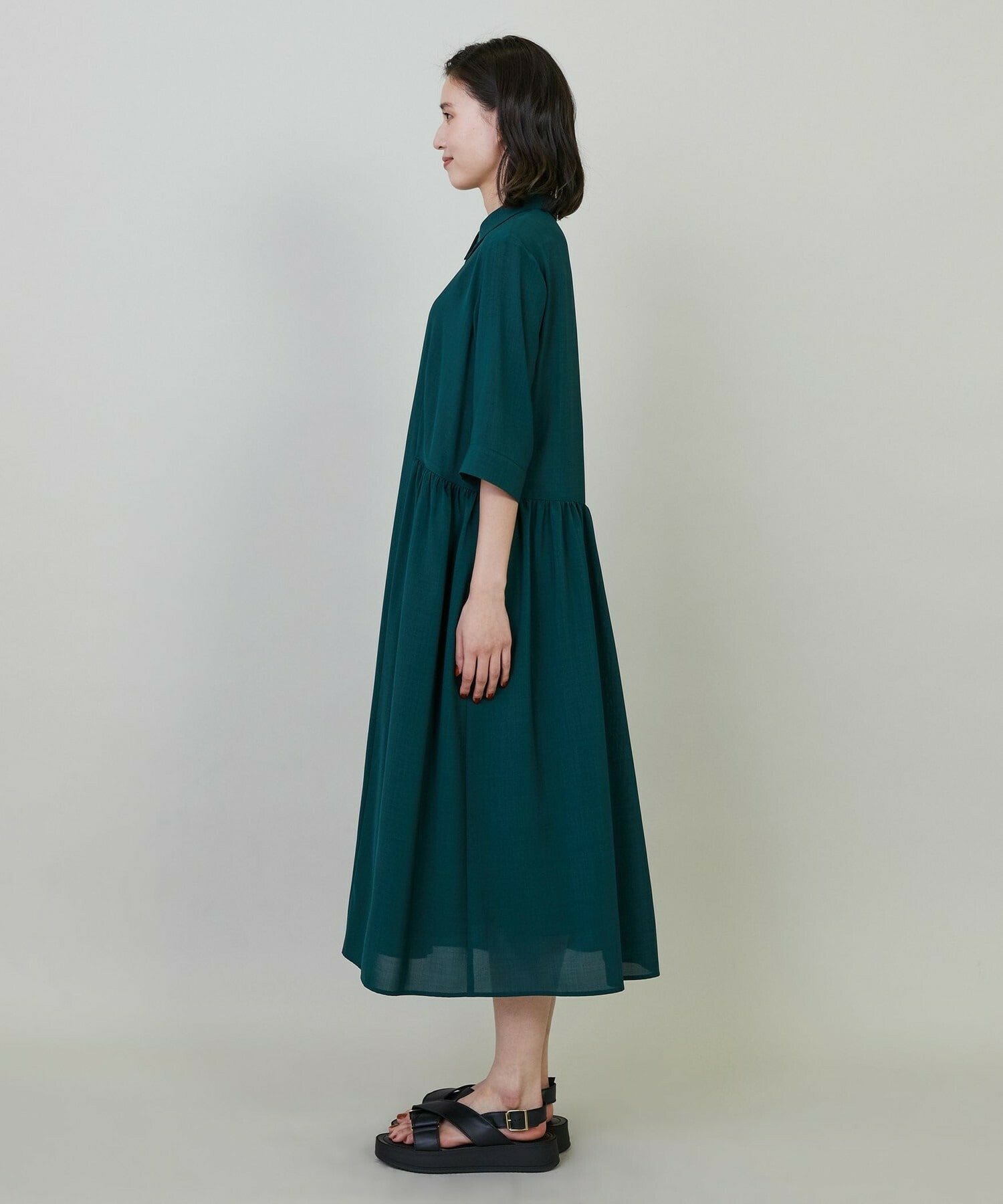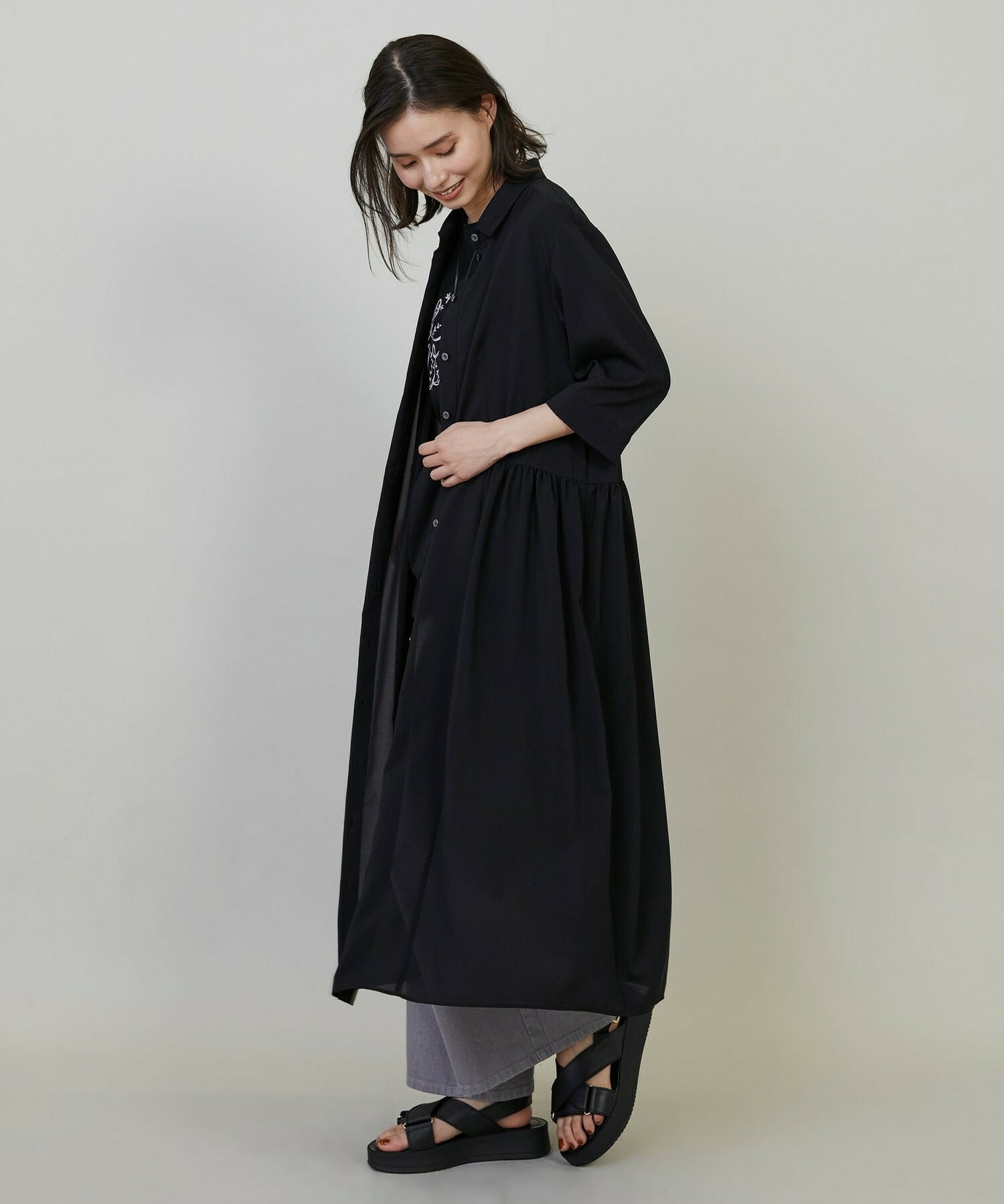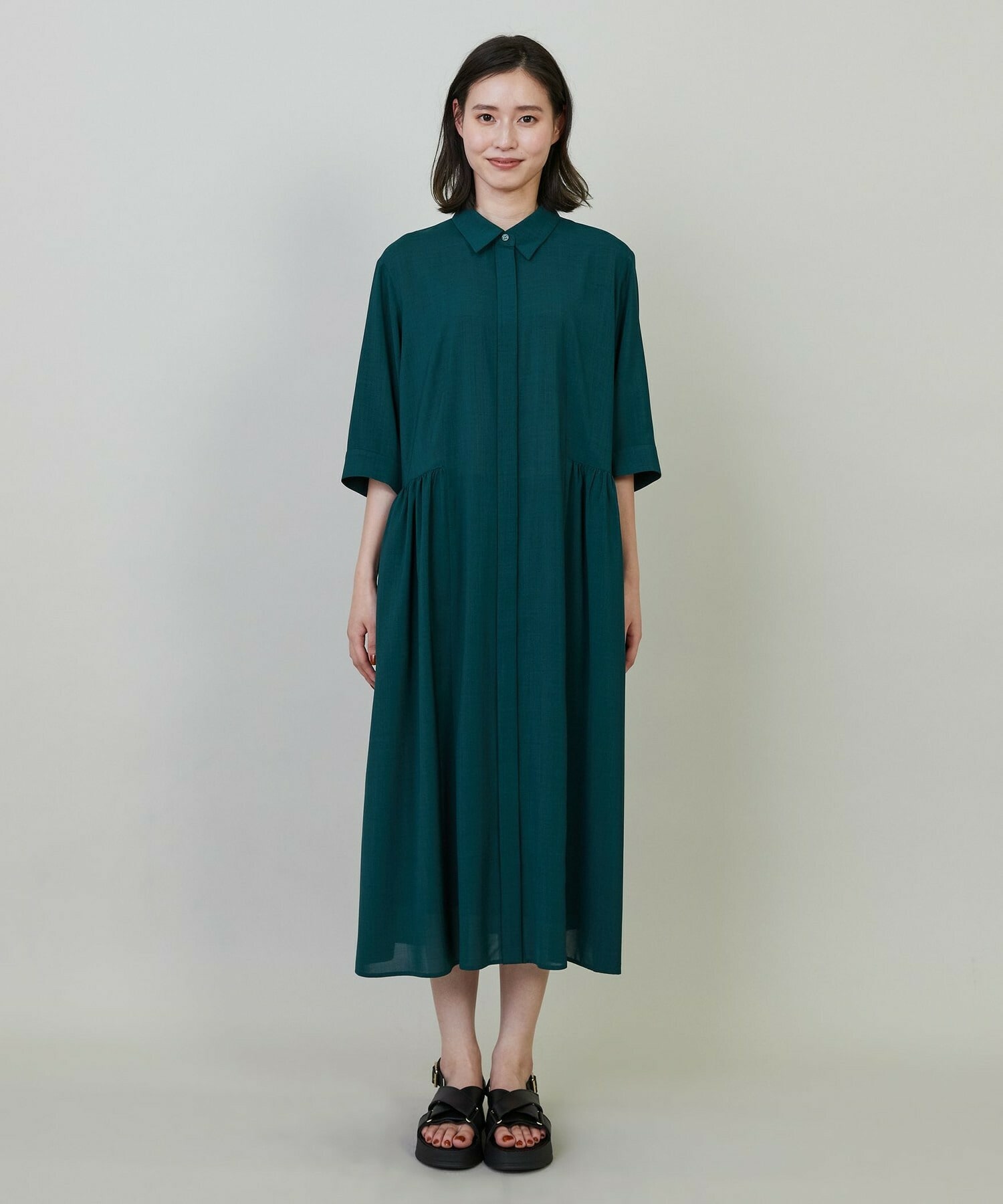 キュプラとポリエステルのきれいめのローン素材。タンブラー加工により膨らみを出しました。キュプラ独特の光沢感や落ち感があるので、揺れるような美しいシルエットを表現できます。