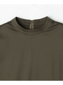 超長綿で編んだハイゲージスムースです。超長綿を使用した生地はシルクのような光沢や上質な風合いを持っており、一般的な綿に比べて一線を画します。また、コンパクトな目面を更に後加工で極限まで毛羽を削ぎ落とし、上品な光沢を表現しました。