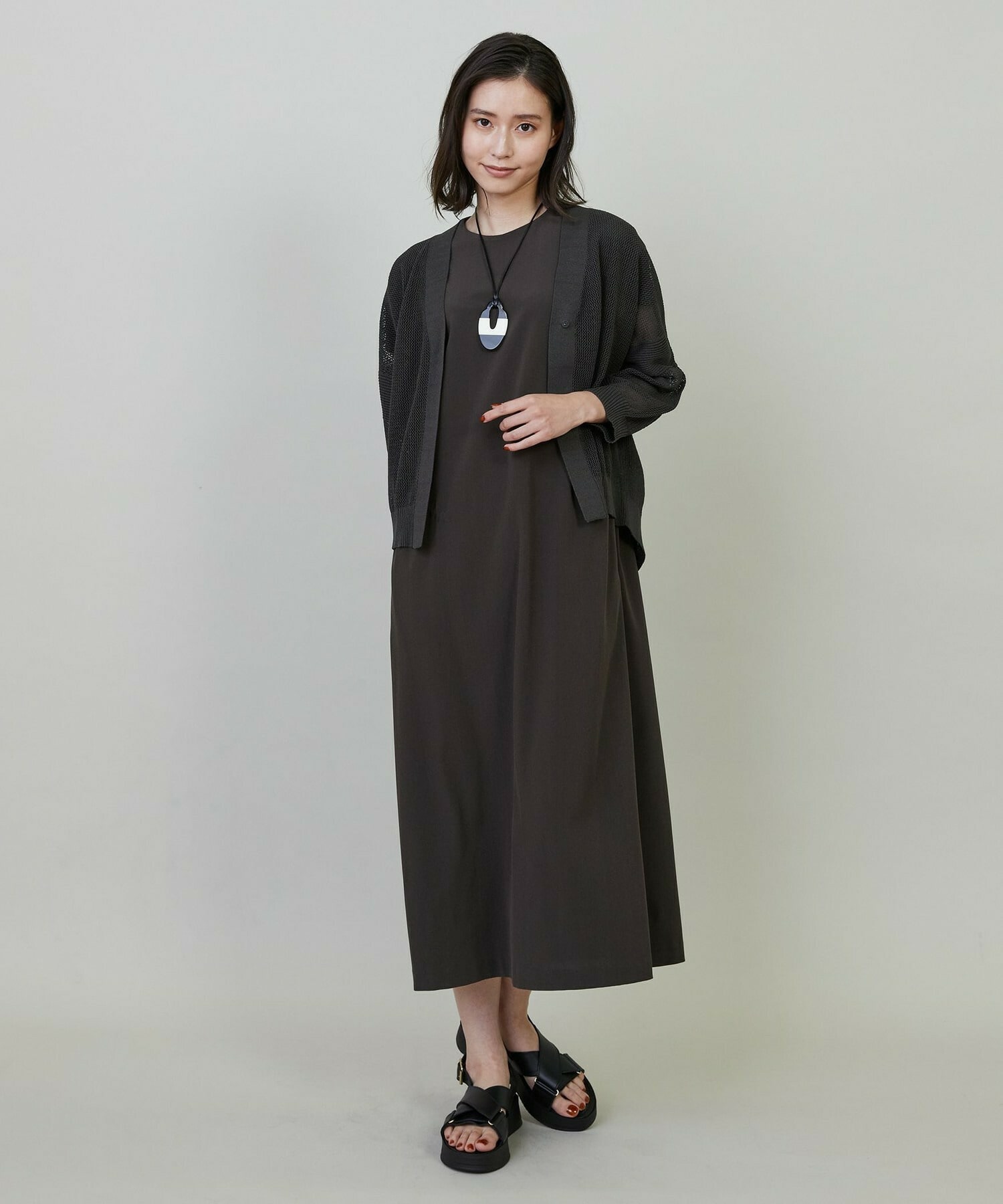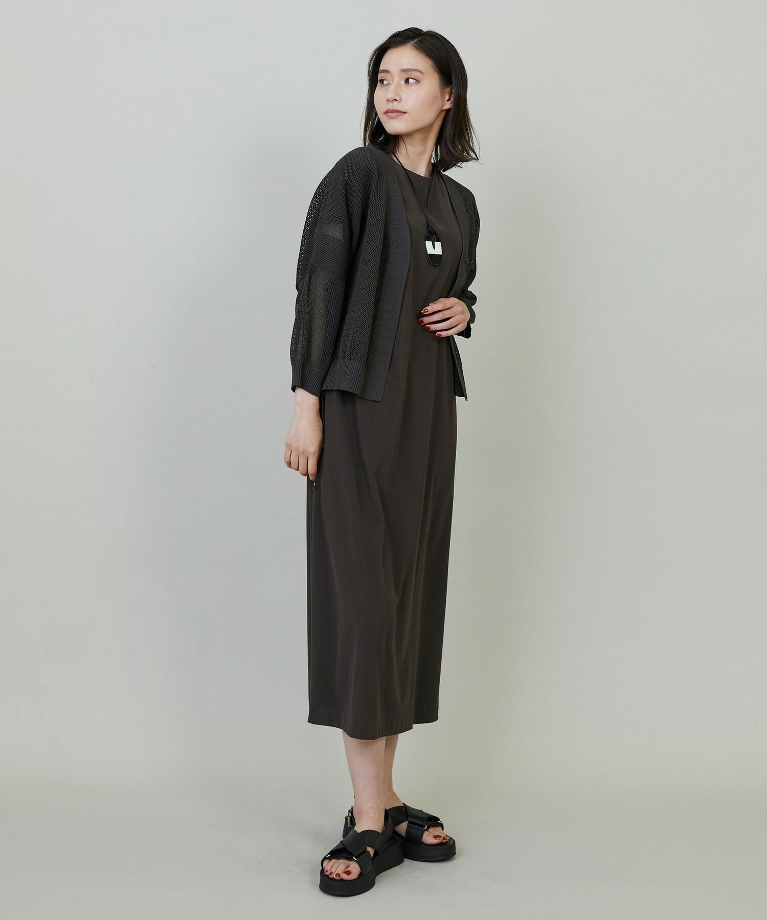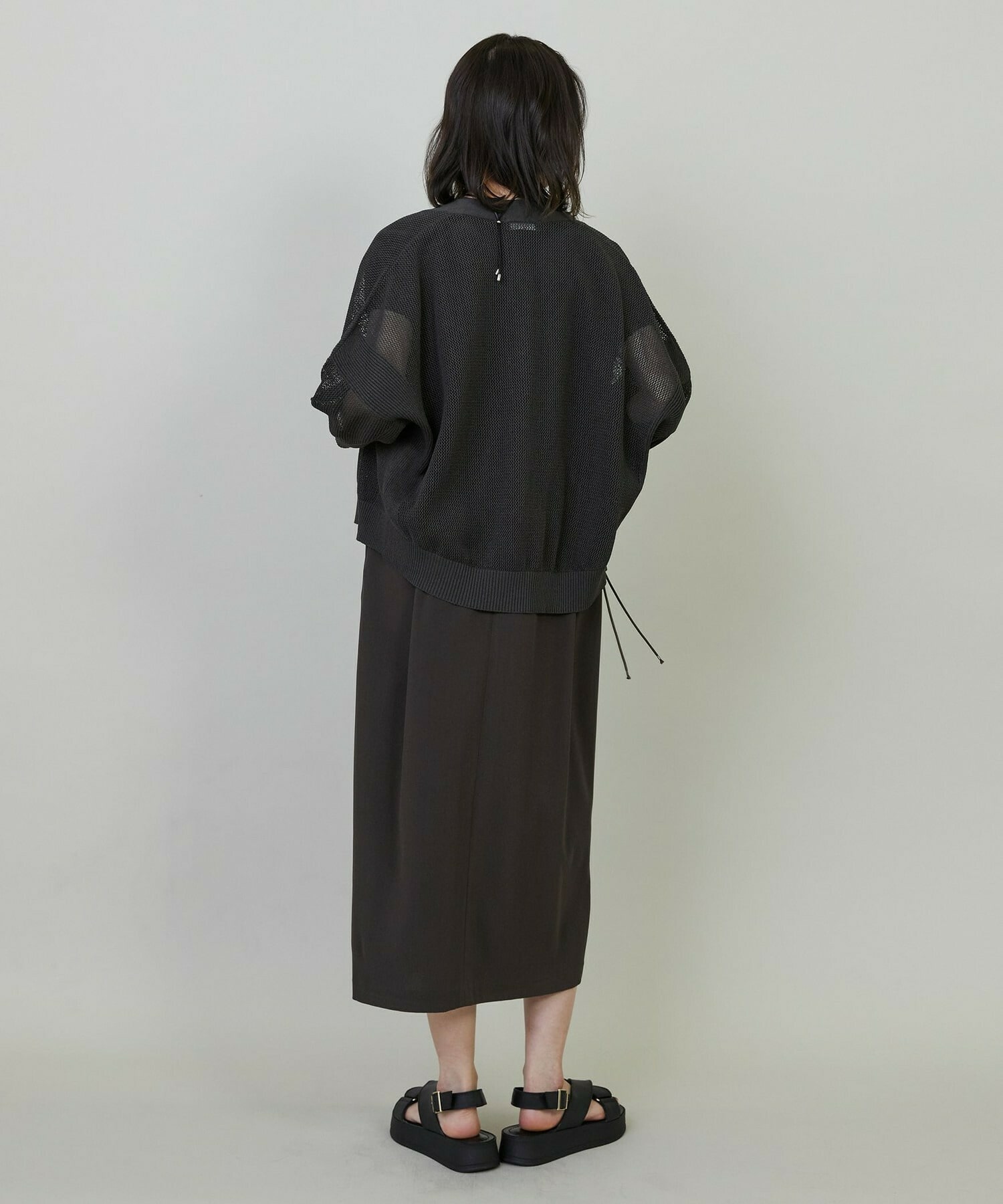 インナーが透けて見えるので、合わせる色やプリントによりスタイリングのアレンジをお楽しみ頂けます。