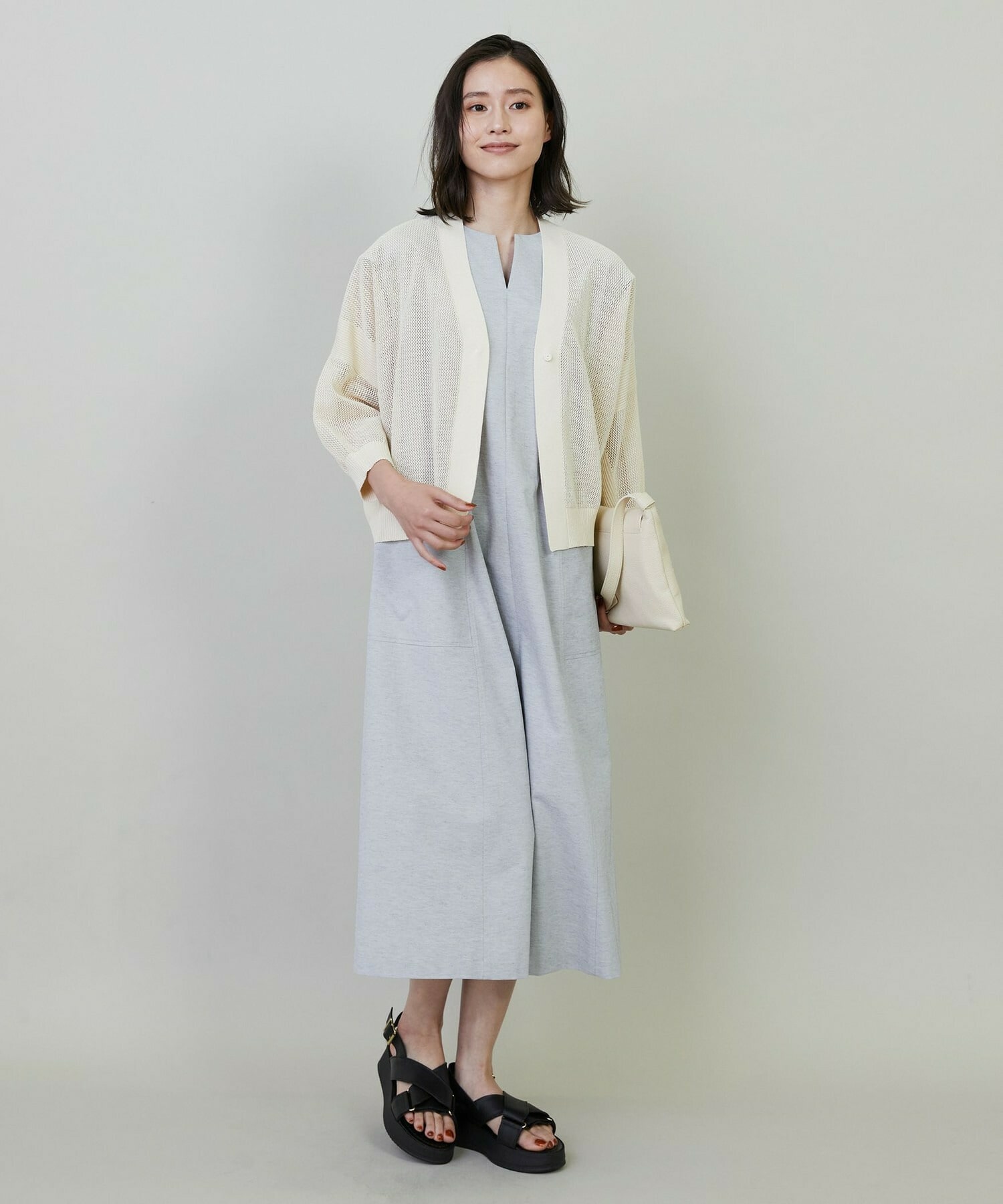 袖は八分袖で仕上げ、冷房対策としても着用して頂けます。