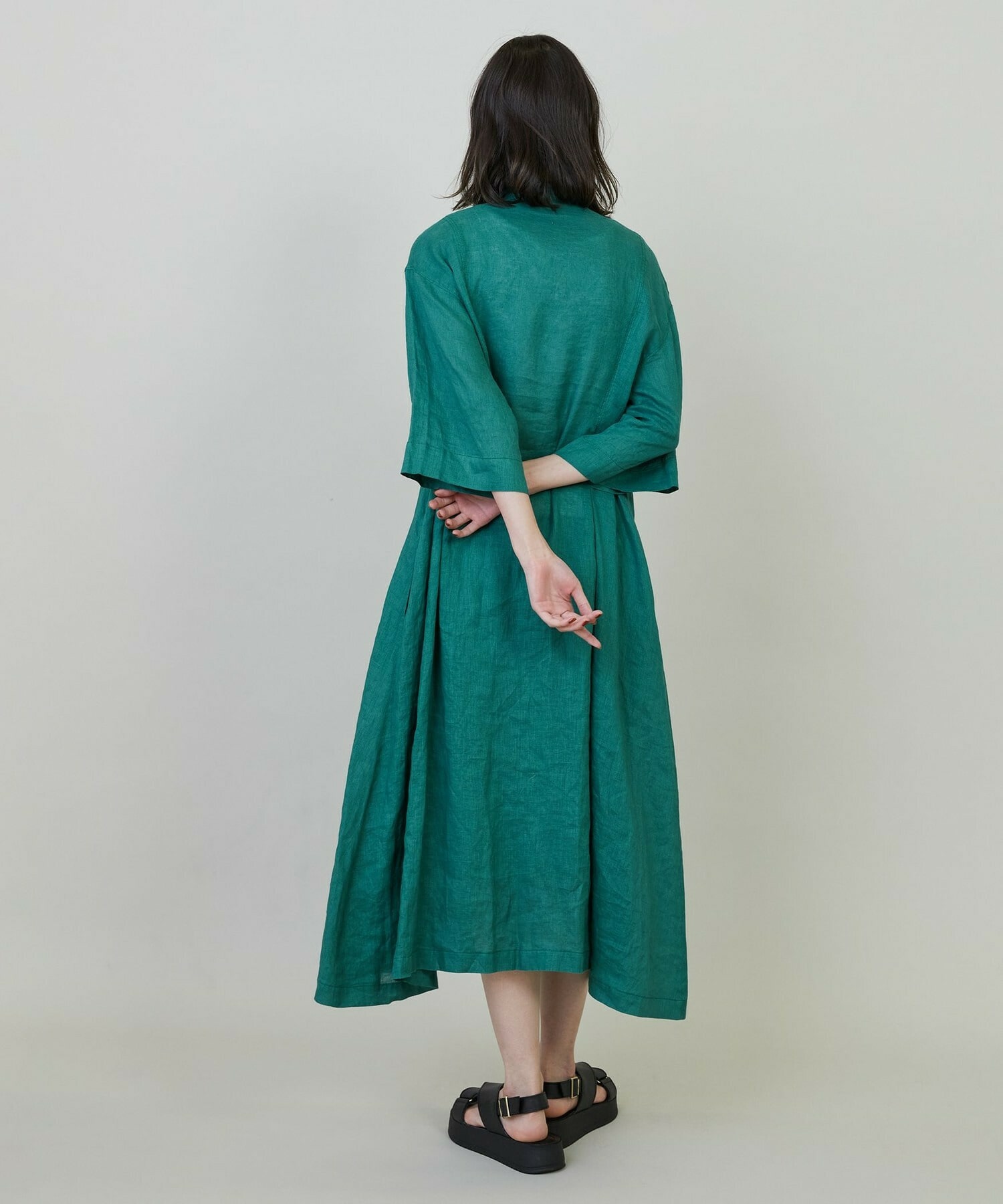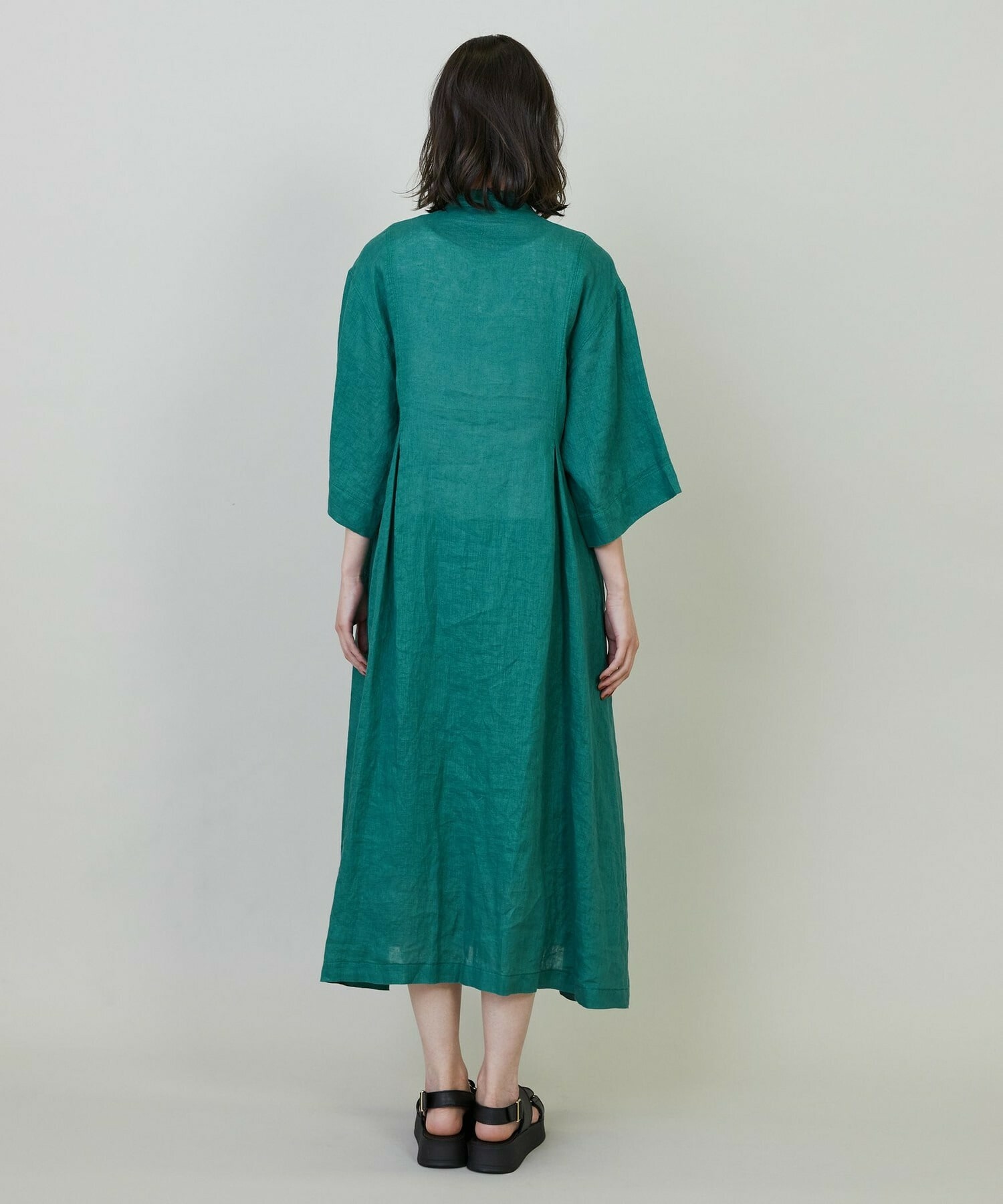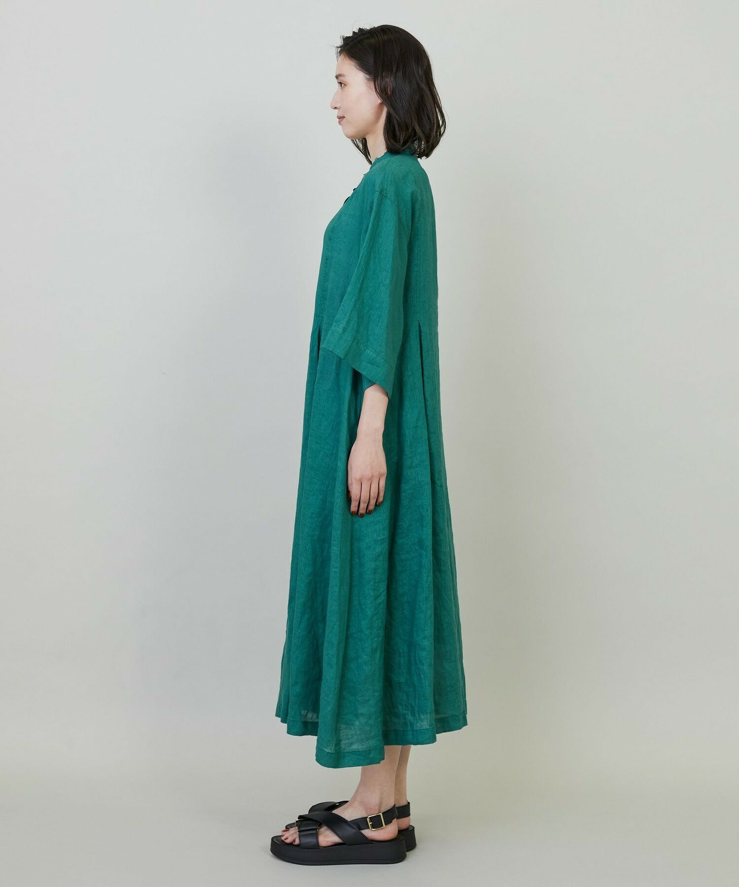リネンの製品染めで天然素材のナチュラル感が魅力のワンピースです。