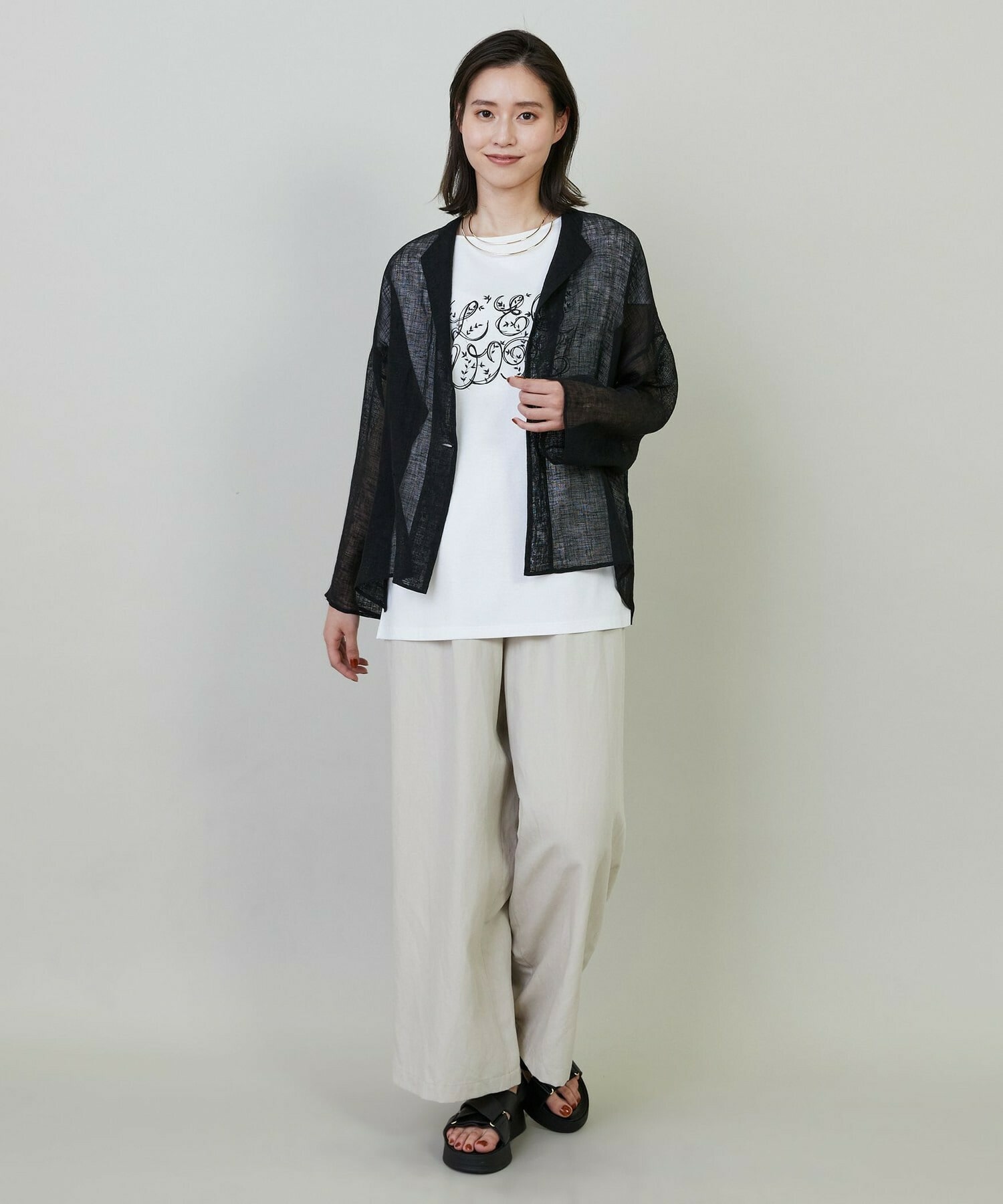 リネンのスラブ感のある素材ににタンブラー加工でナチュラルなシワ感をプラスし、春夏にふさわしい清涼感のある表情に仕上げた大人のカジュアル素材です。