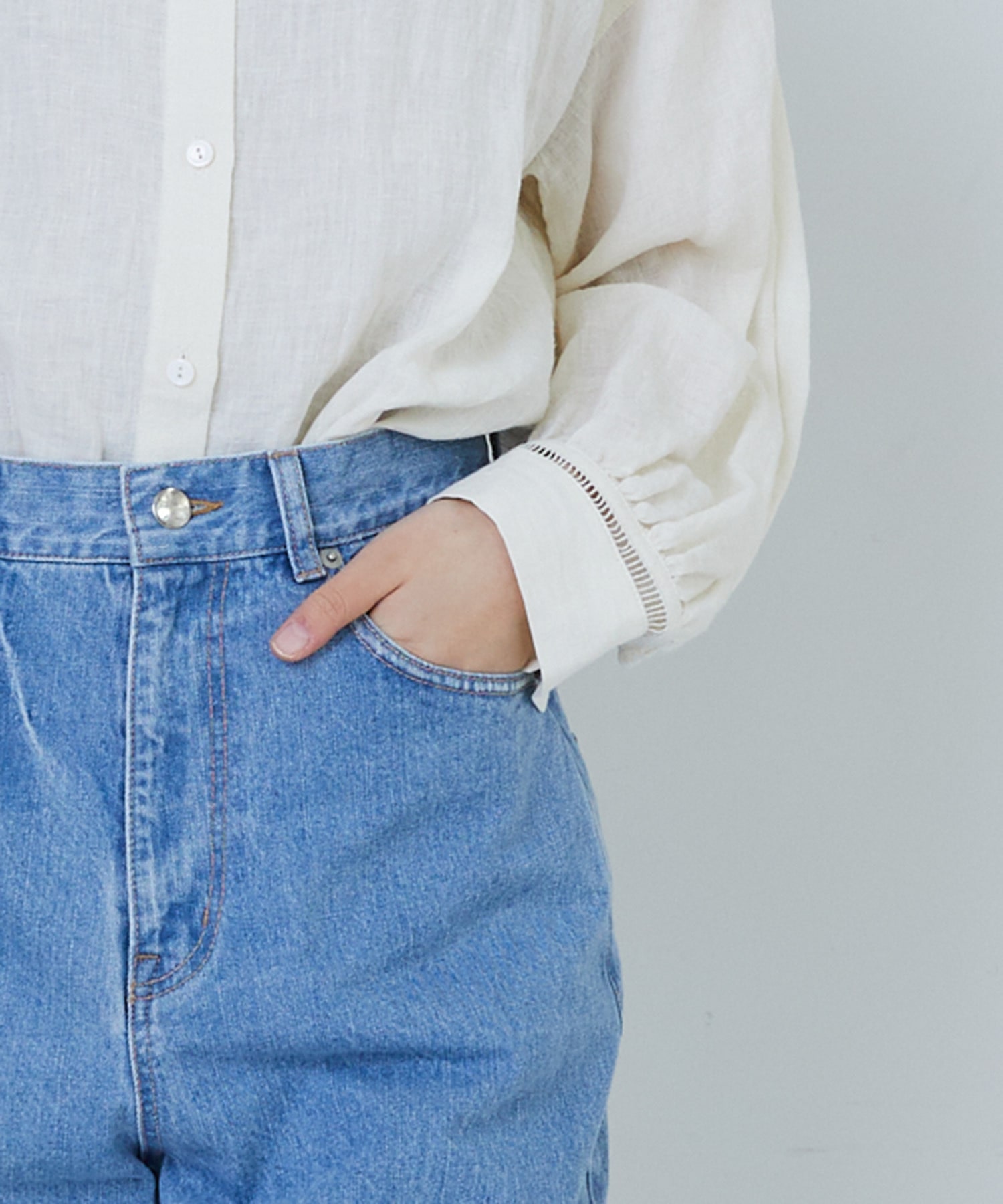 ライトインディゴは、ブリーチとオーバーダイ加工をし春らしい淡いペールカラーに仕上げました。