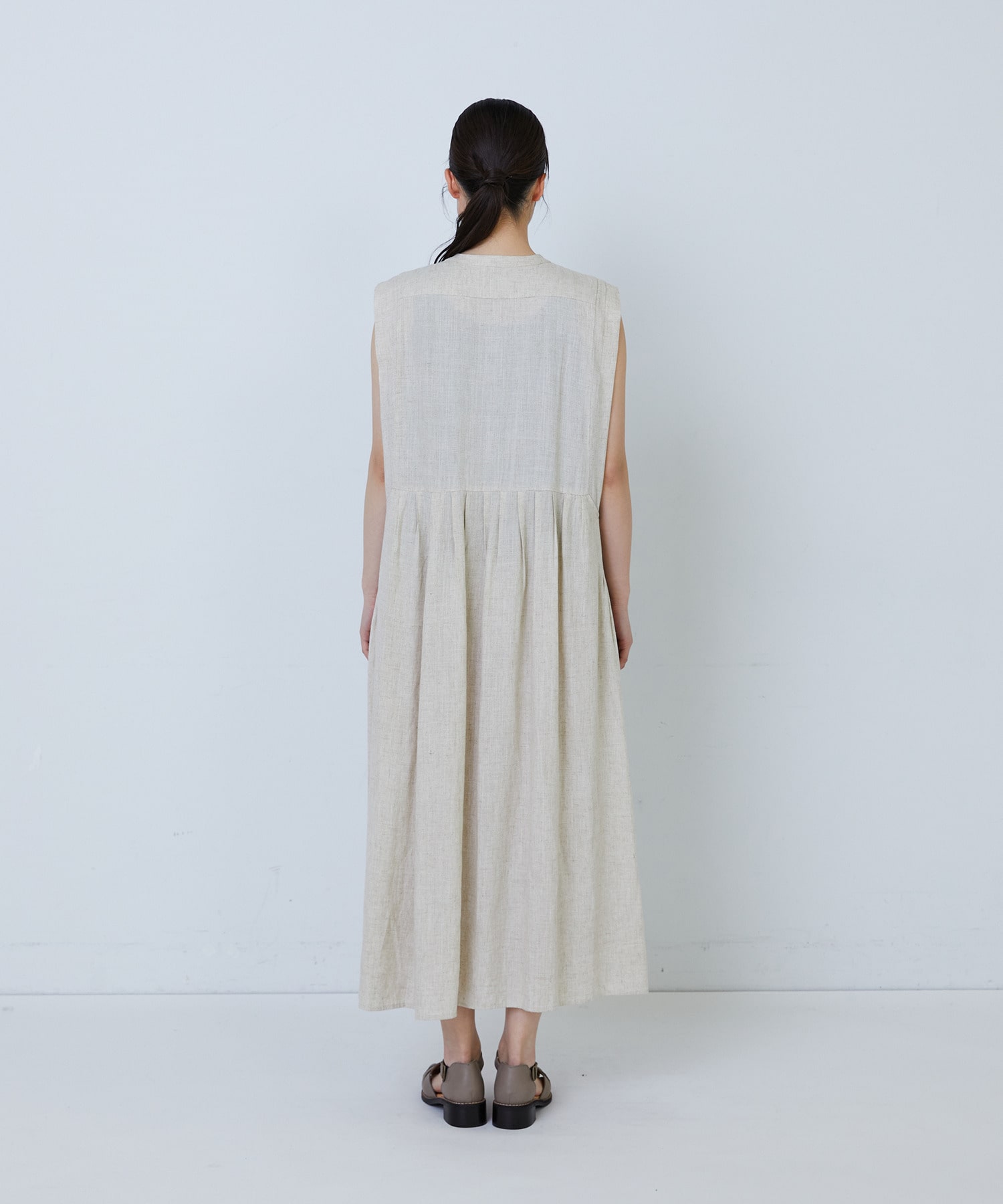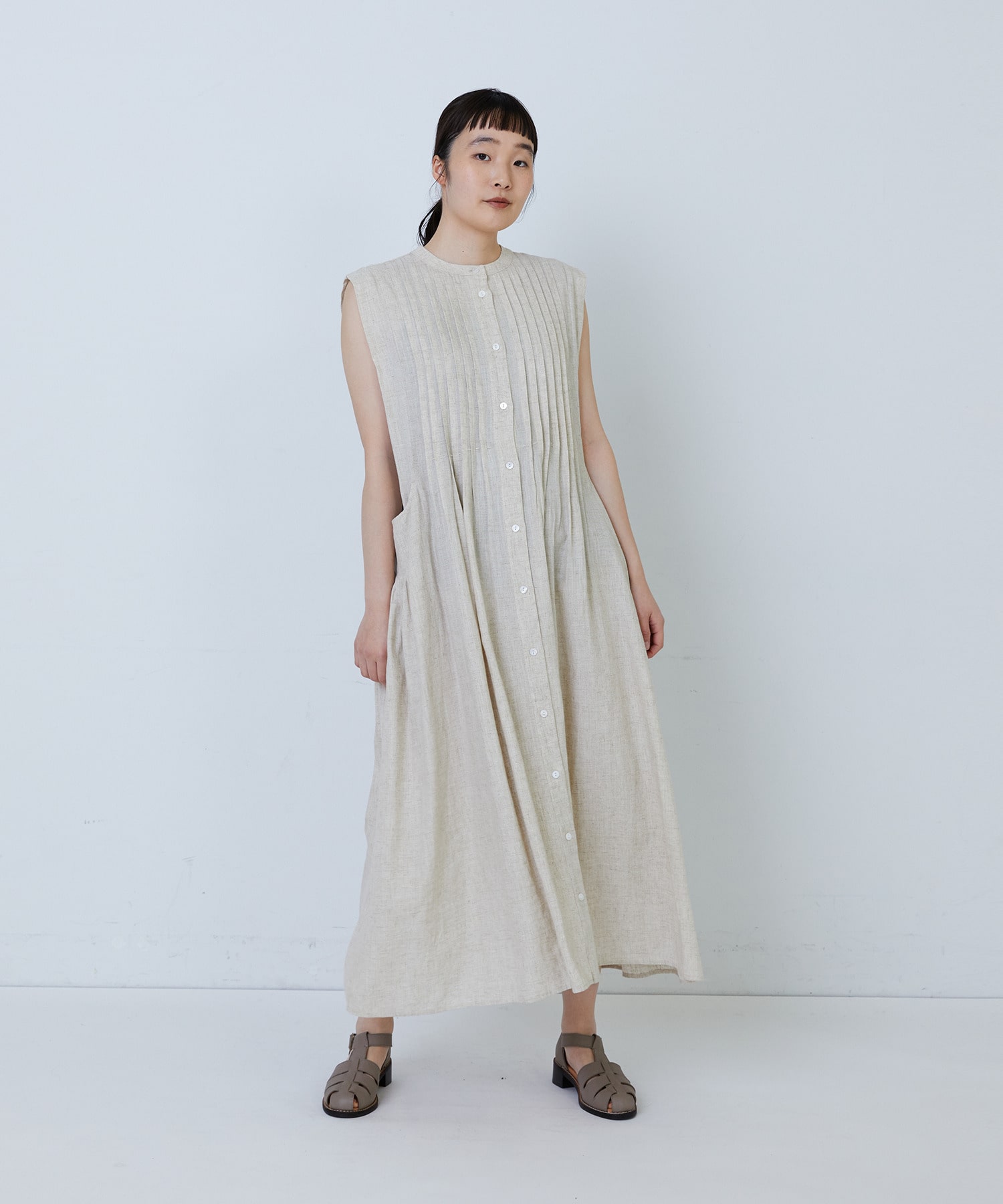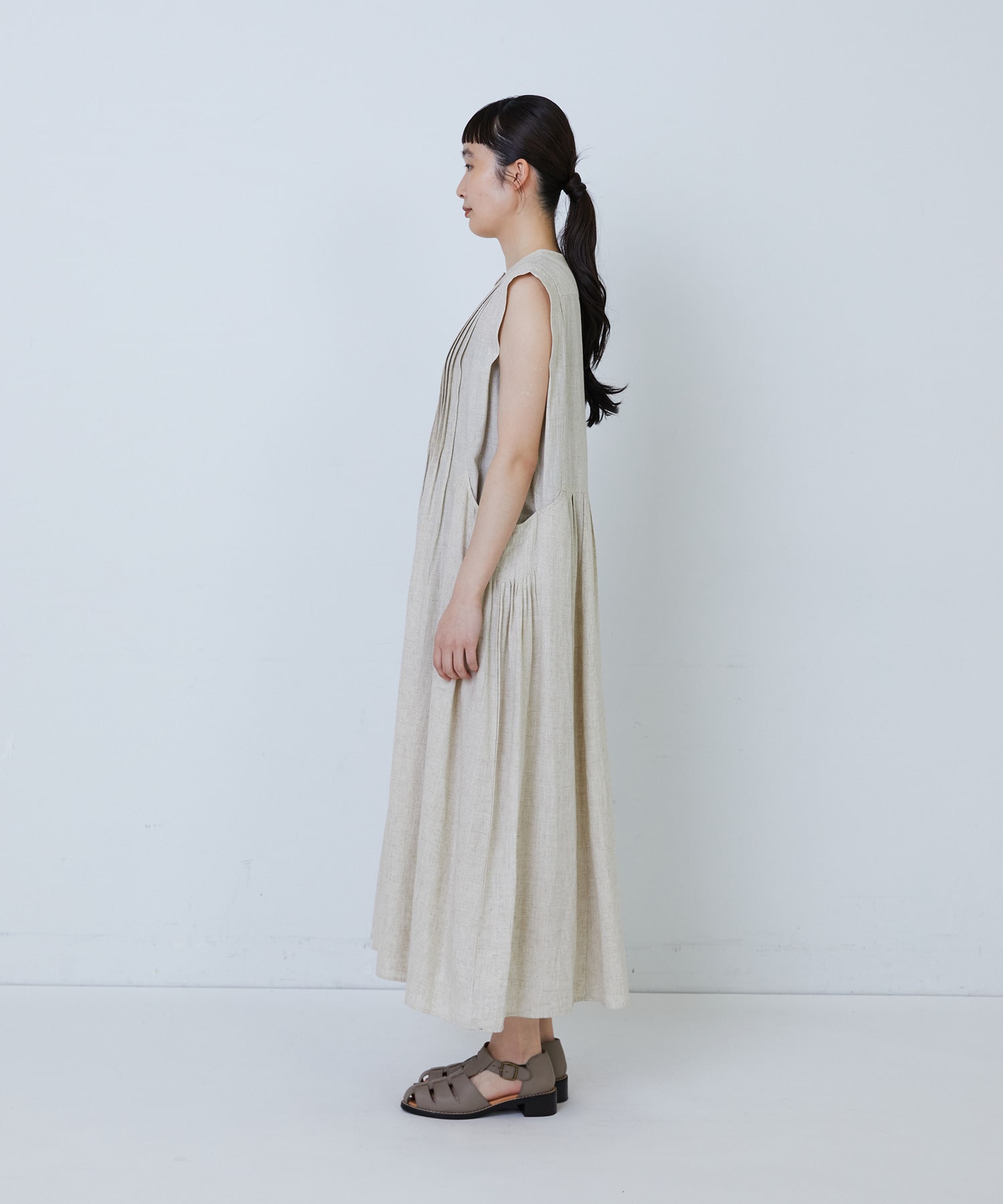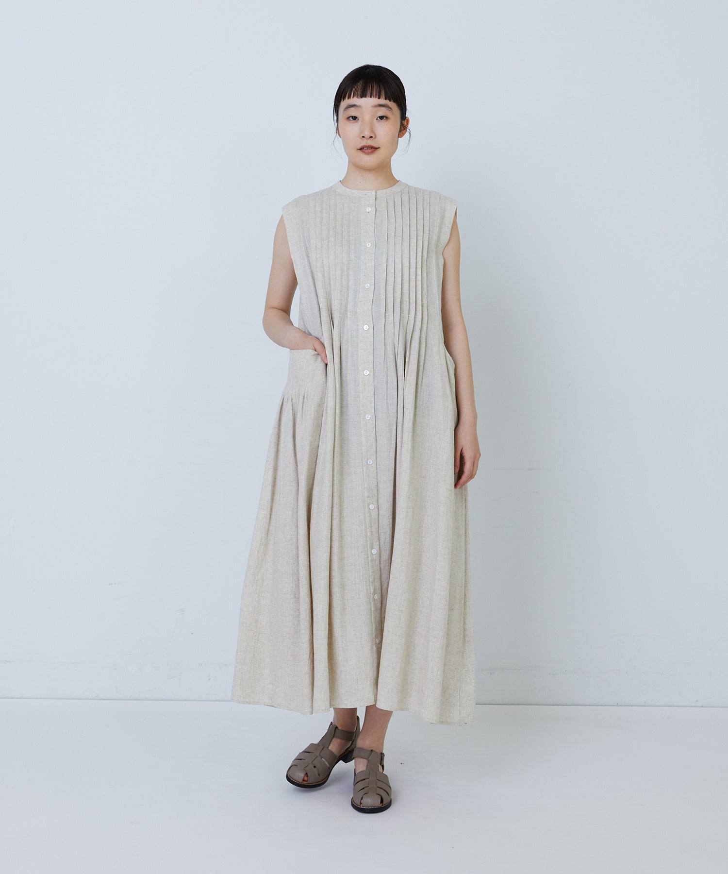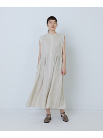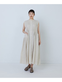 【MTサイズ有り】レーヨンリネンスラブローンノースリーブワンピース