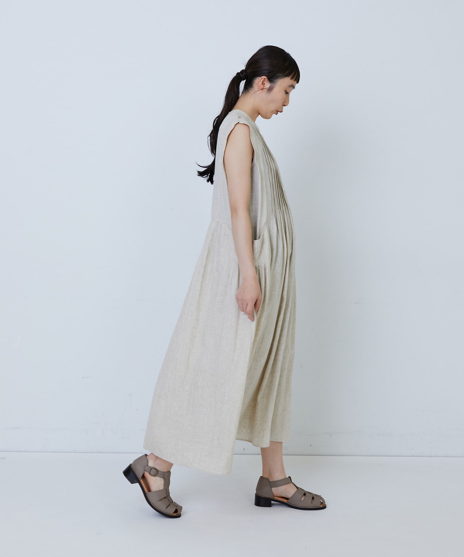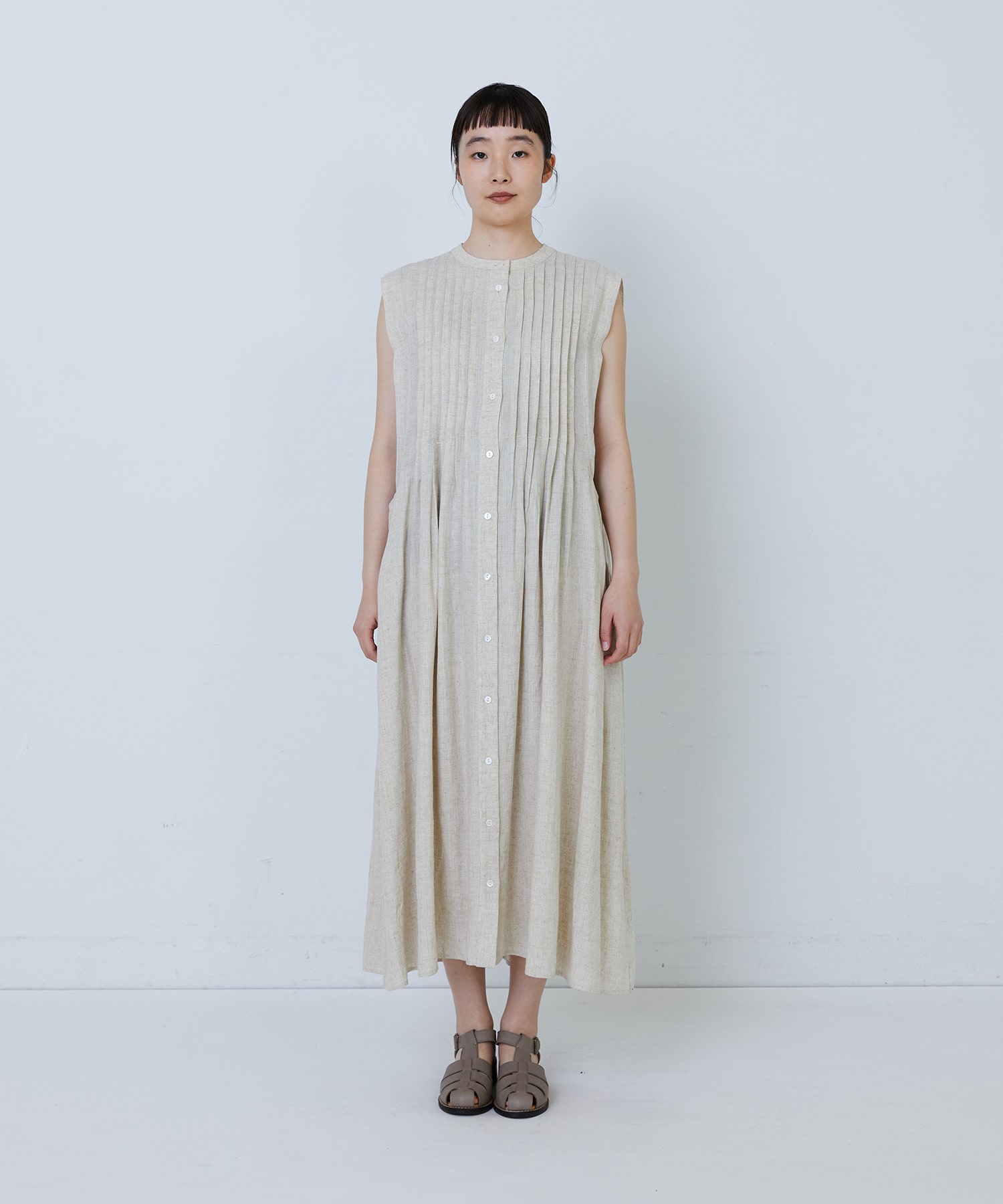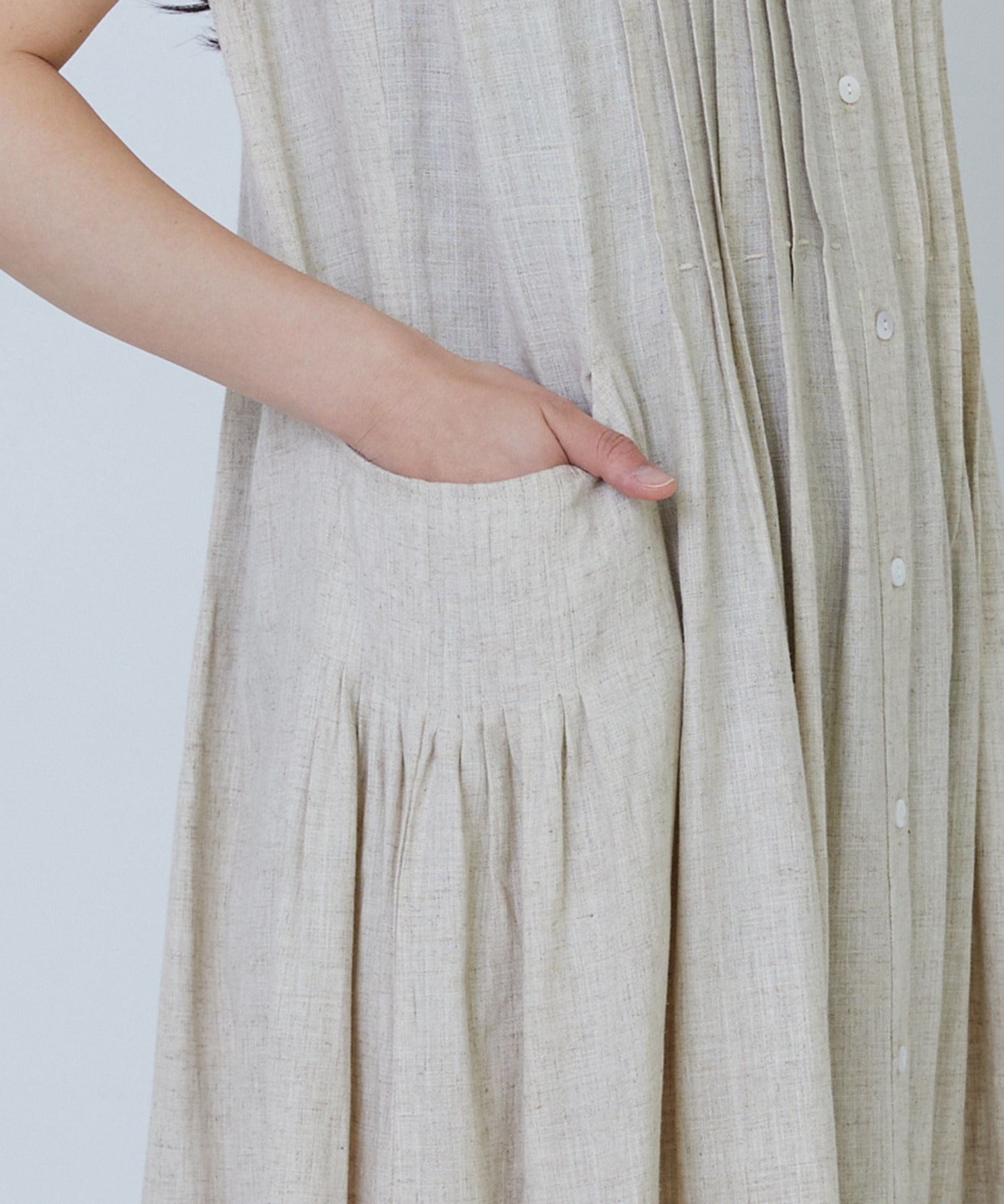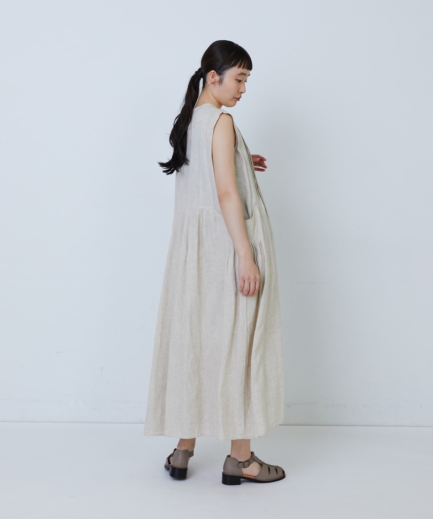 【MTサイズ有り】レーヨンリネンスラブローンノースリーブワンピース