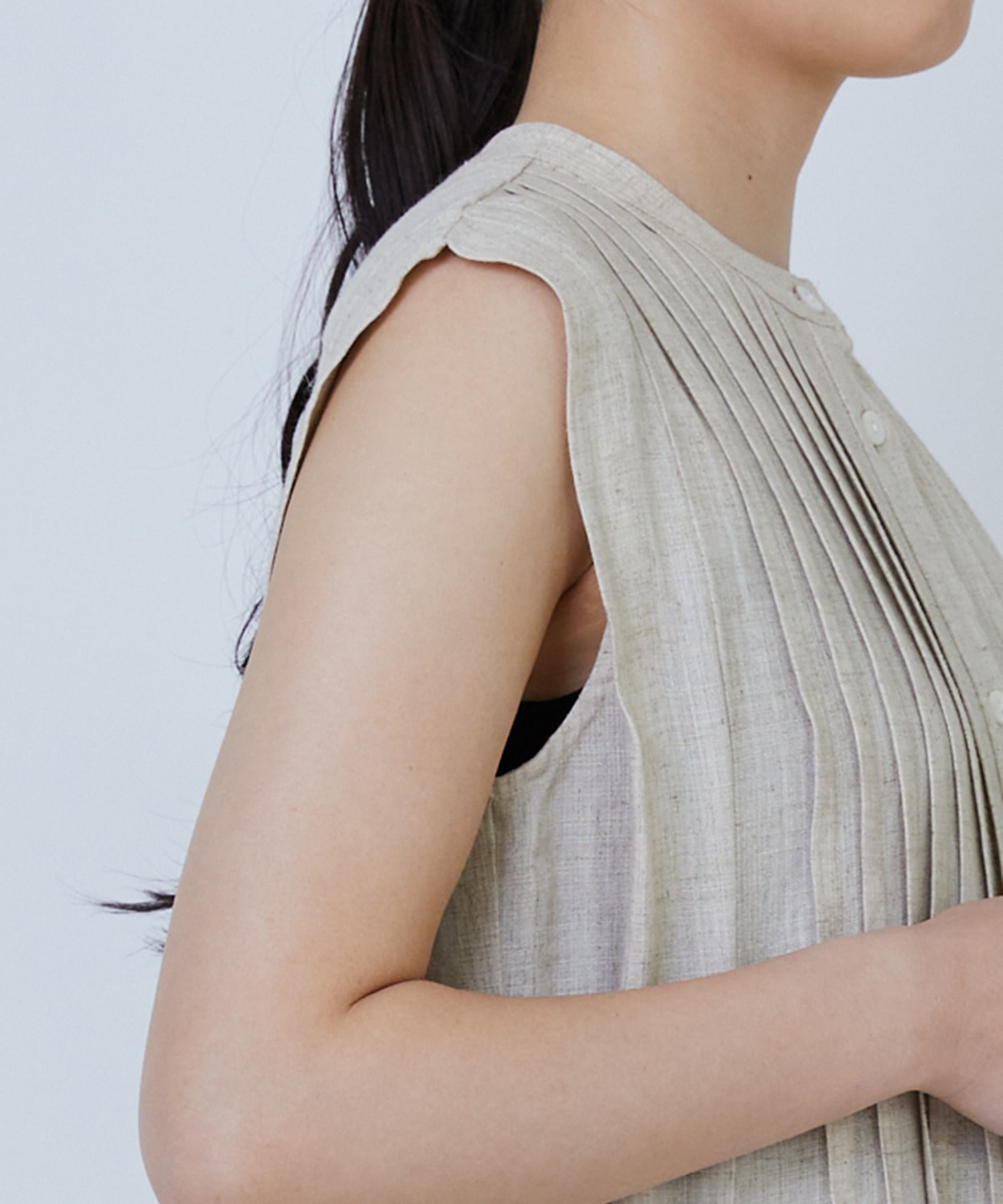 ナチュラルなリネンとしなやかなレーヨンを組み合わせた生地を使用。