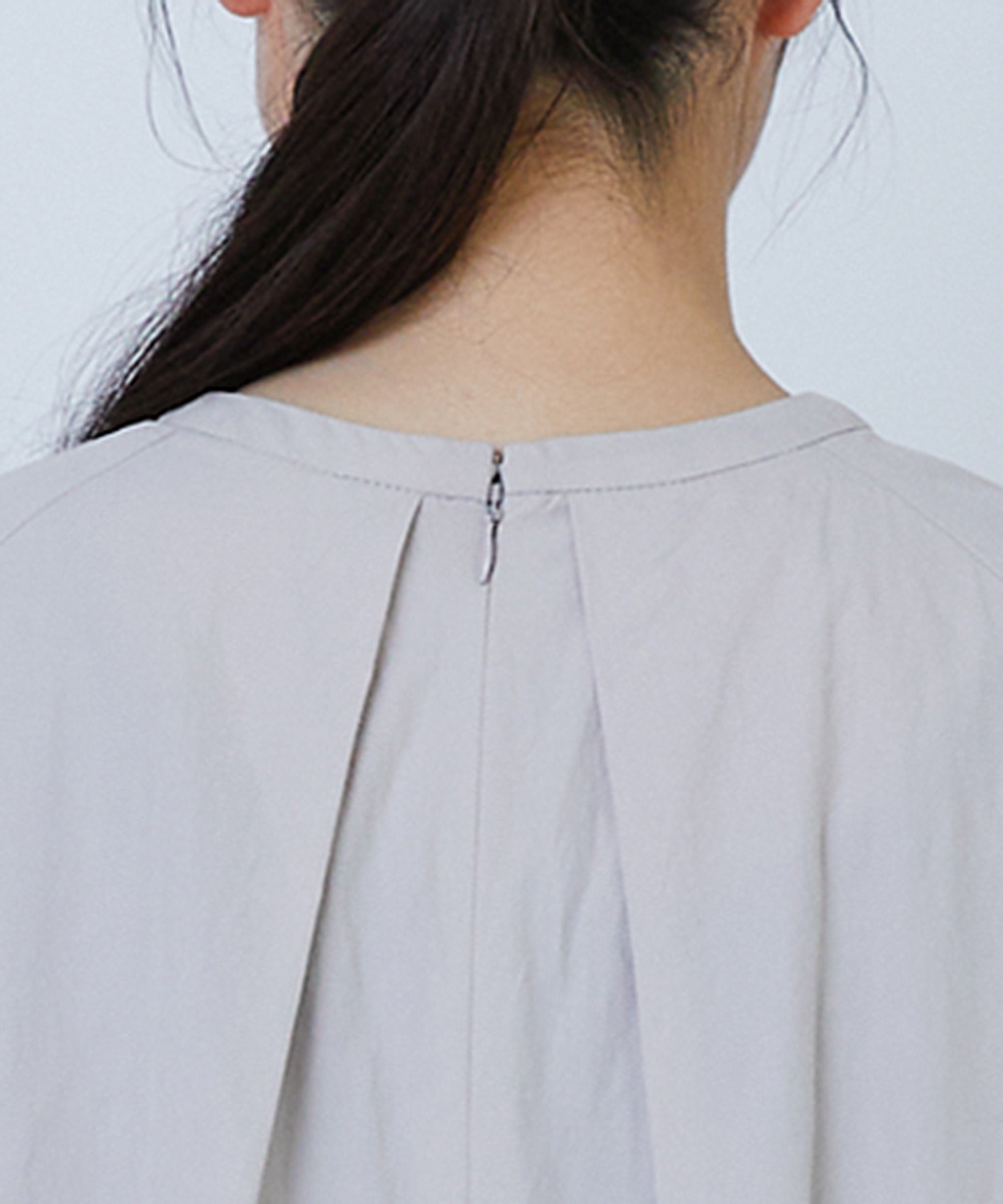 アクセサリーが映えるクルーネックはバックがファスナー仕様で着脱がしやすい仕立てとなっております。