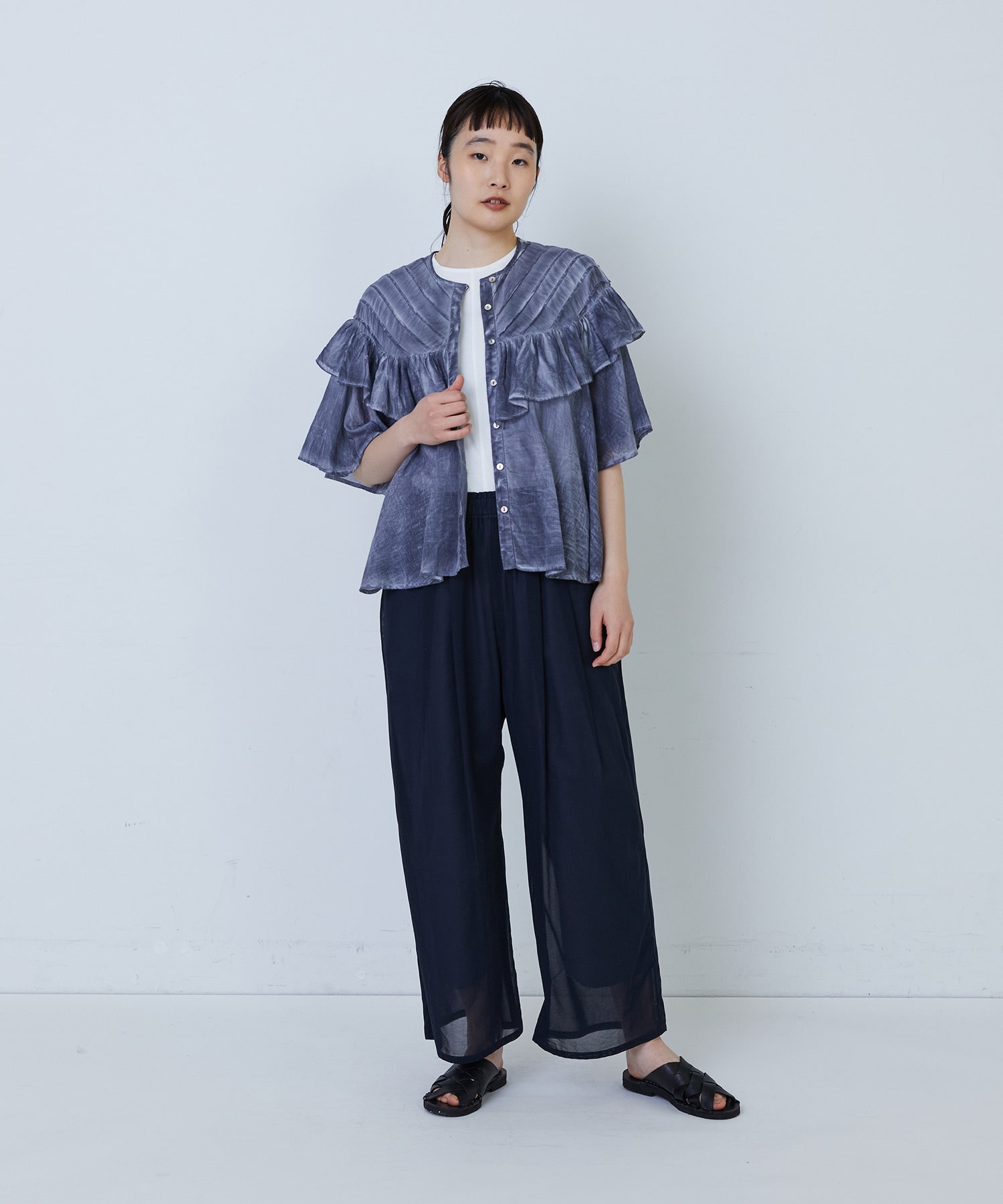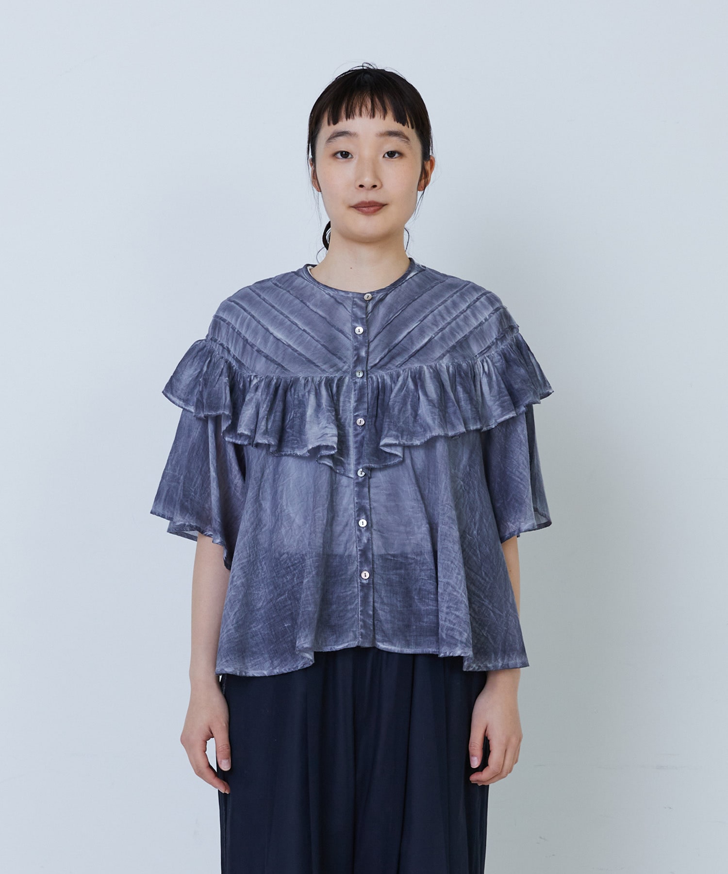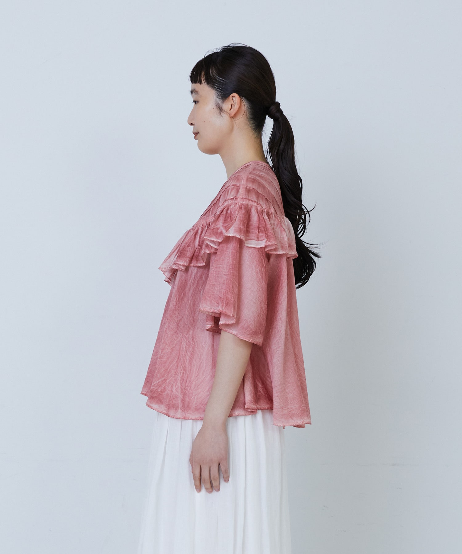 ふんわりとしたシルエットで風をはらみ、盛夏の暑い日でも涼しく着ていただけます。