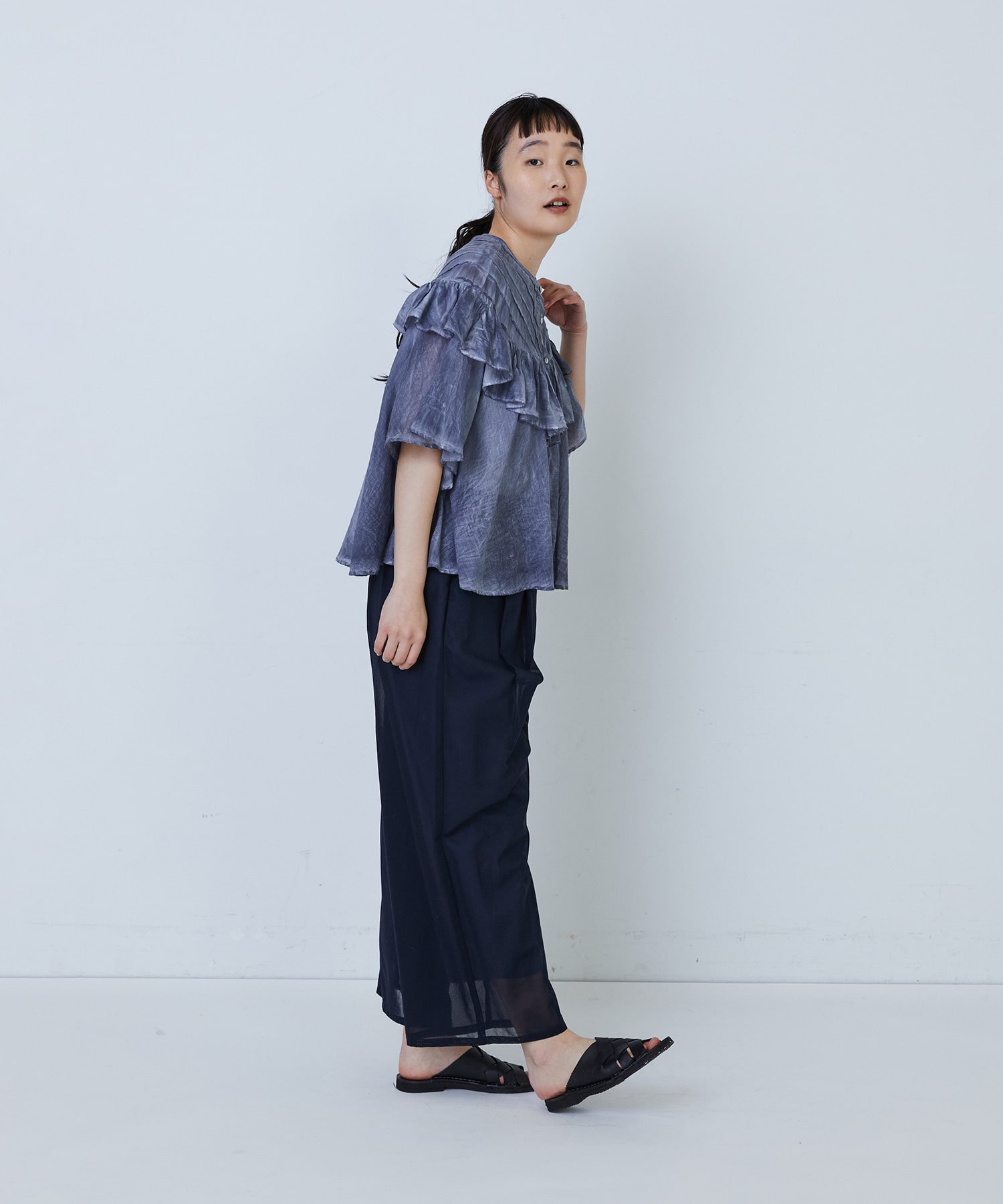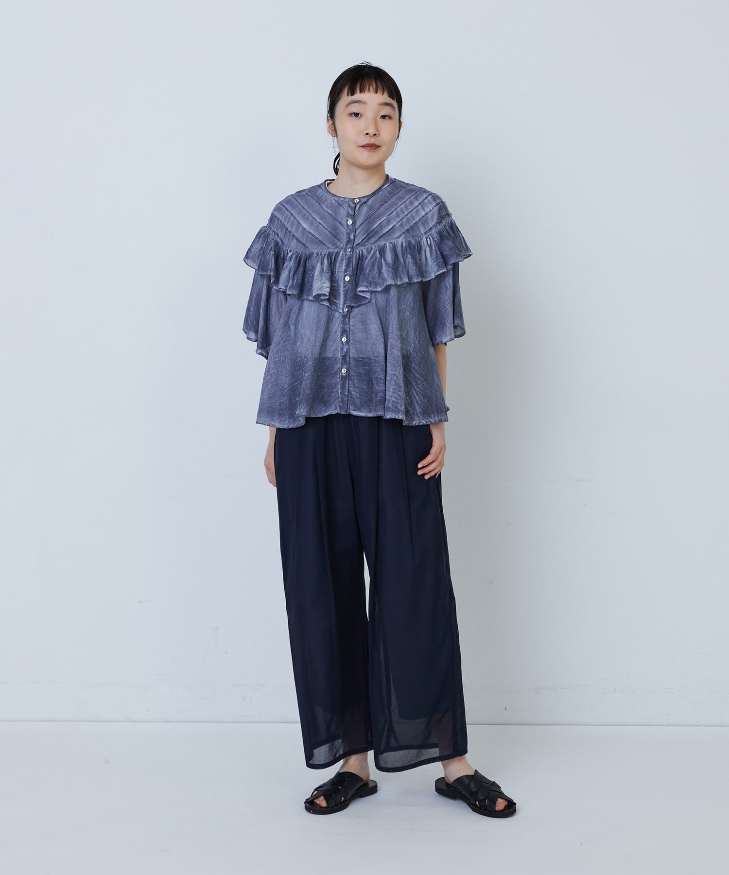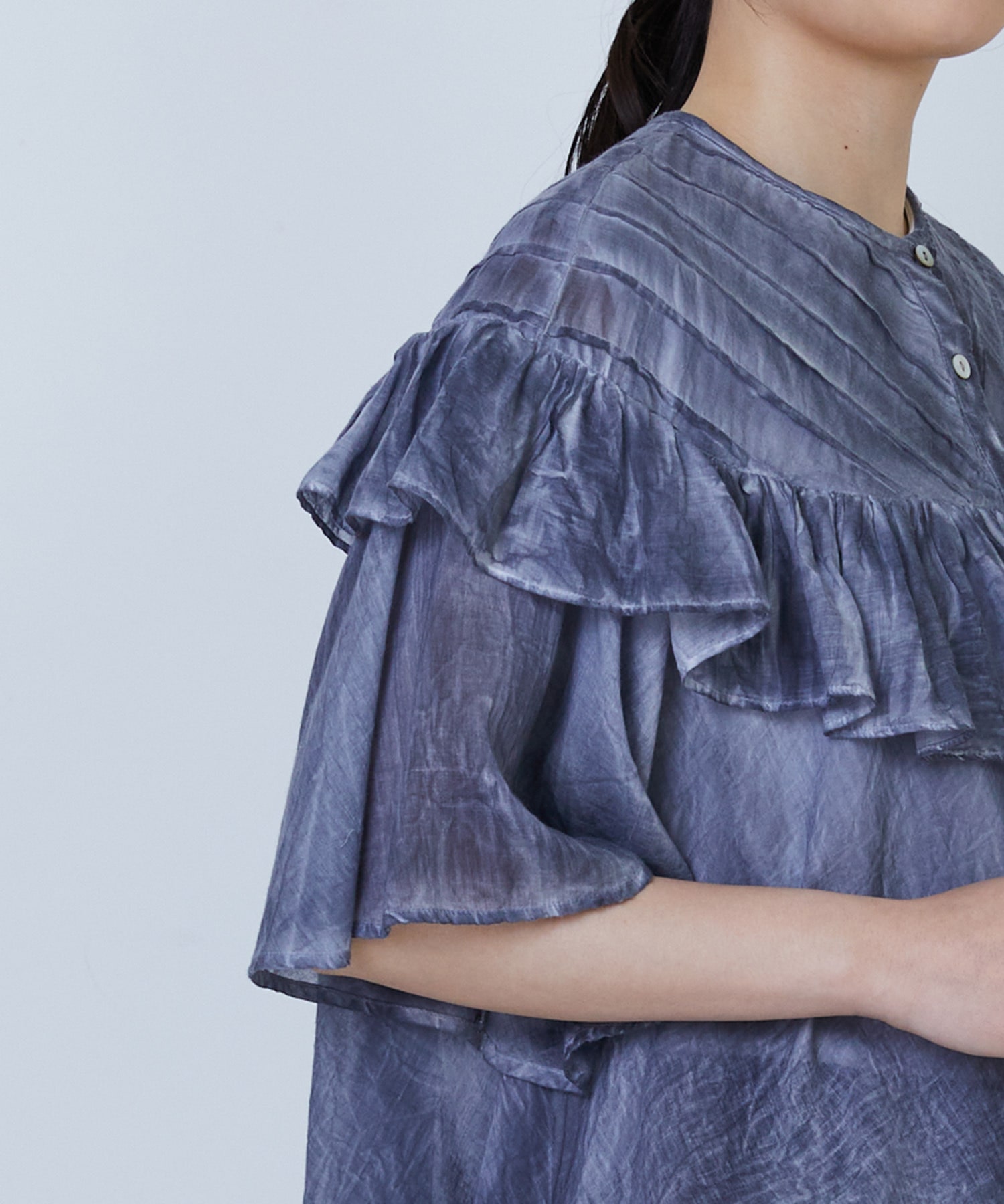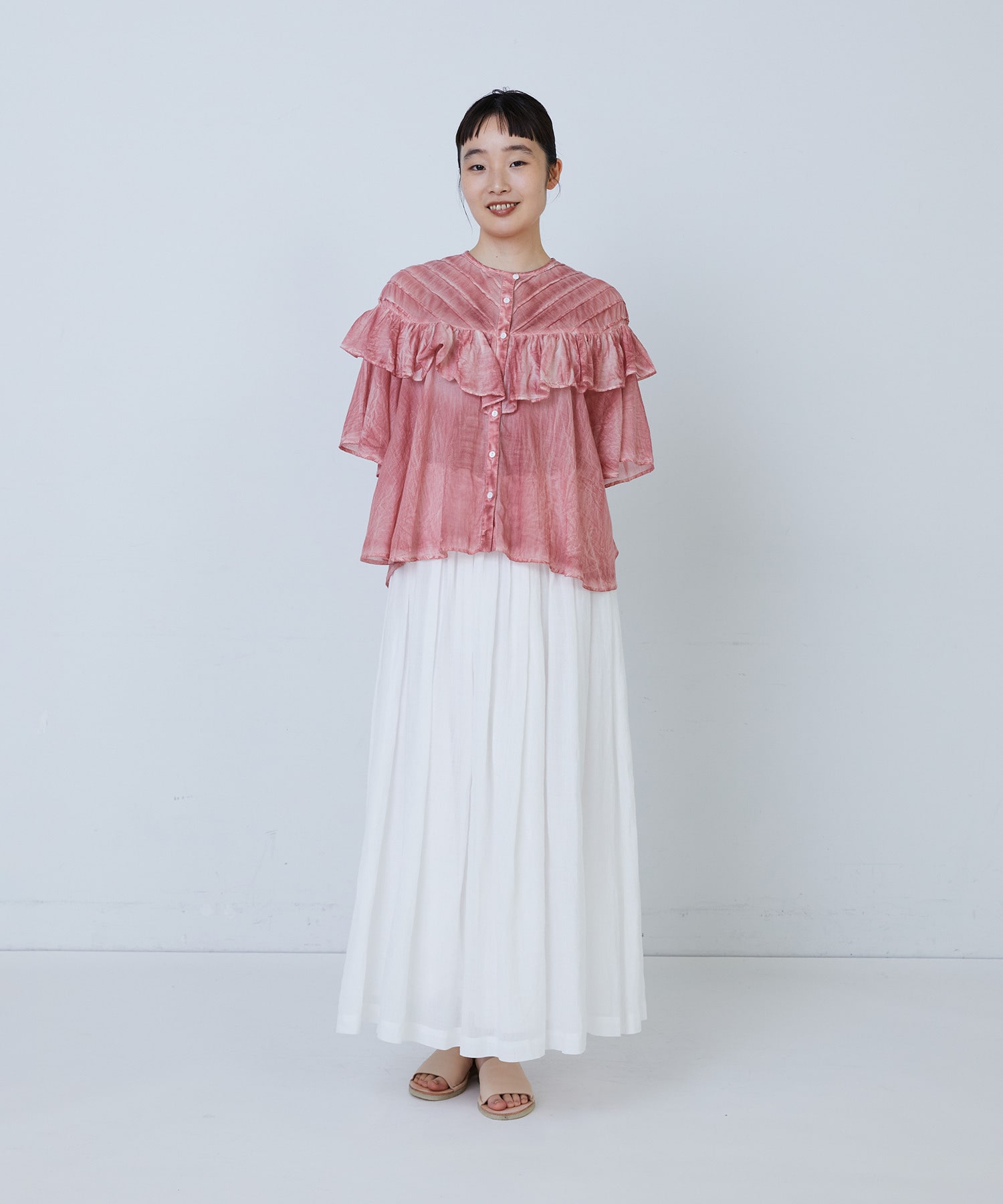ふんわりとしたシルエットで風をはらみ、盛夏の暑い日でも涼しく着ていただけます。
