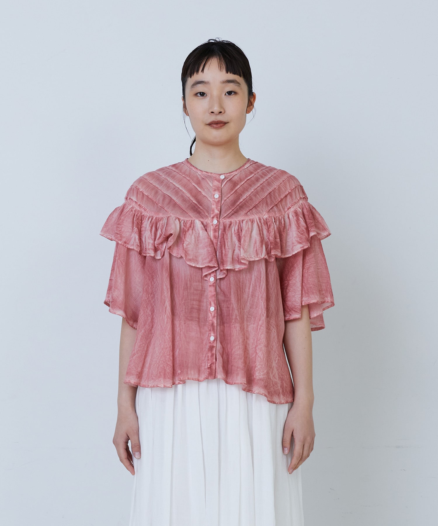 一見甘さが際立つアイテムですが、モード感のある染め上がりで主役になる1枚です。
