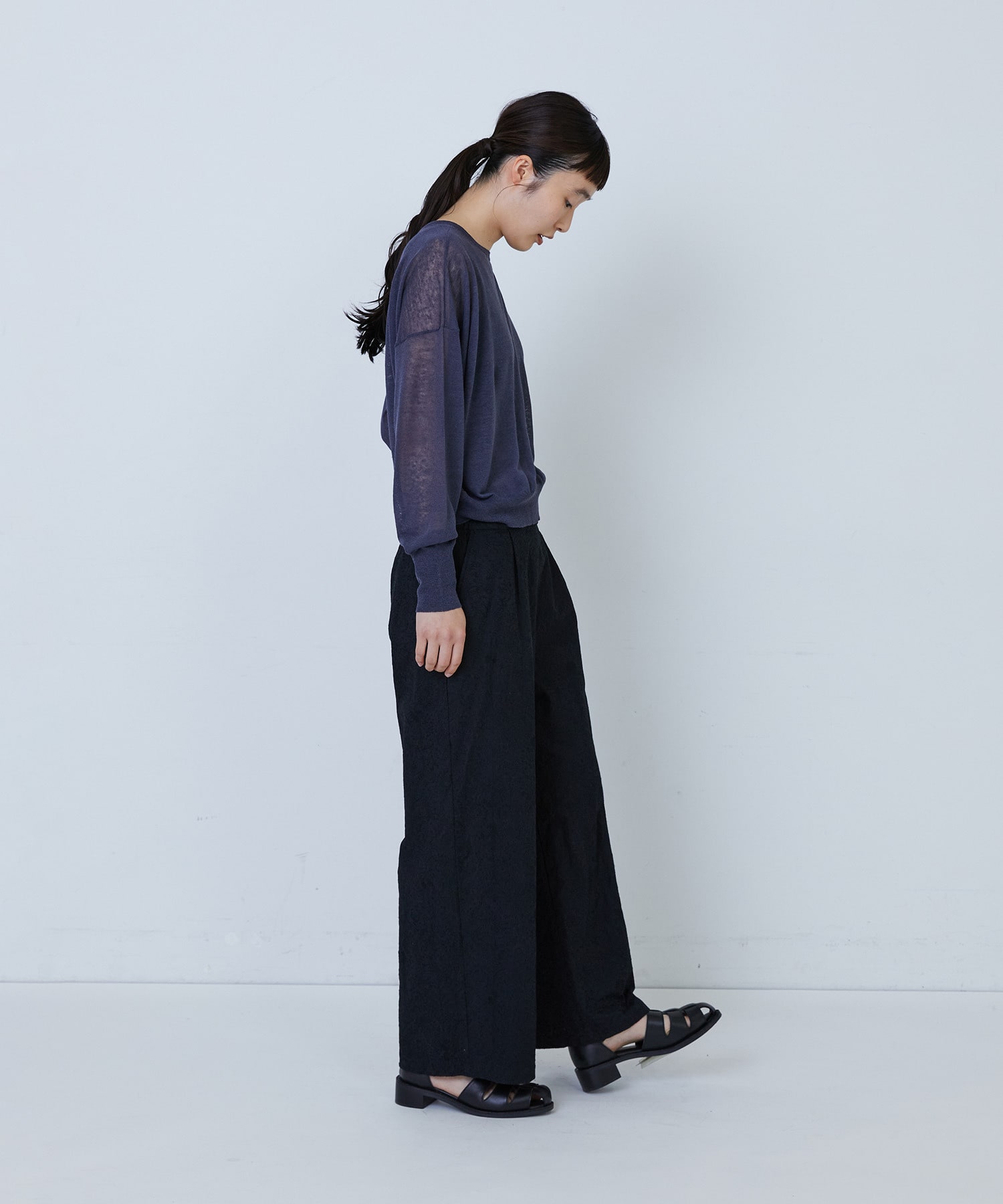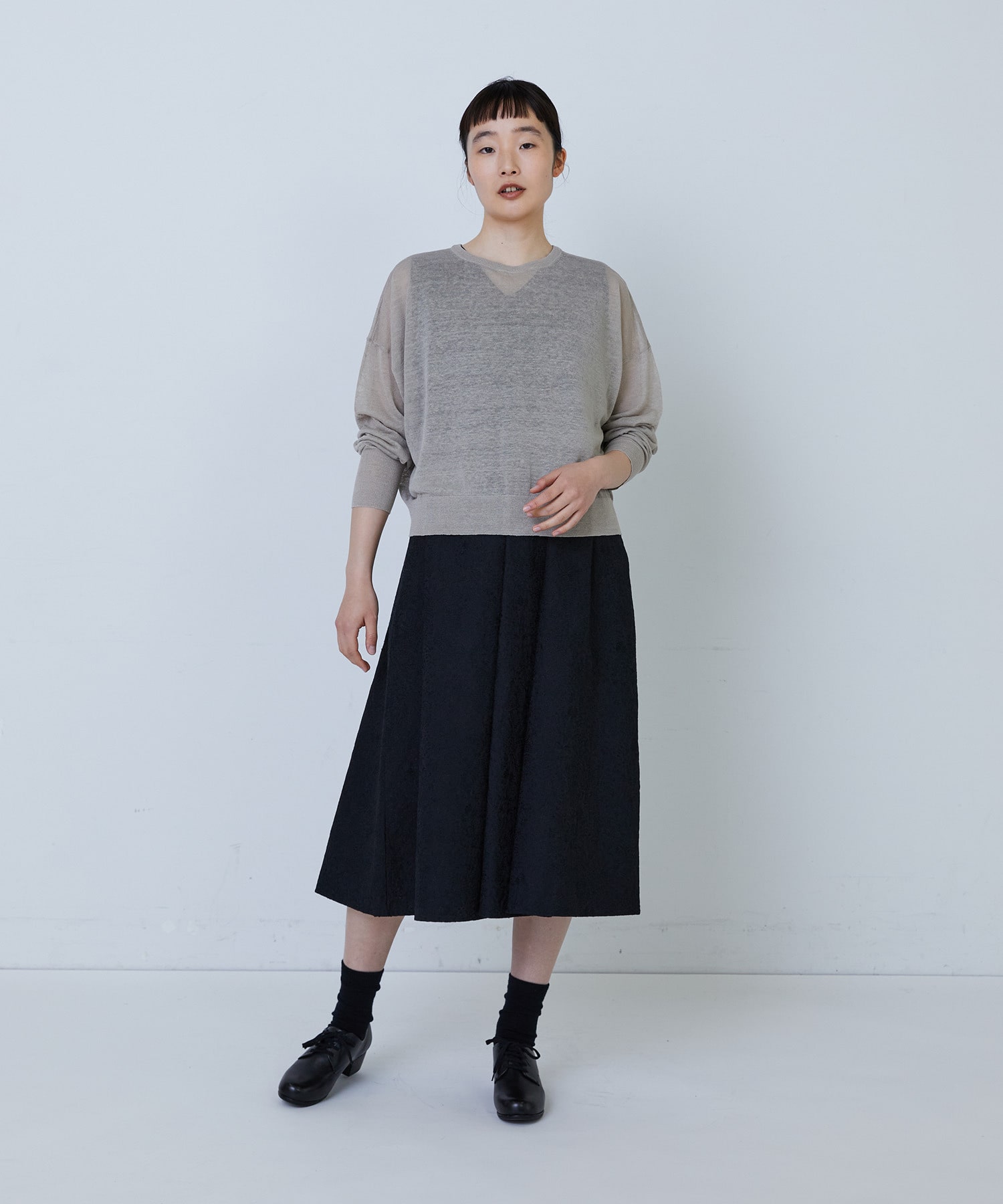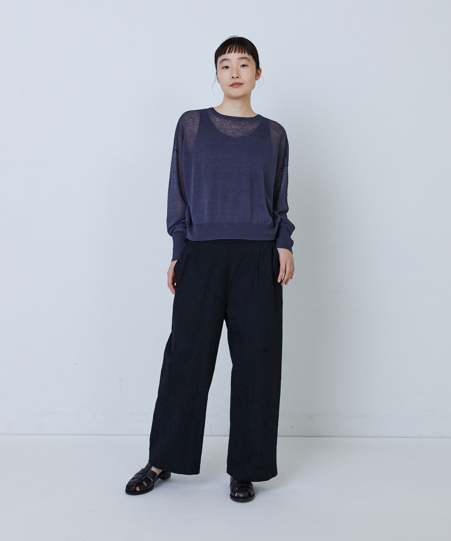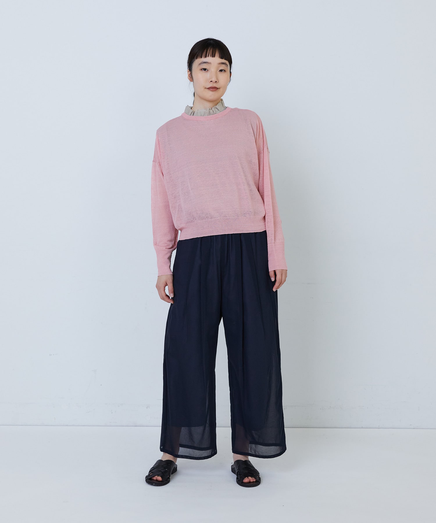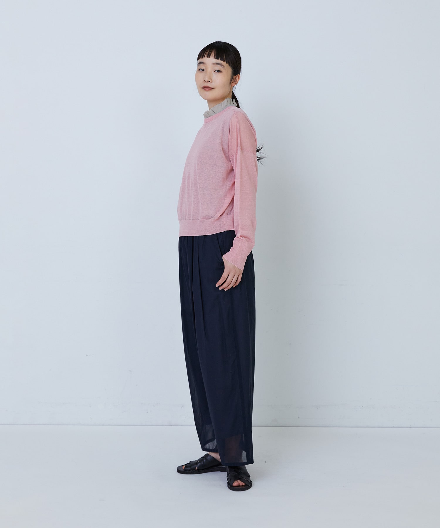 清涼感のあるリネンナイロン素材。適度なコシがあり軽さが特徴の糸を使用。