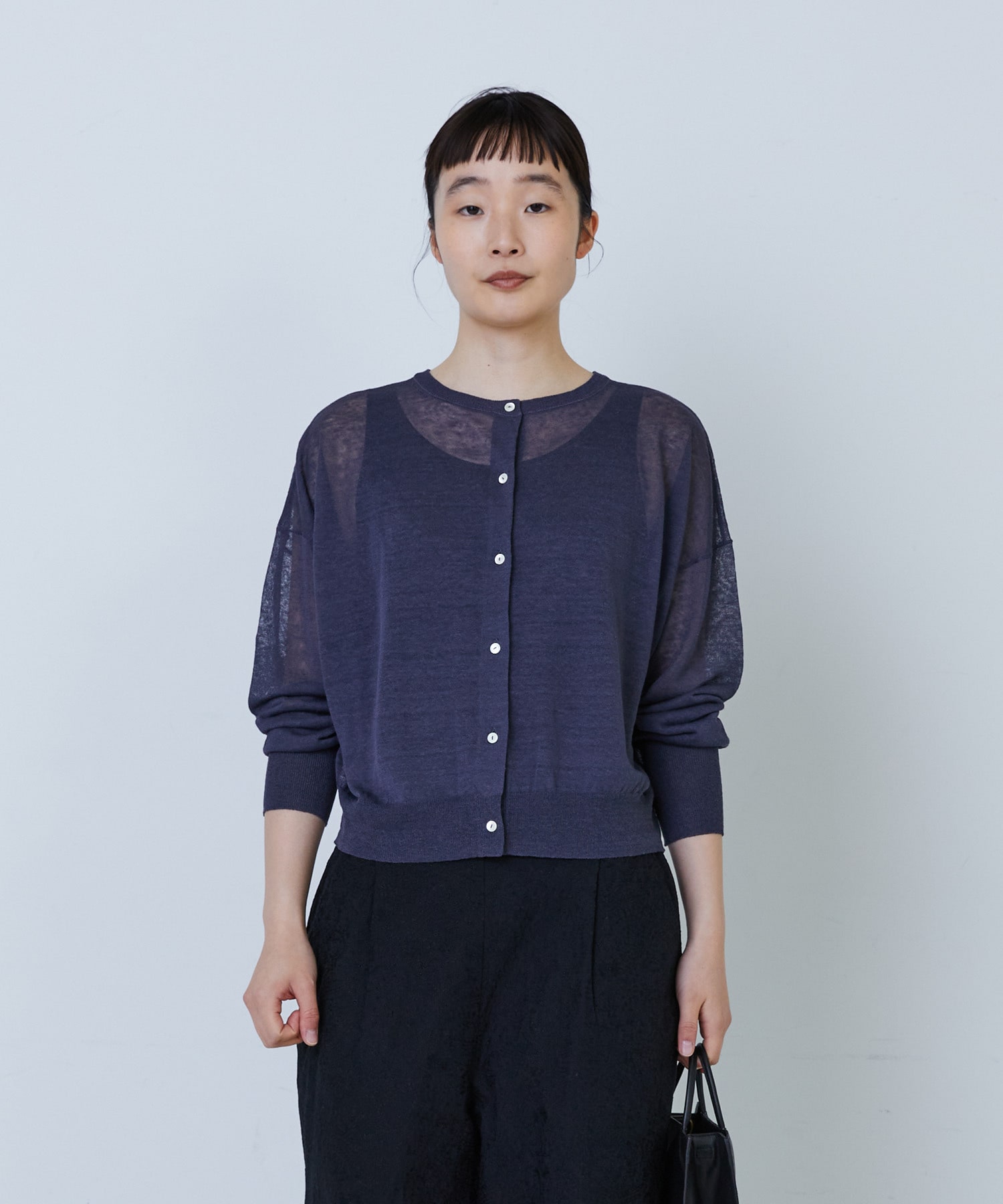 【2WAY】リネンナイロン天竺シアーニットカーディガン