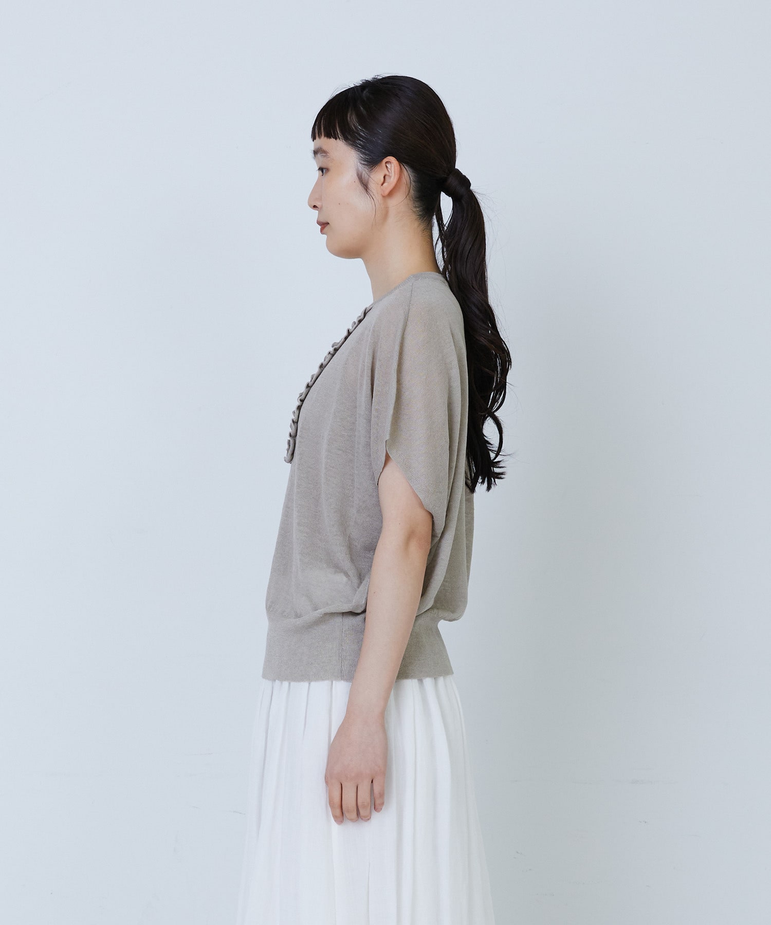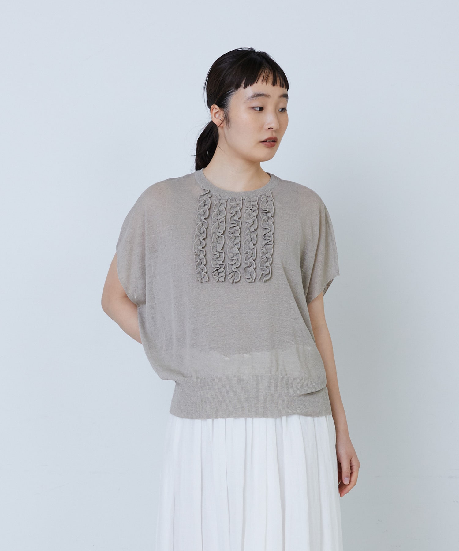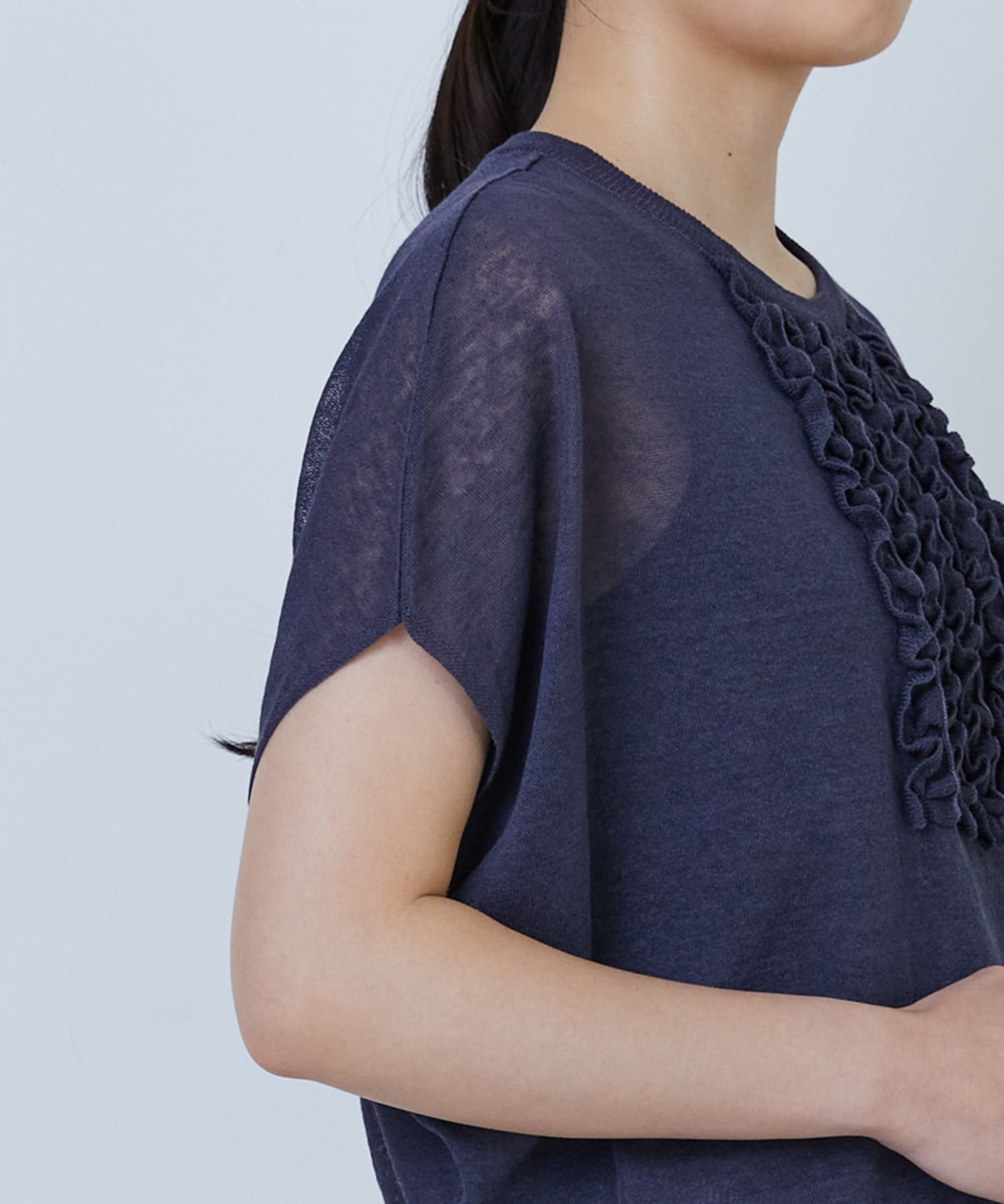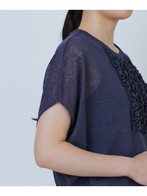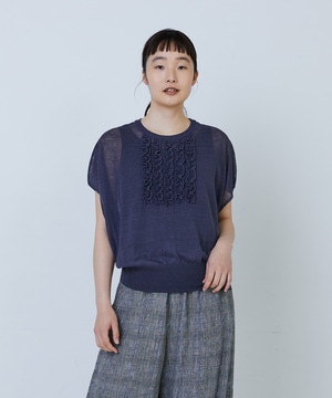 リネンナイロン天竺シアーニットフリルプルオーバー