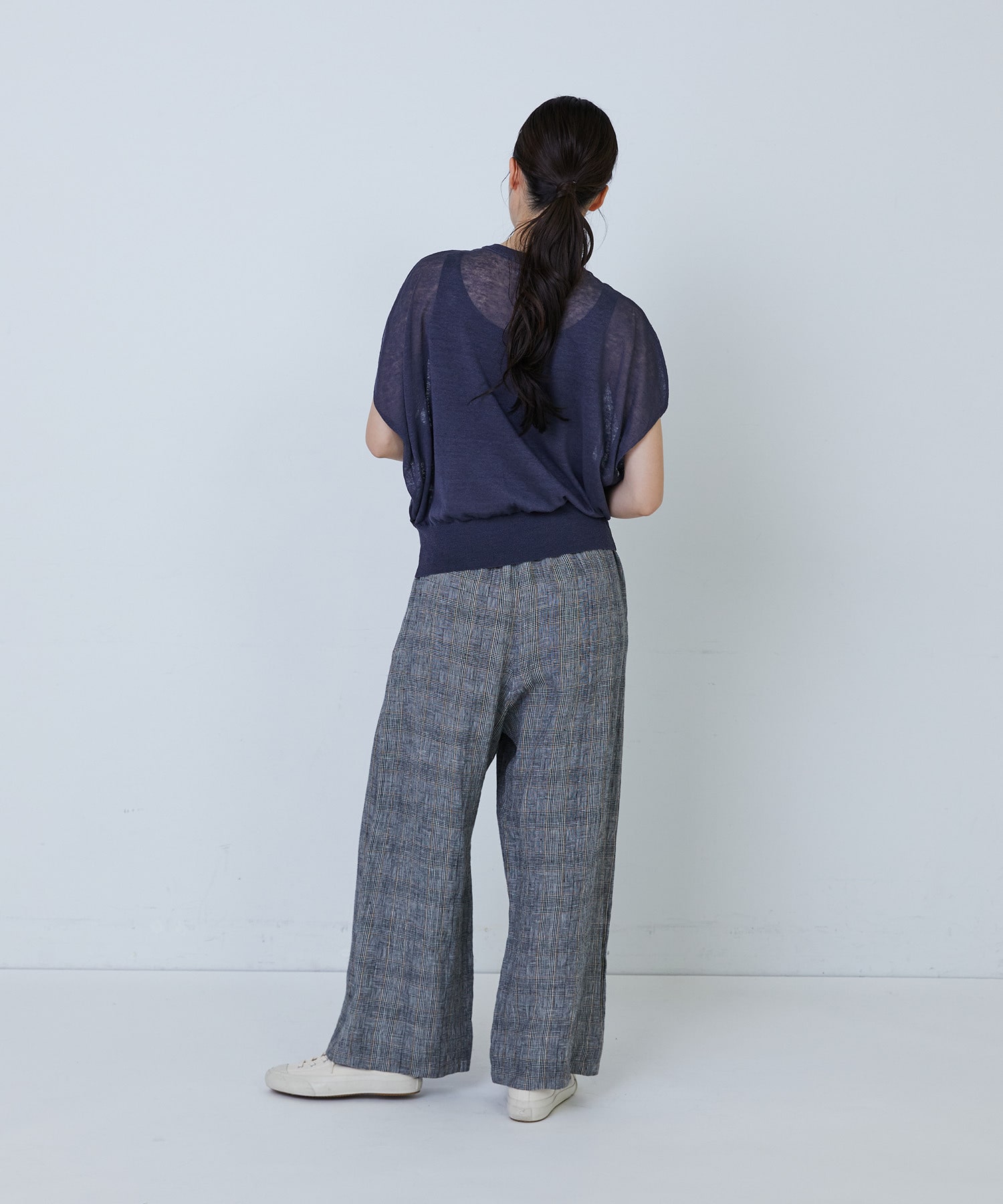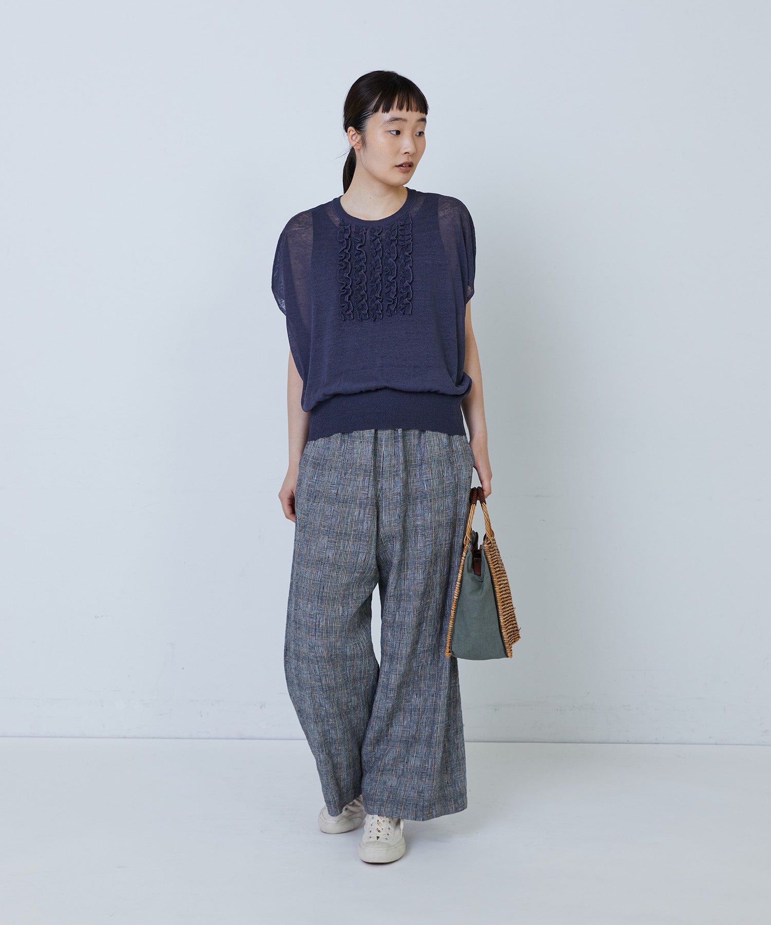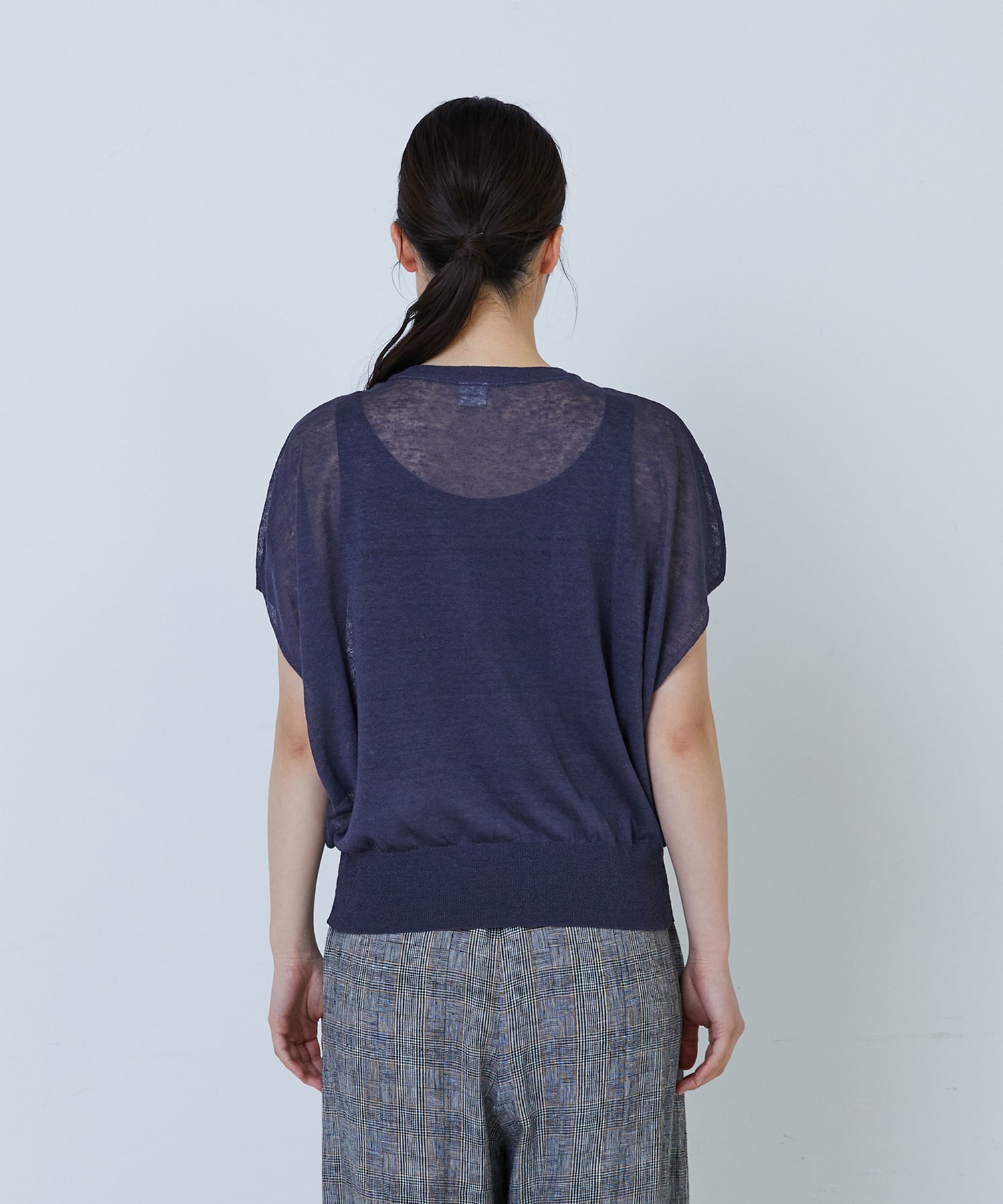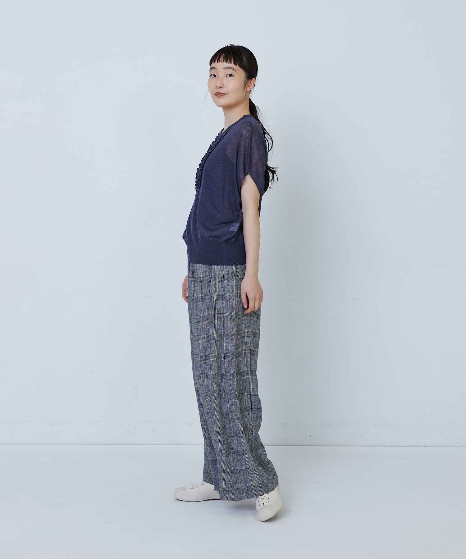 リネンナイロン天竺シアーニットフリルプルオーバー