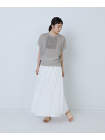 華やかなアイテムで、暑い時期に1枚で決まる万能ニットです。