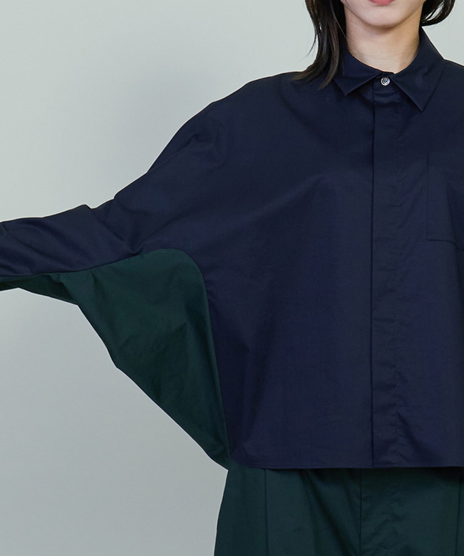 • 【endalence】Rコットンバイカラー変形スリーブシャツ 詳細画像 ネイビー 2