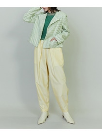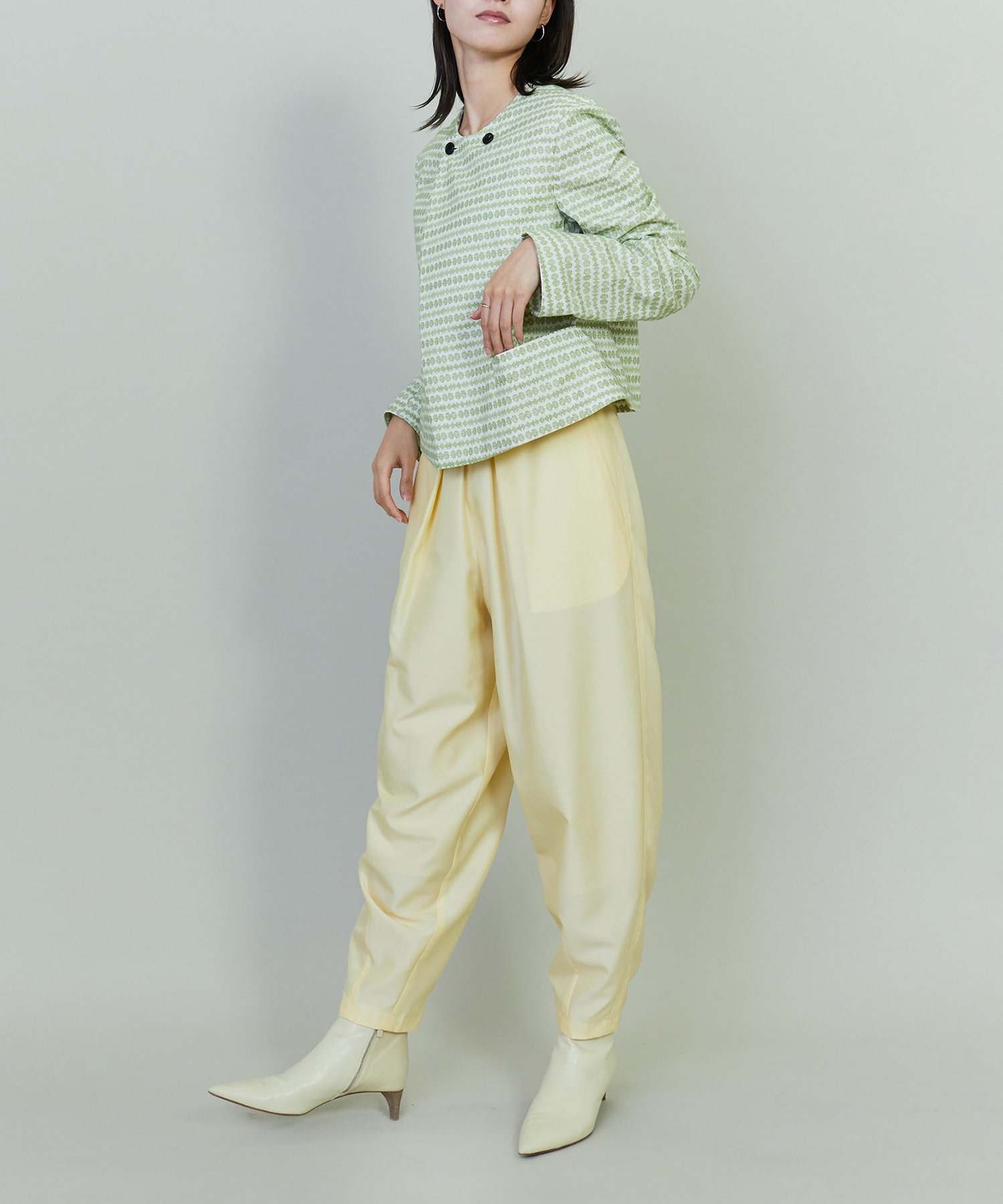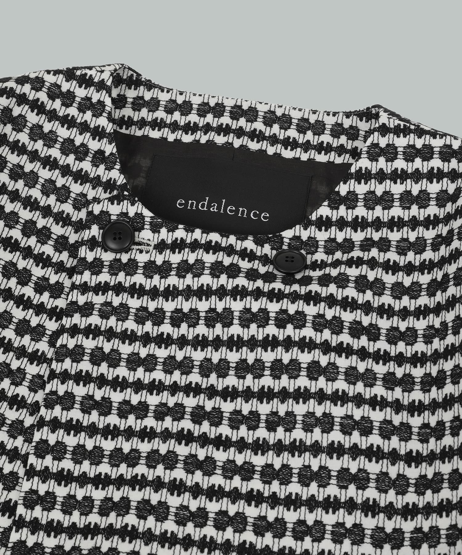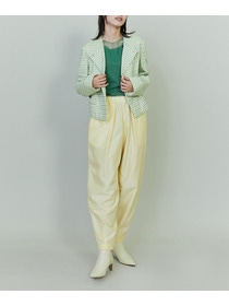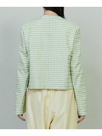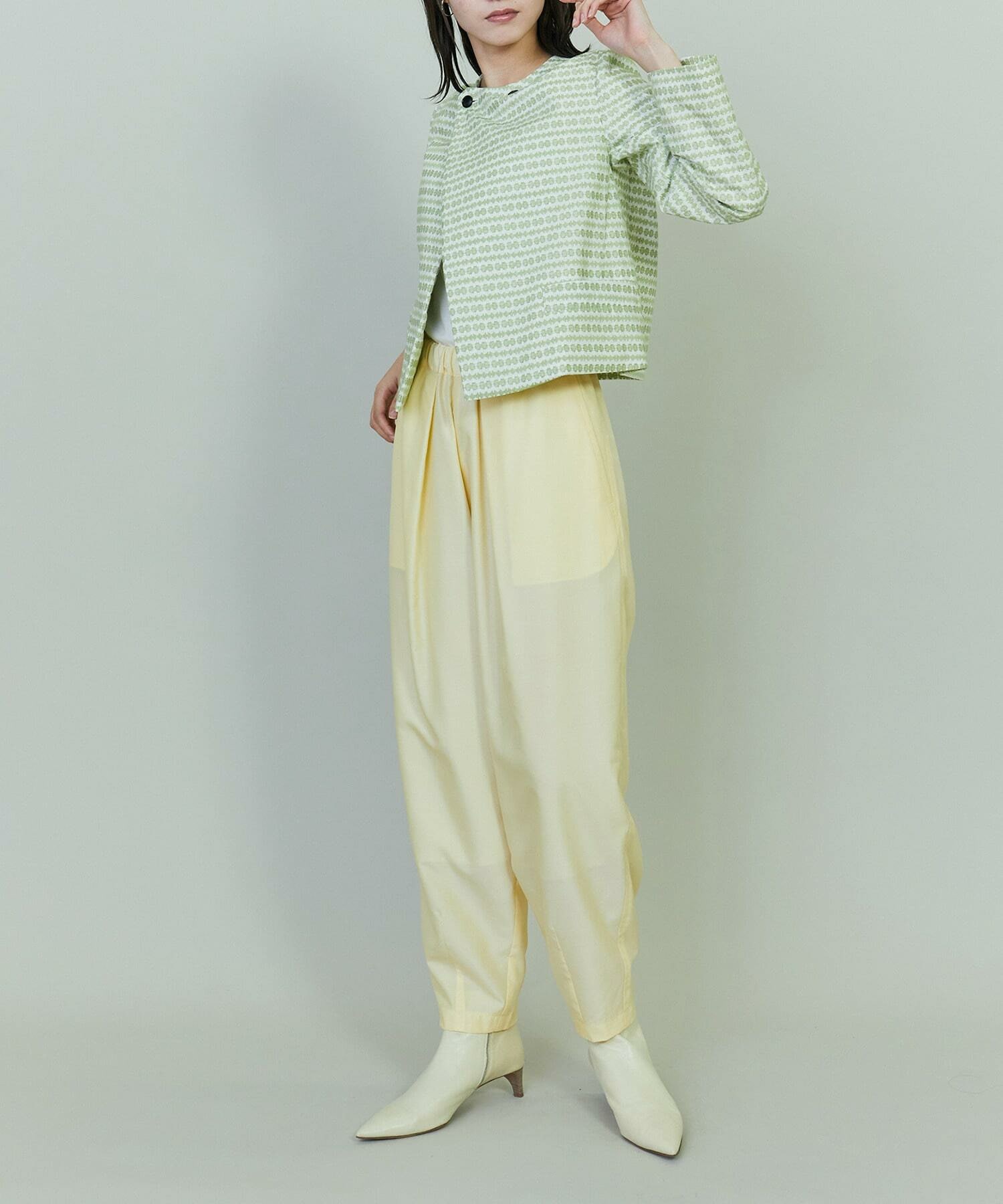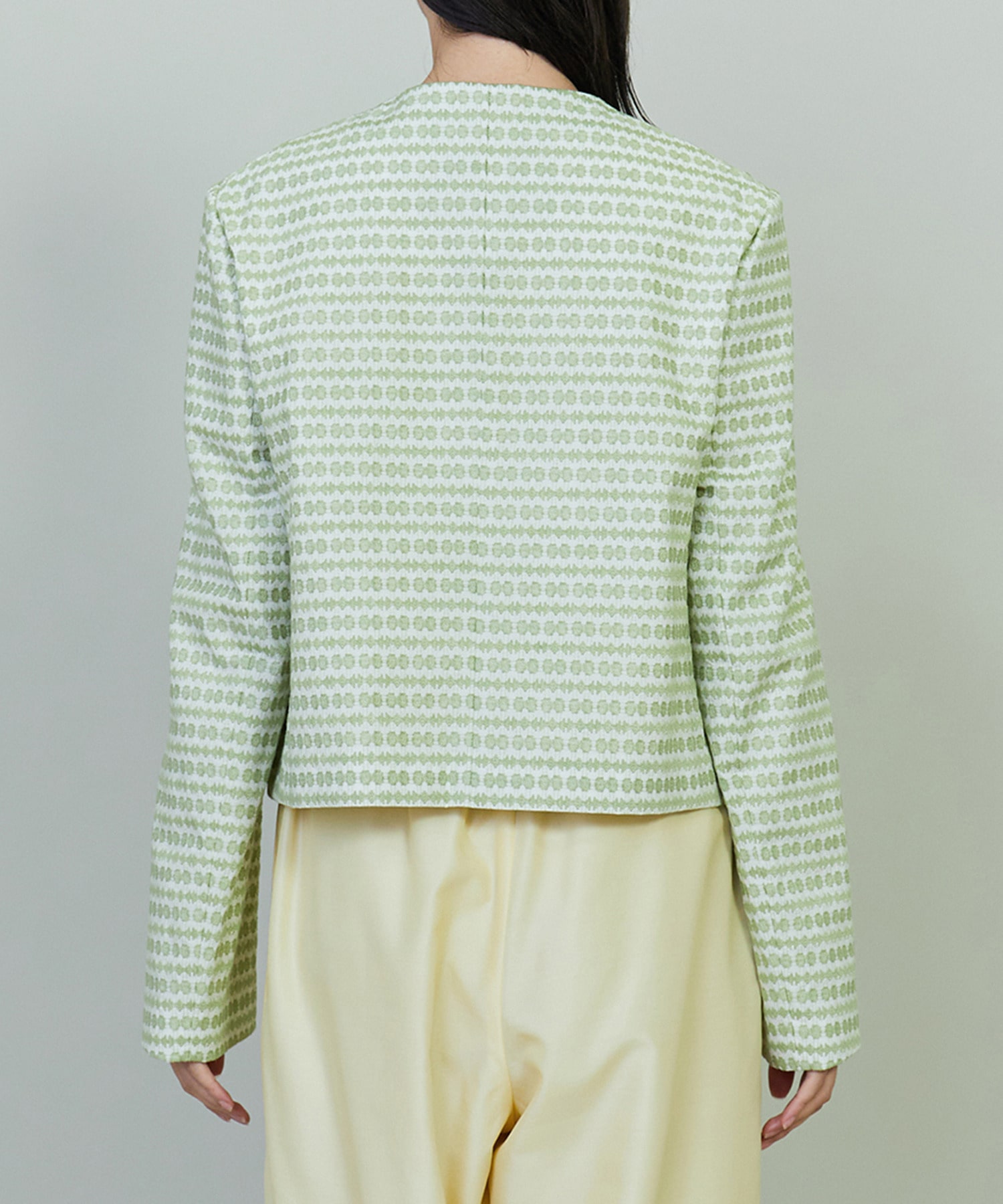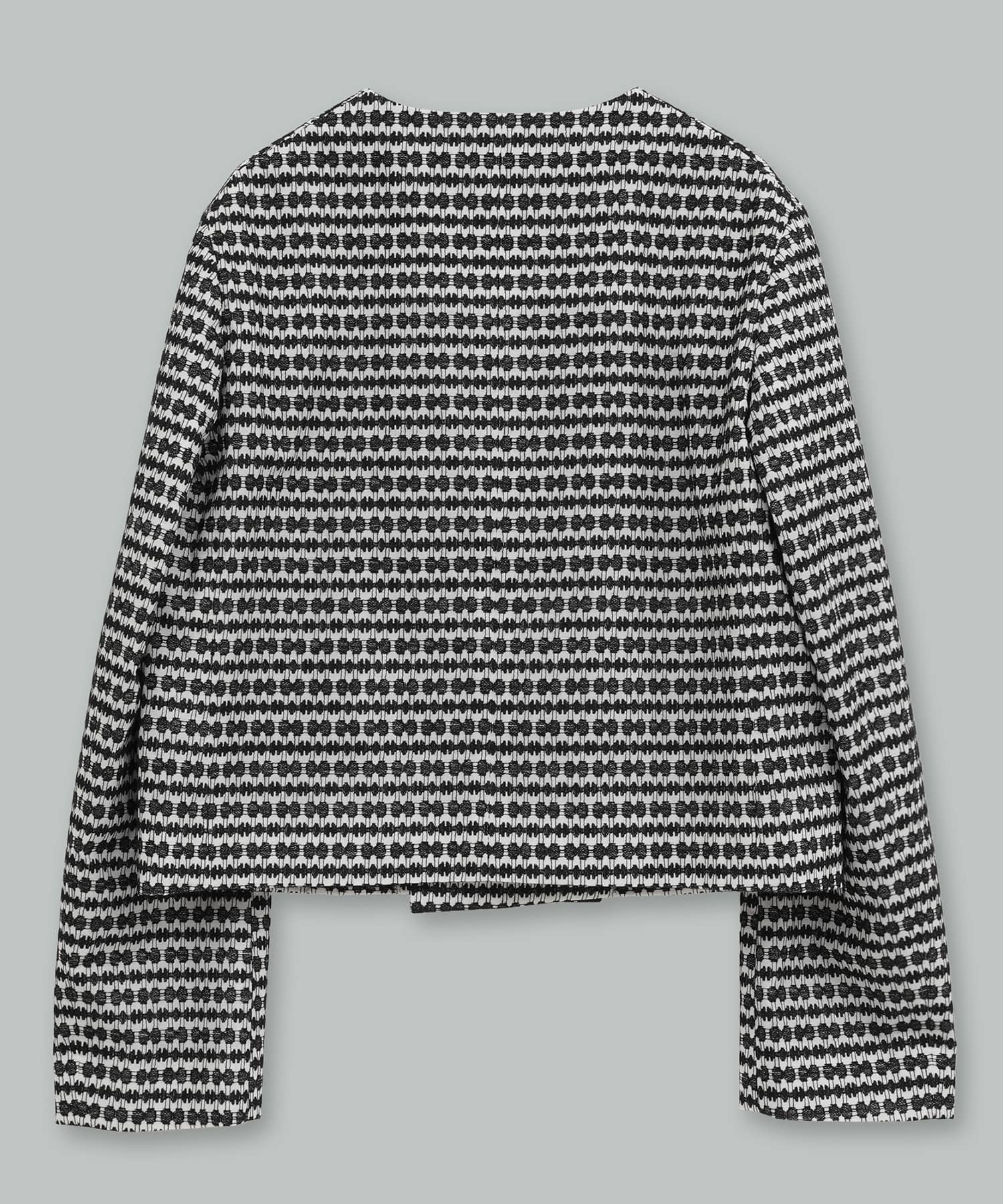 エレガントとマニッシュ感を持ち合わせたノーカラージャケットです。フラップ、ボタン位置を工夫することでモダンに仕上げました。