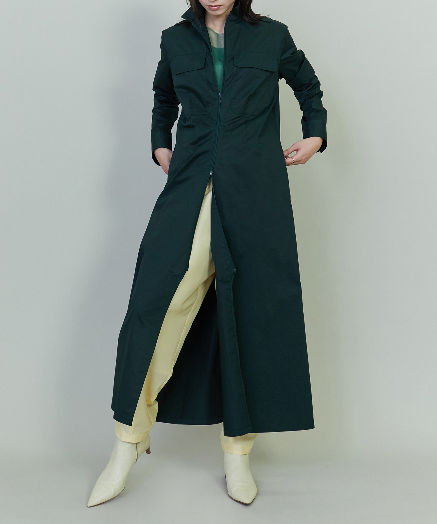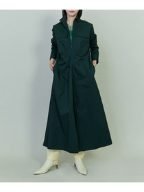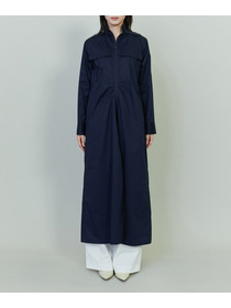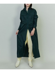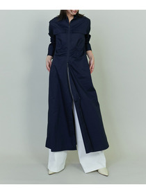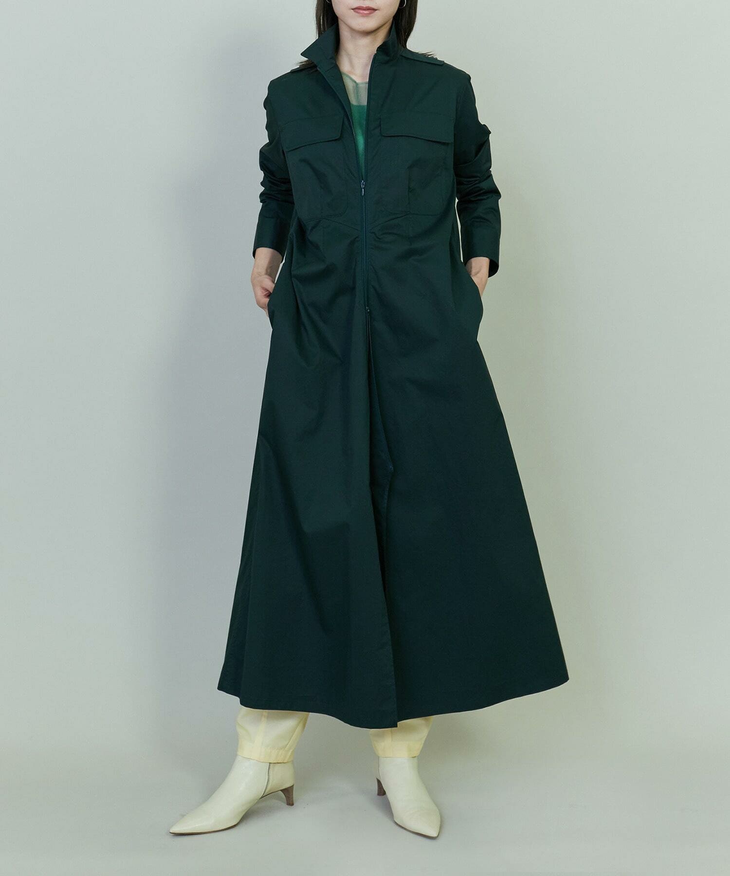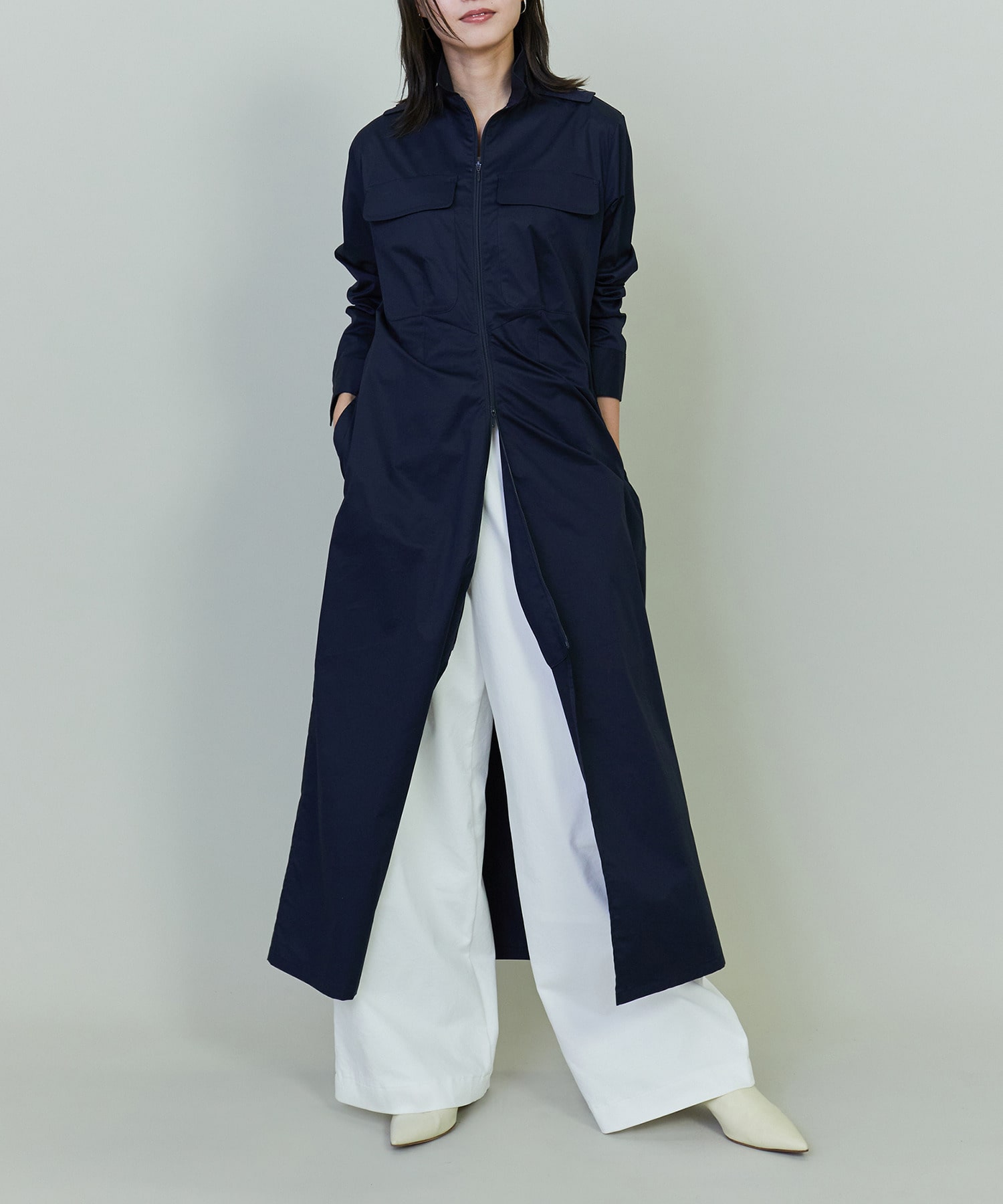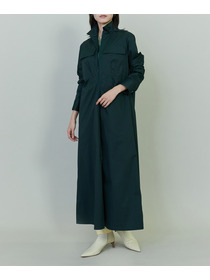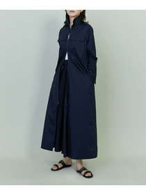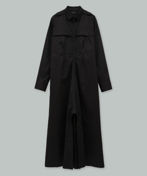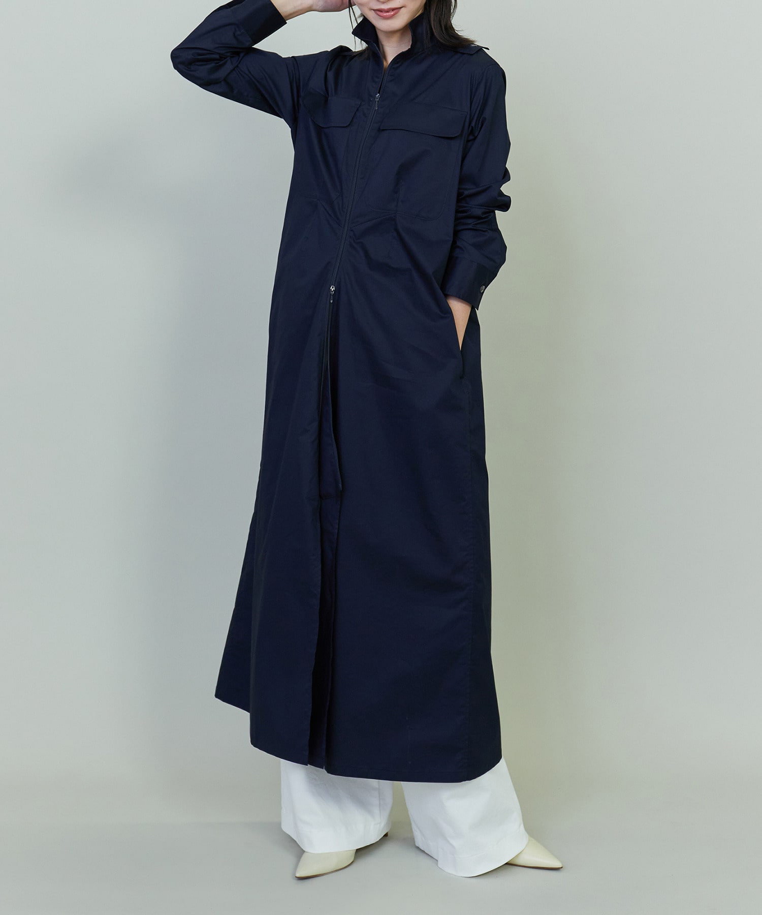 変形エポレットやファスナーをあえてカーブに付けるなど、一見シンプルながらデザインが入ったシャツドレスです。