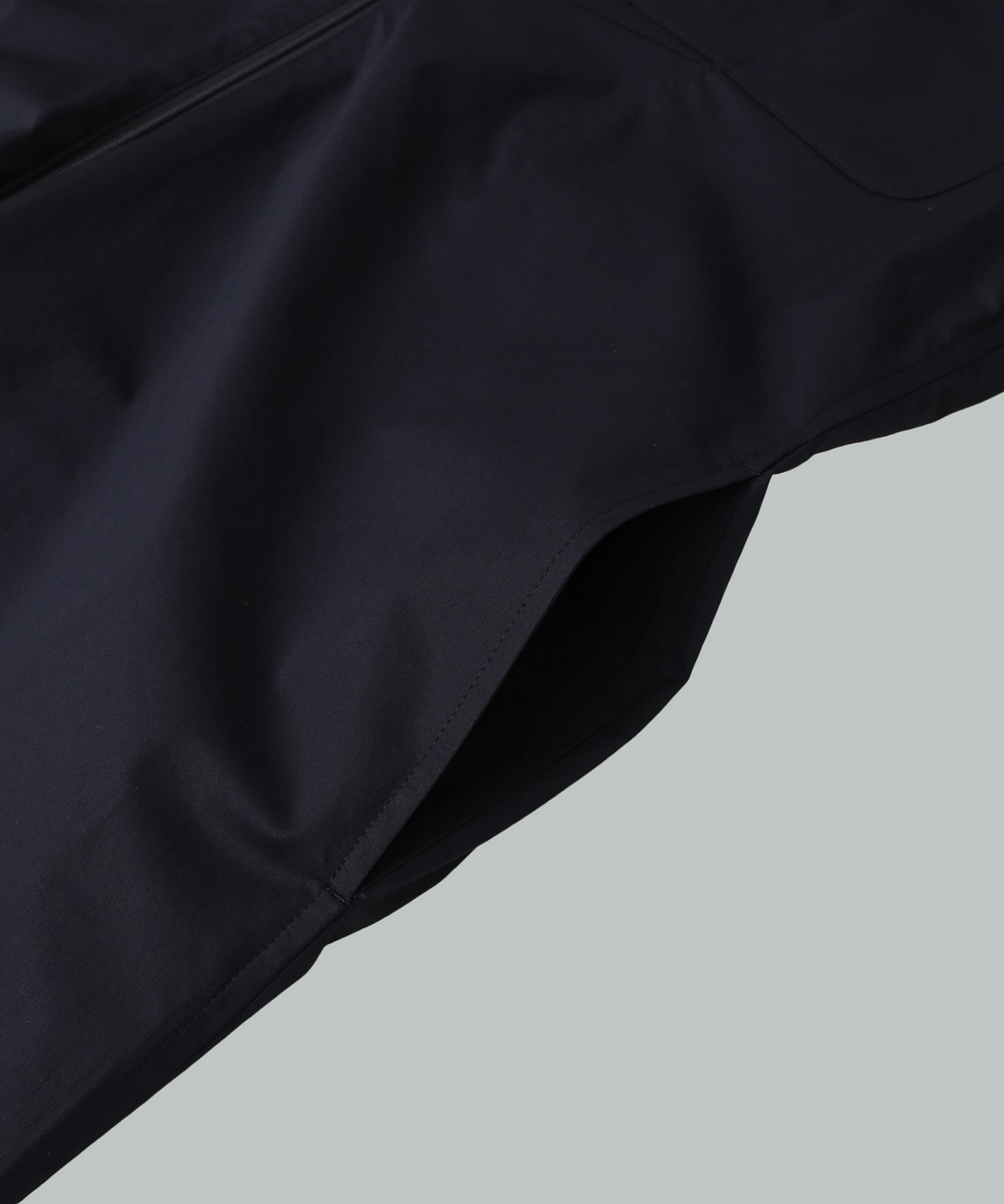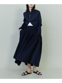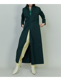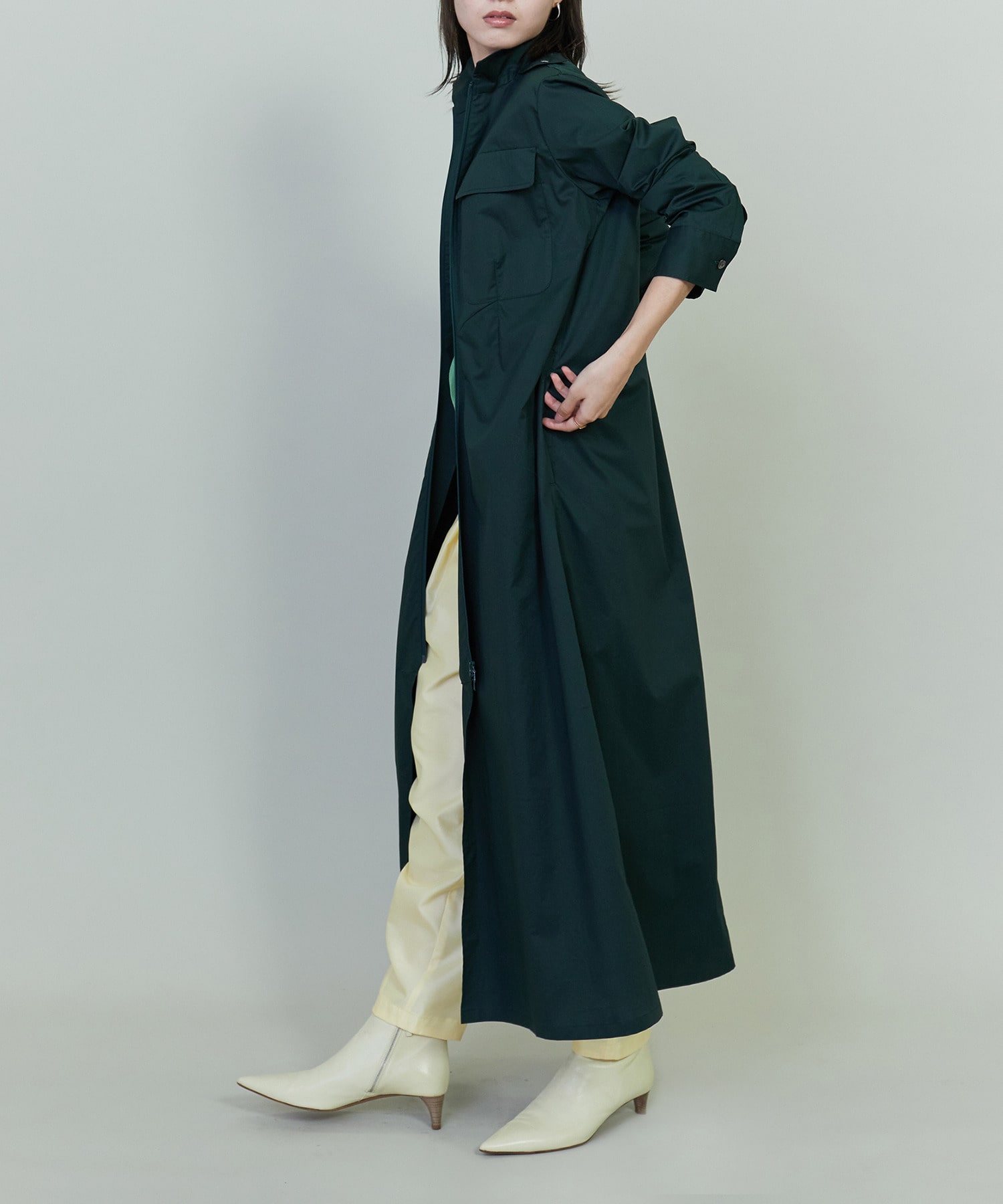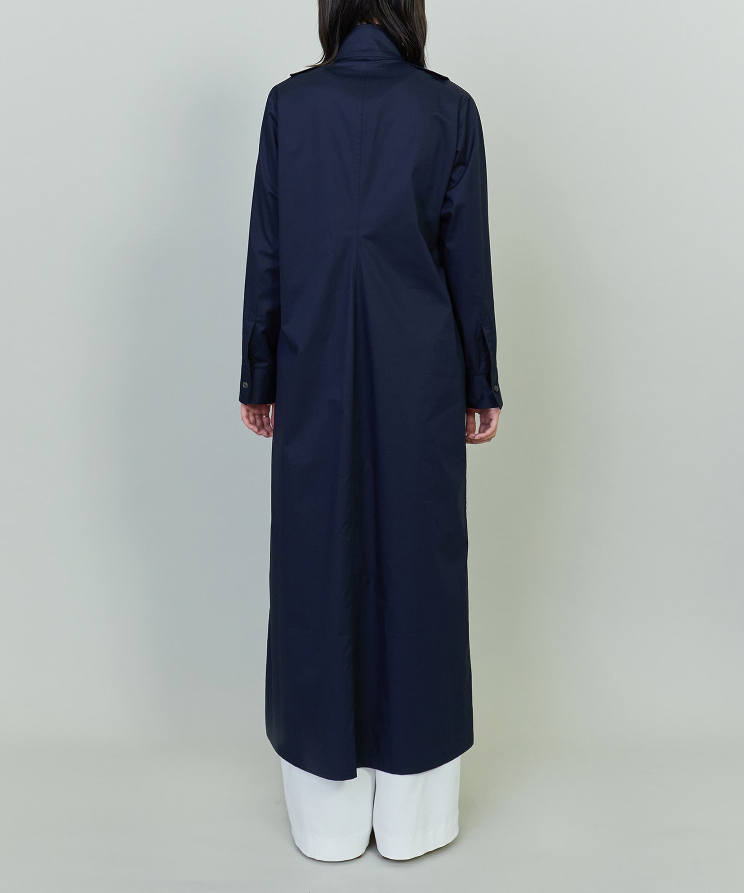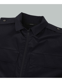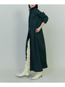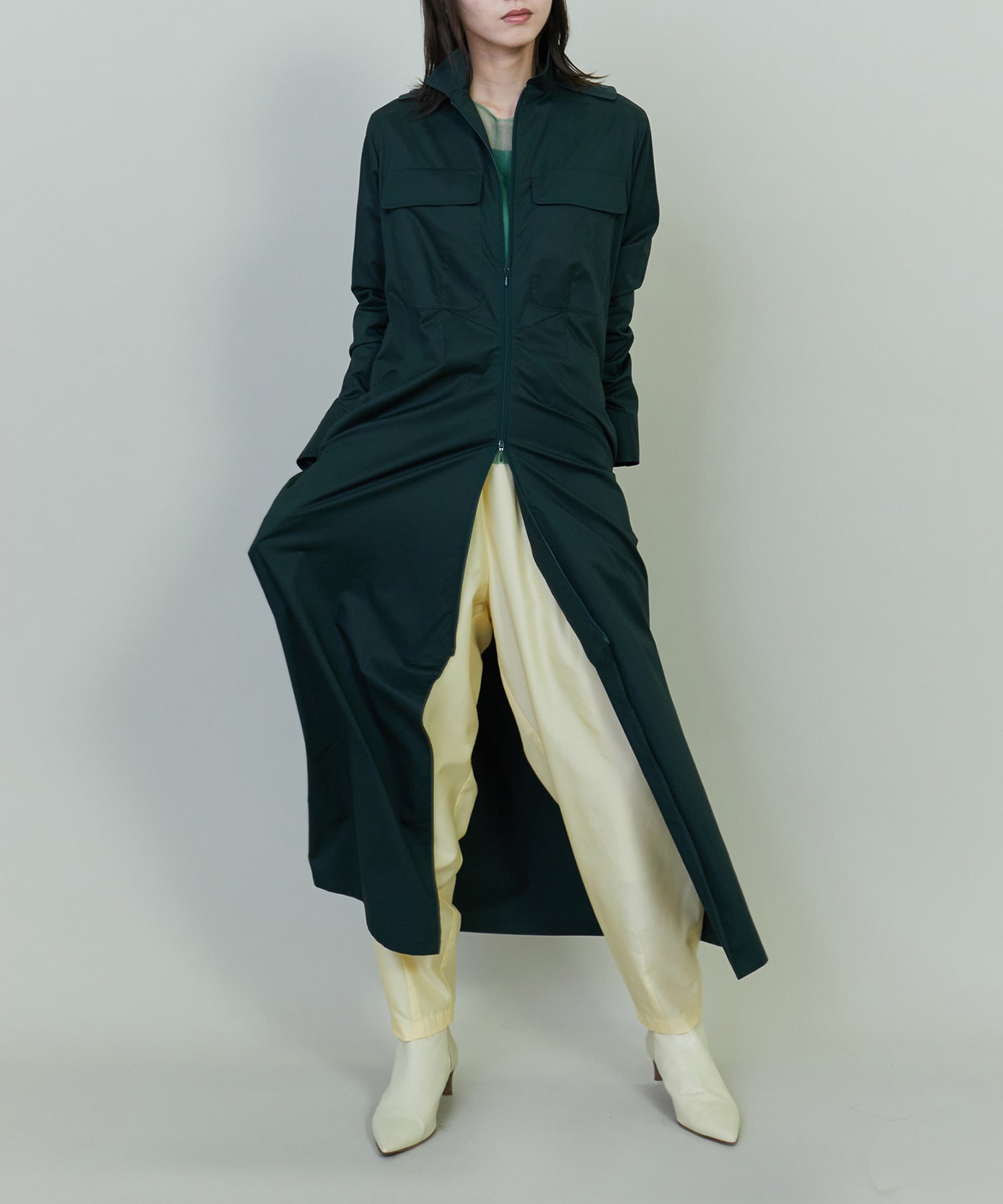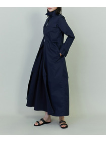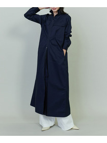 変形エポレットやファスナーをあえてカーブに付けるなど、一見シンプルながらデザインが入ったシャツドレスです。
