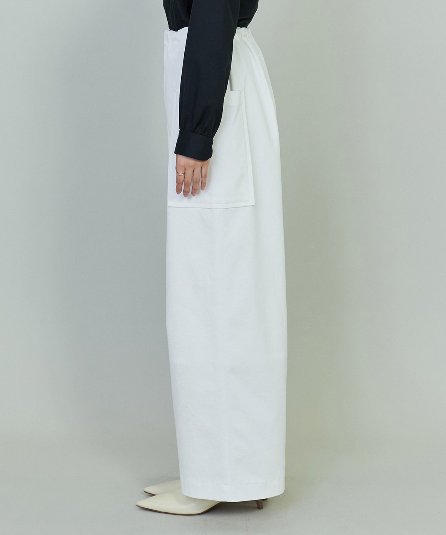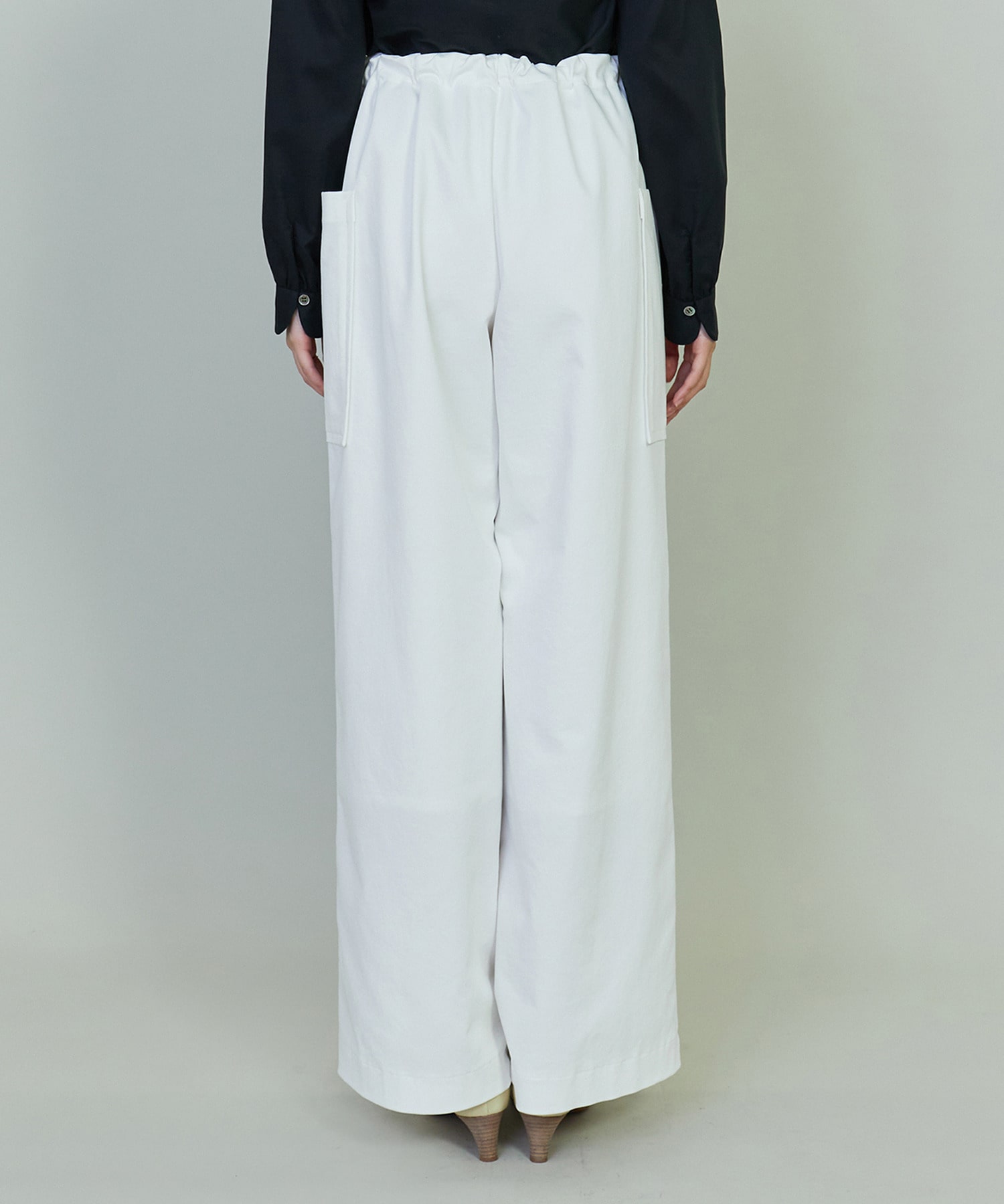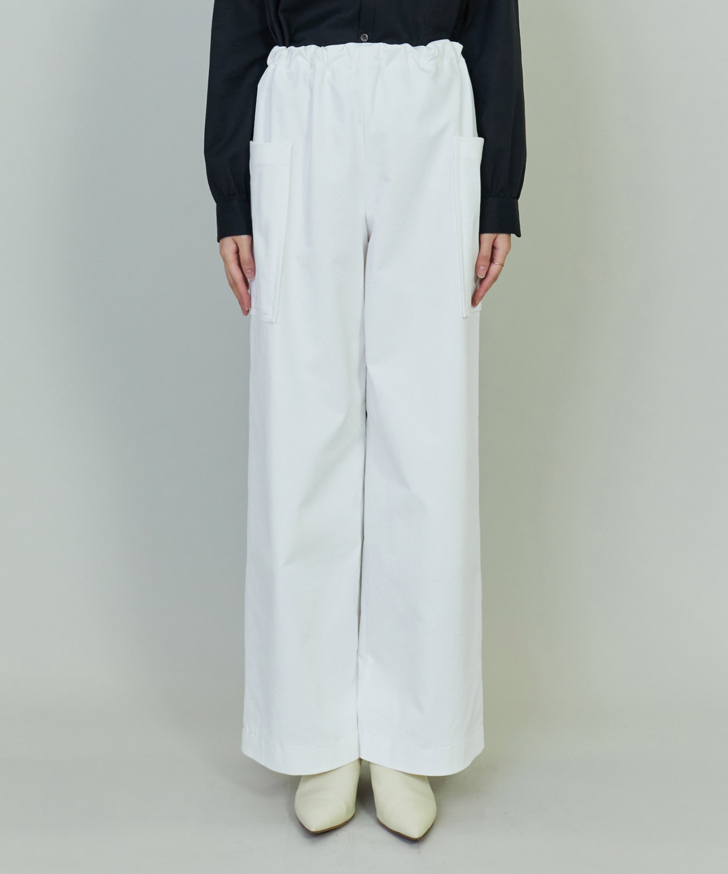ポケット位置をモダンなバランスで配置したストレートフォルムのイージーパンツ。