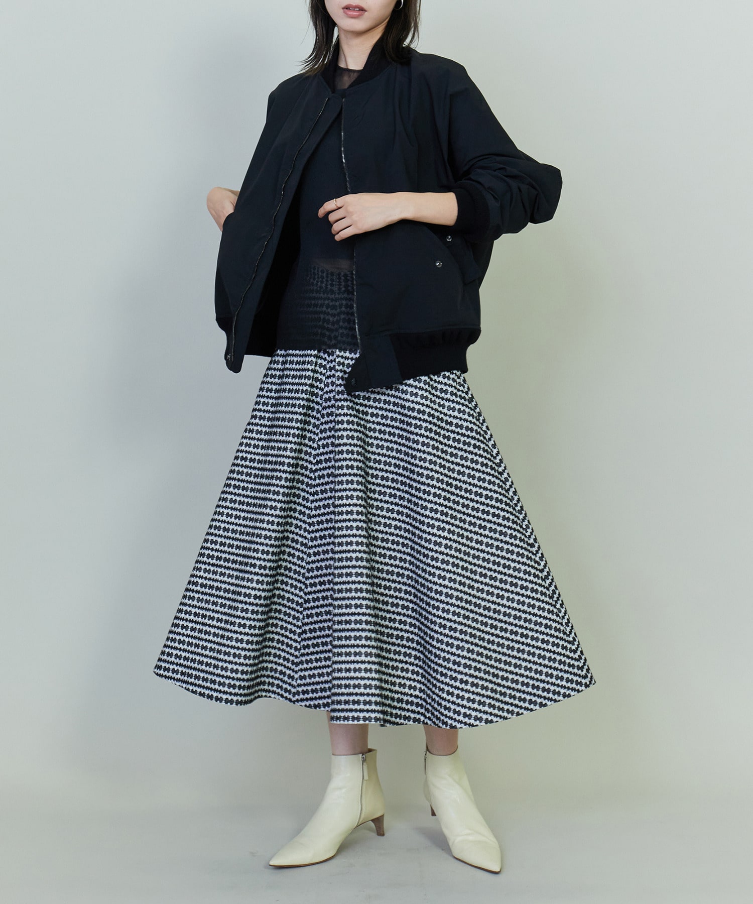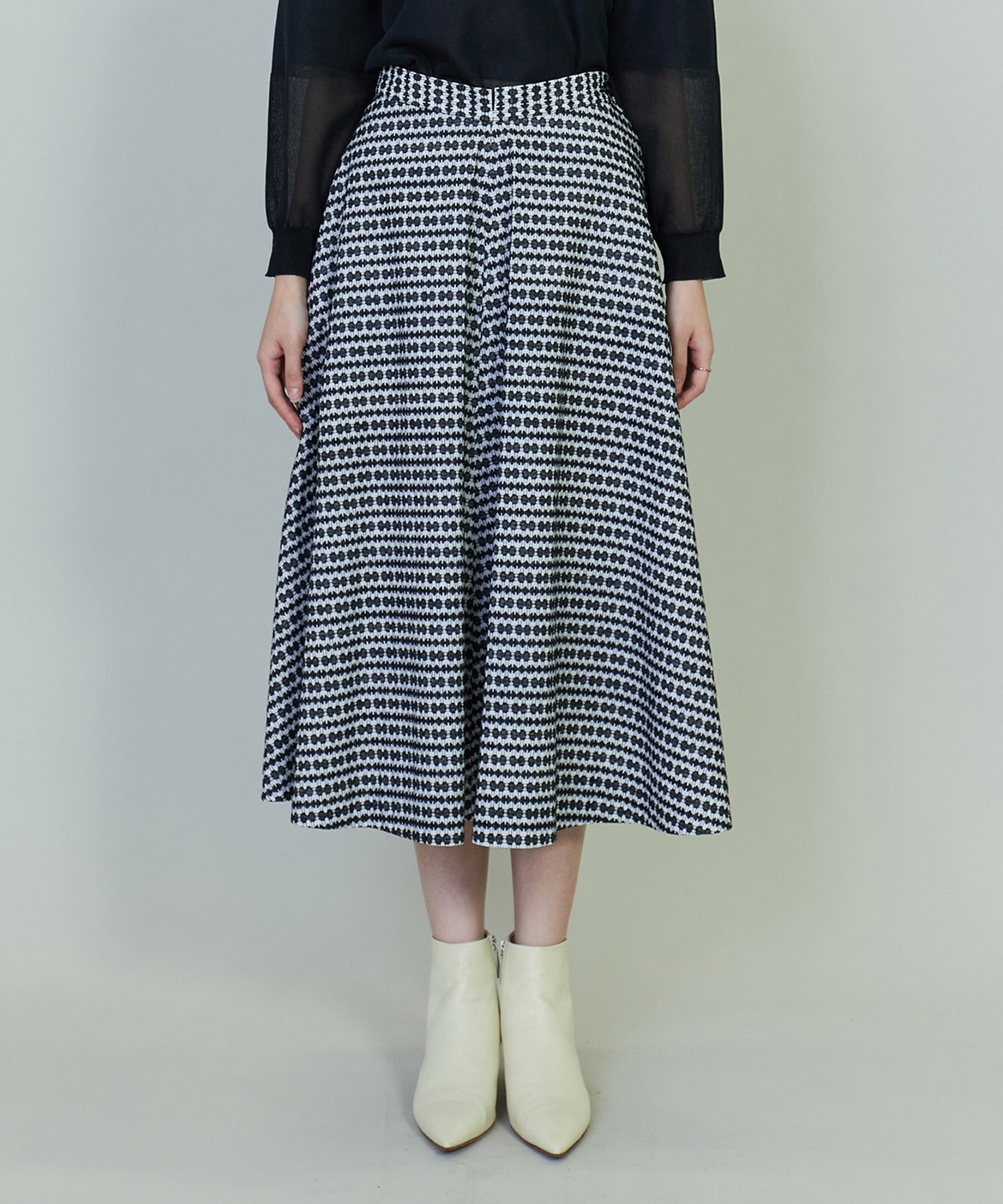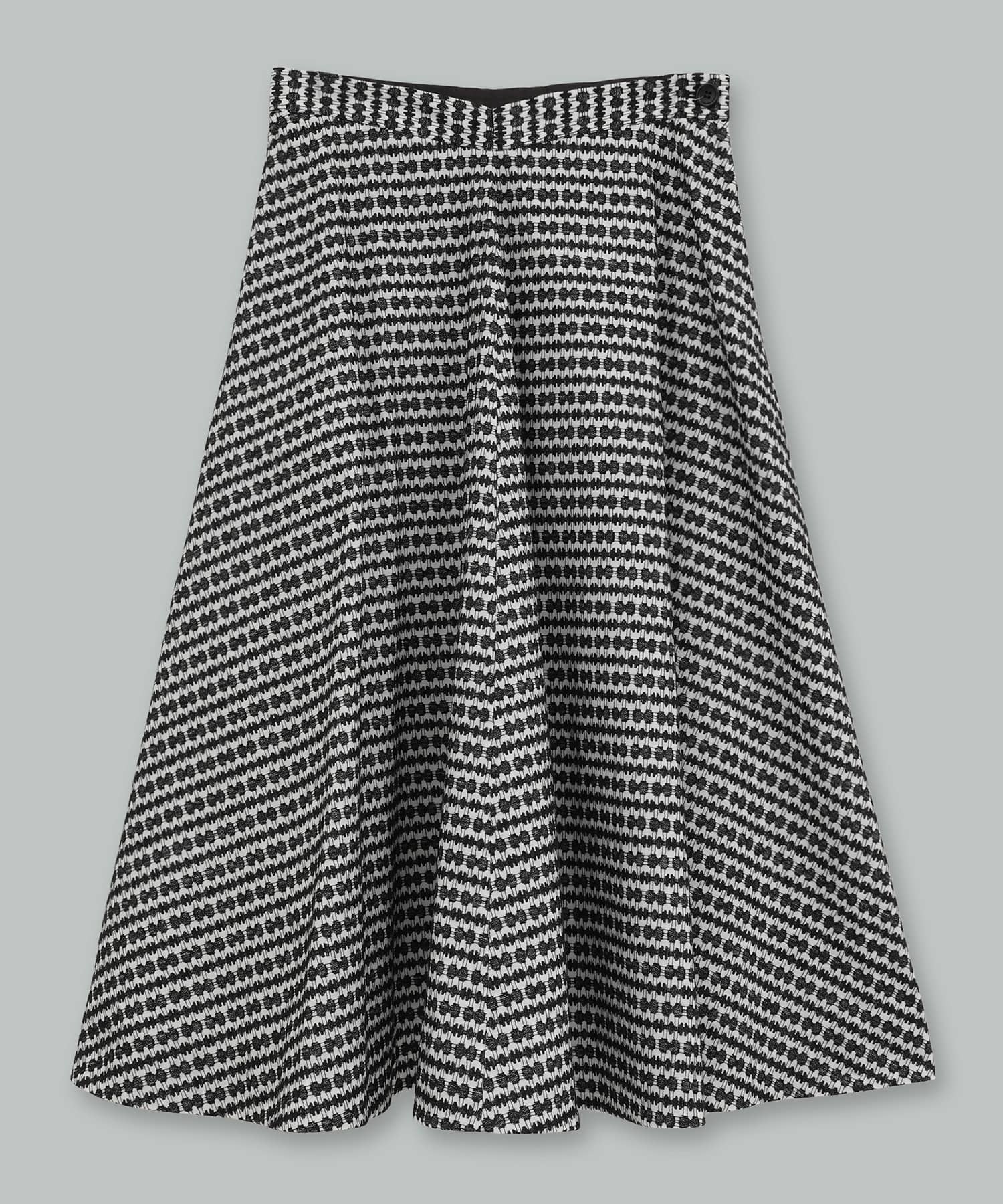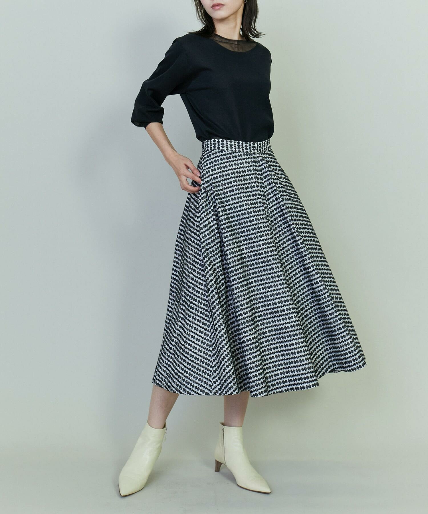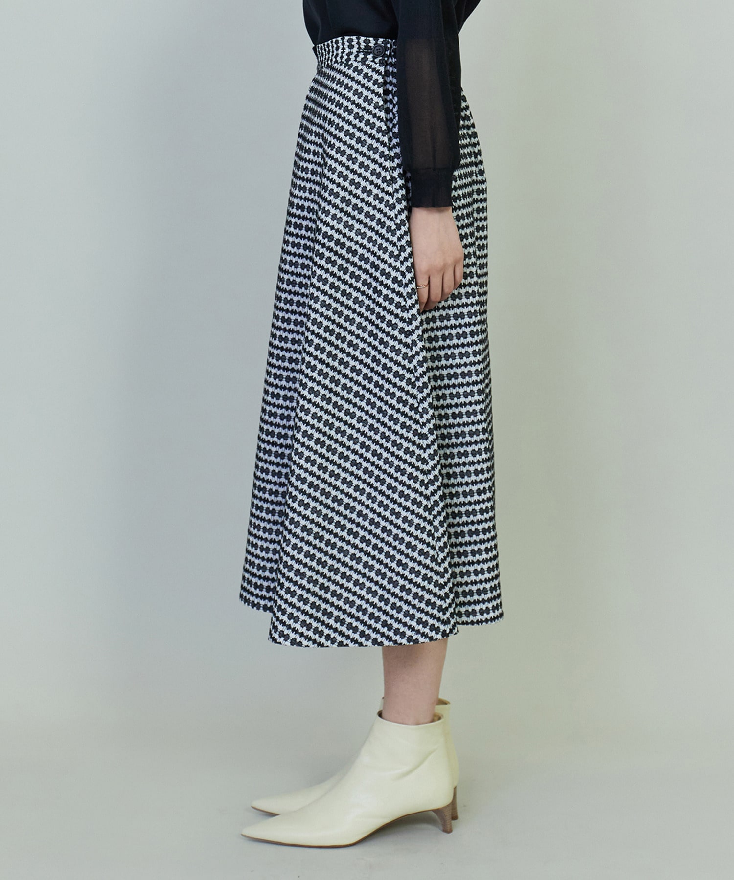 前にせり出す三角形のフォルムが特徴のフレアースカート。