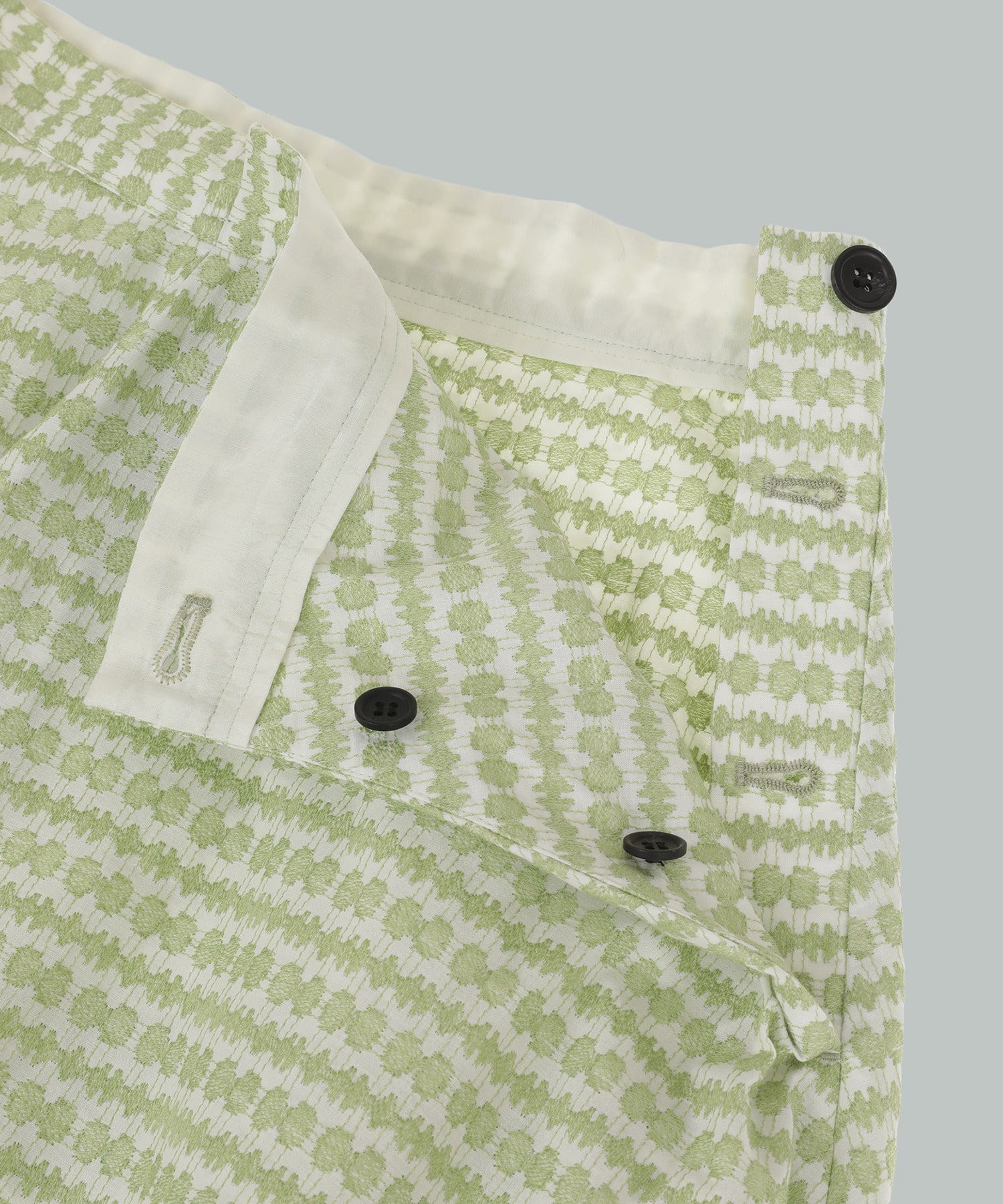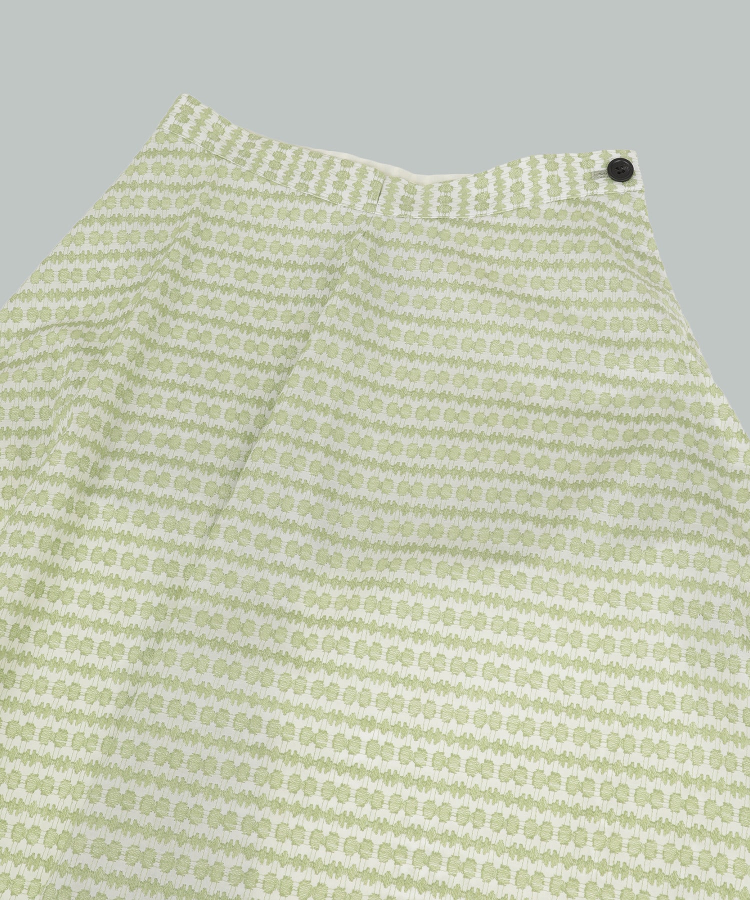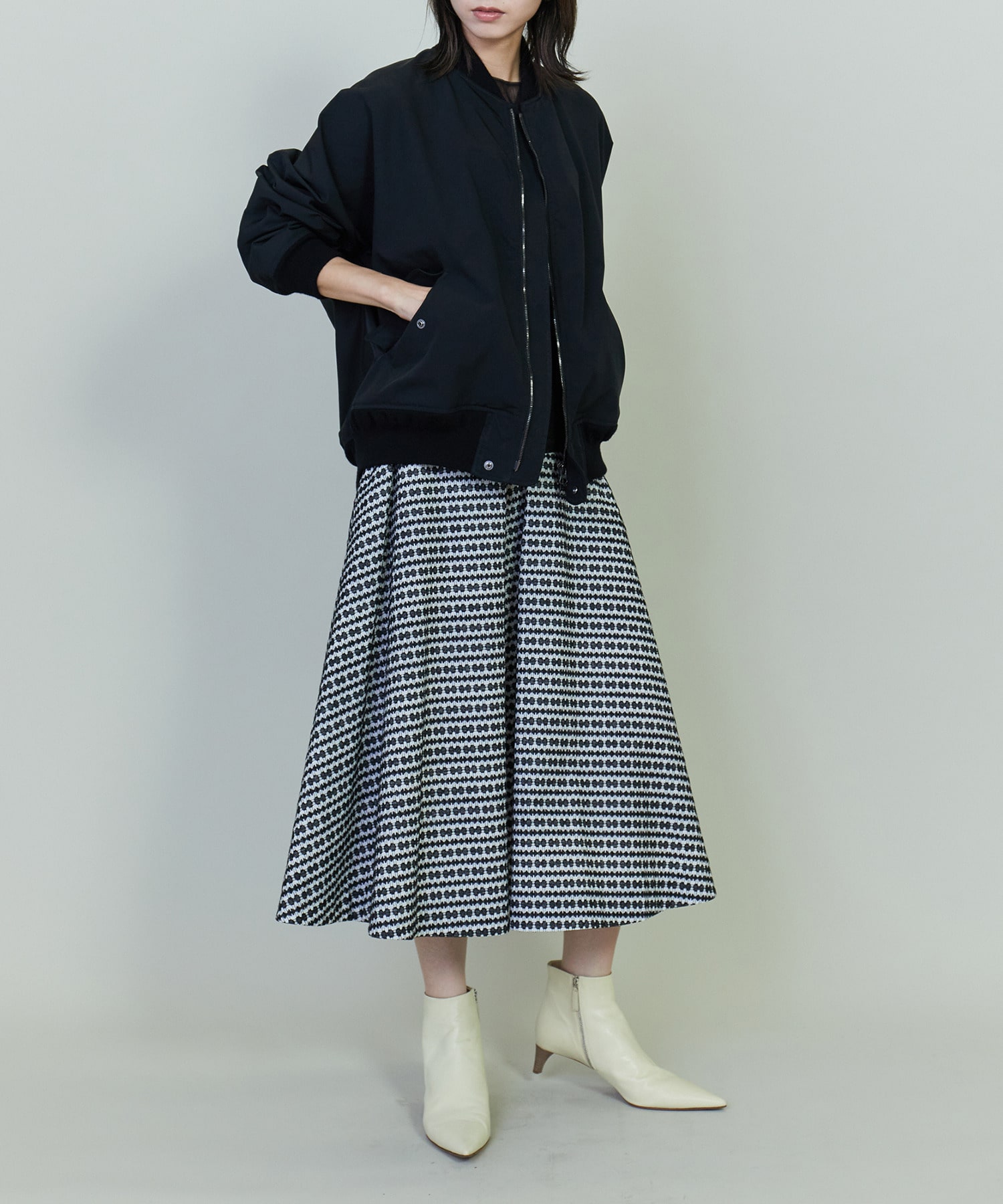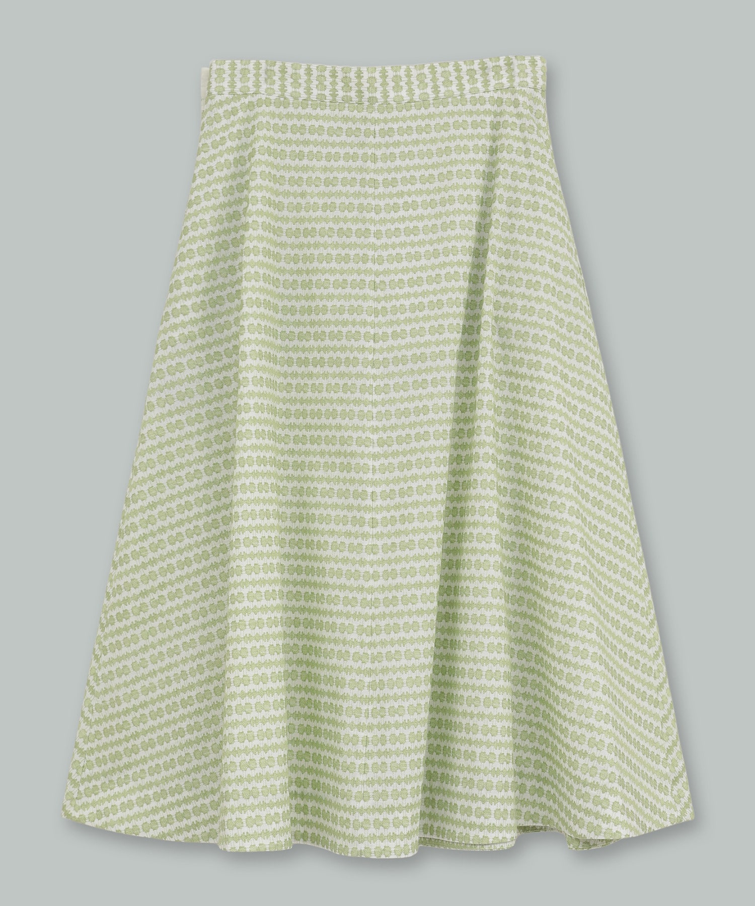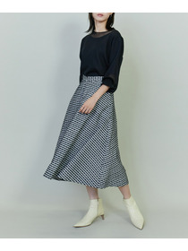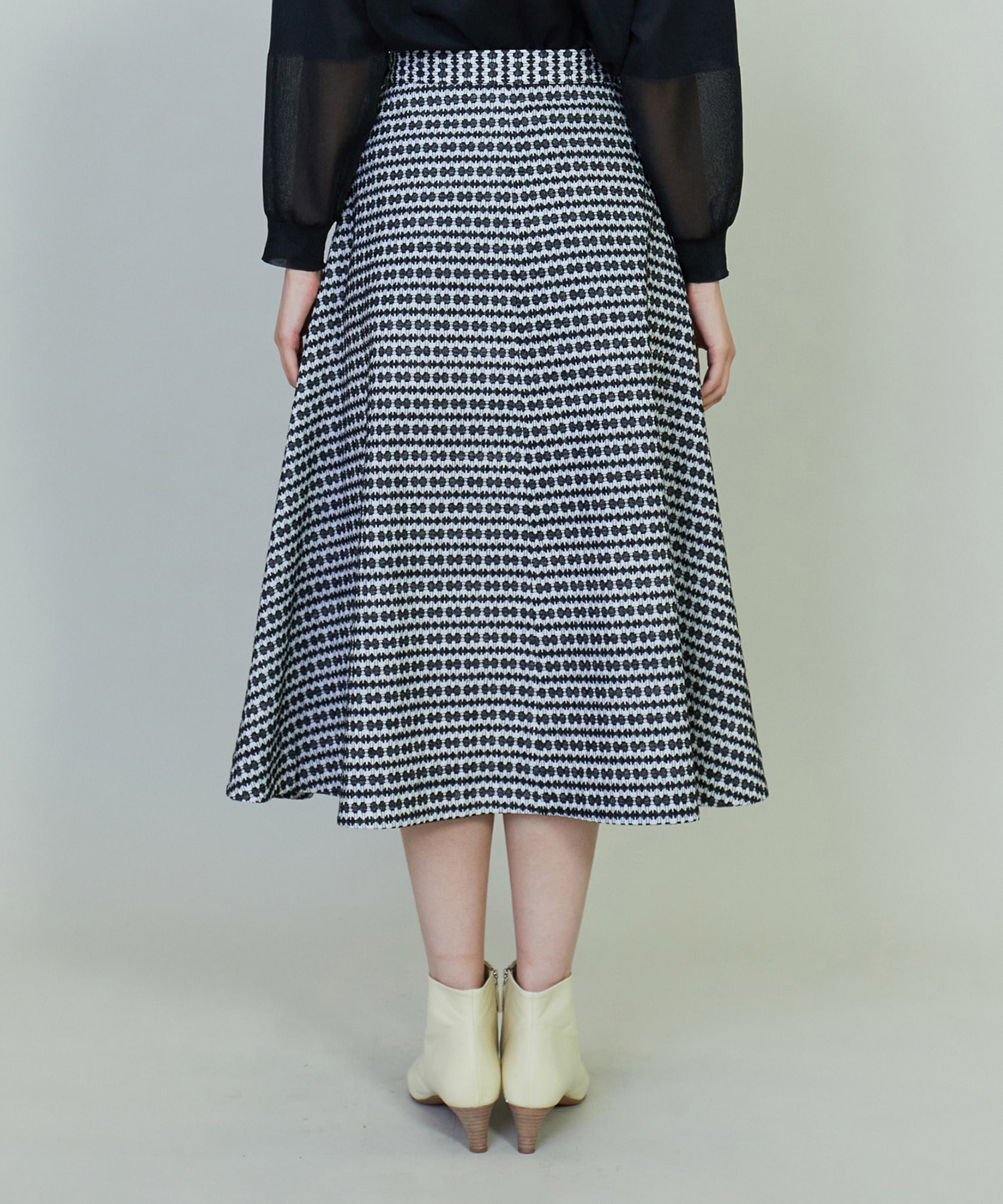 前にせり出す三角形のフォルムが特徴のフレアースカート。