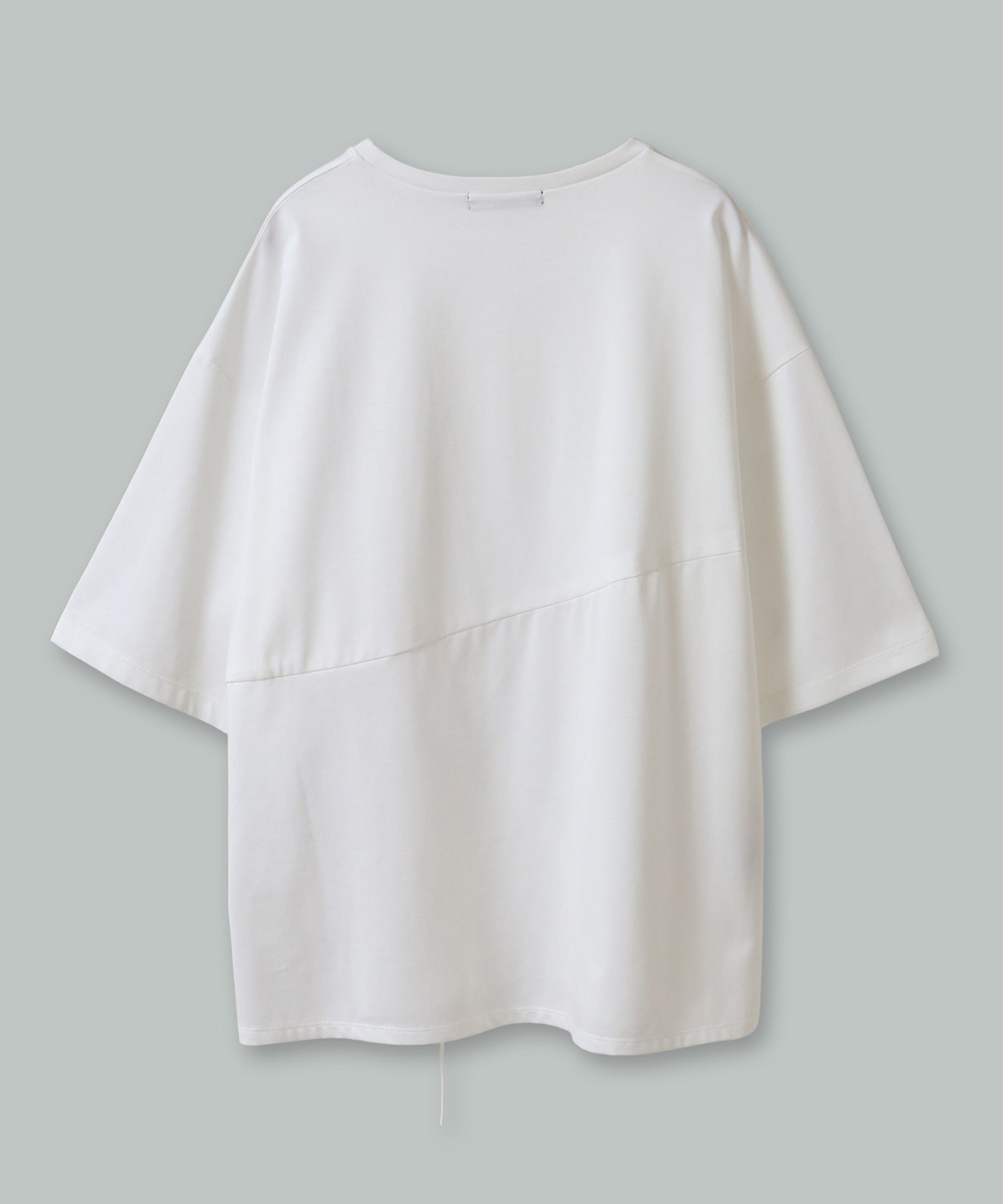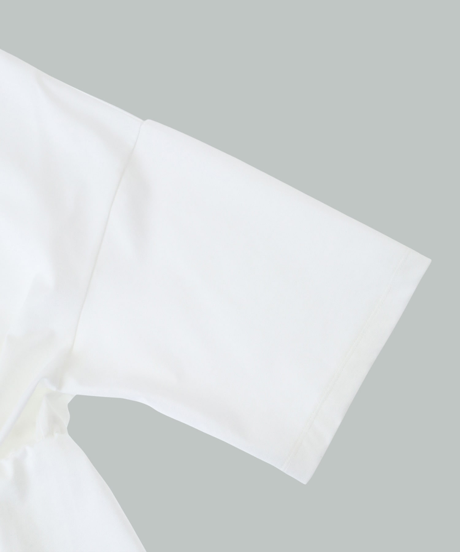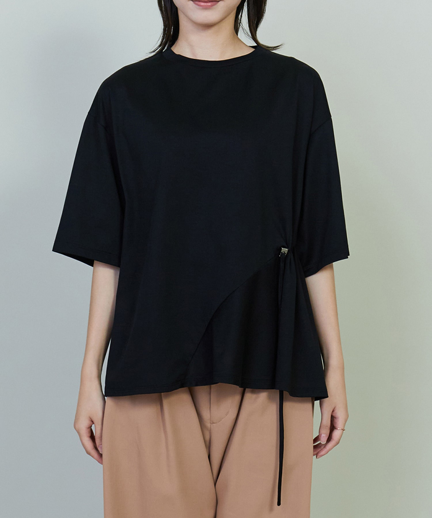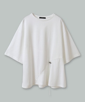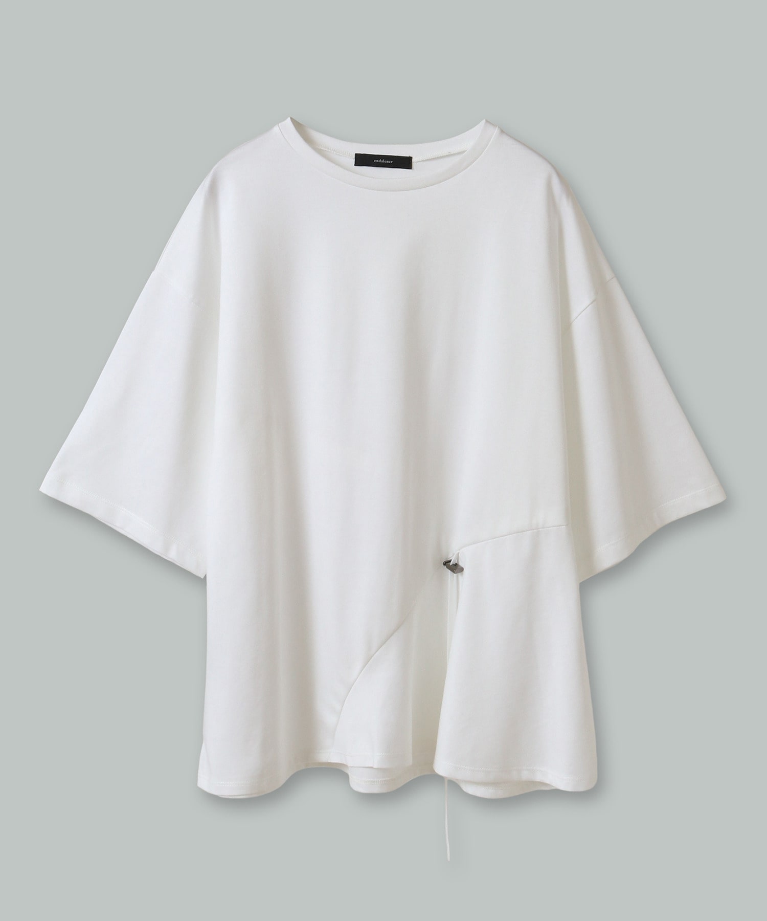 特殊加工により素材の良さを最大限に引き出している為、従来の綿100%のカットソーに比べ、凛とした光沢感と風合いが特徴です。シンプルになりがちなTシャツに、スポーティーな要素のドローコードを左脇のみに採用している為、着こなしの幅が広がるトップスになっています。