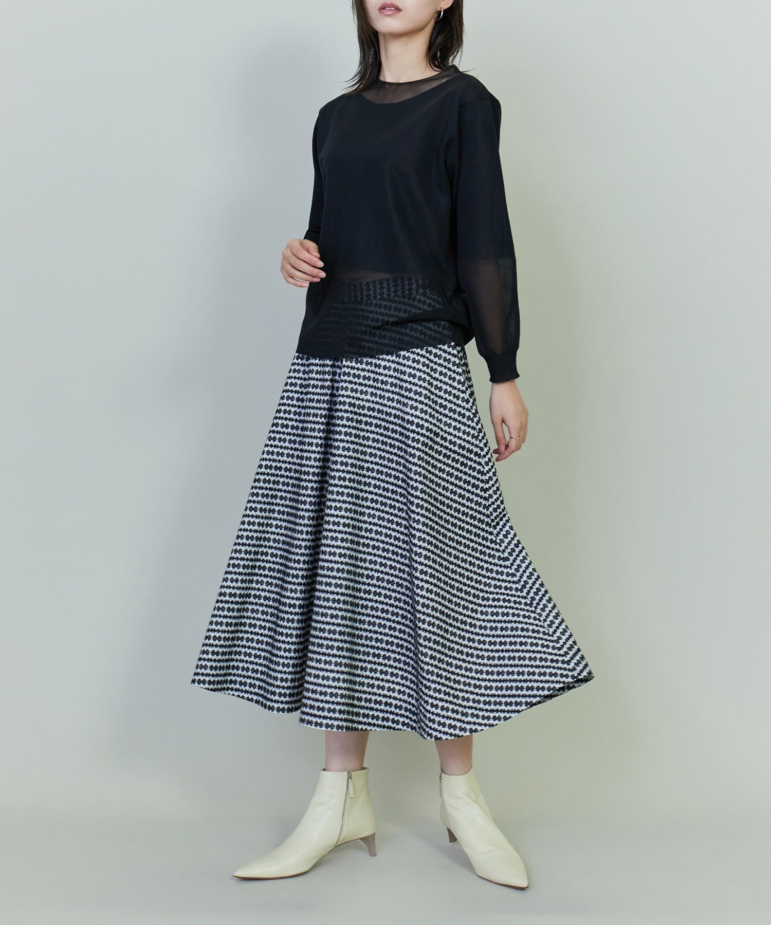 着用時のバランスが絶妙で、トレンドのシアーニットをエンダレンス風に上品にアレンジした1枚です。