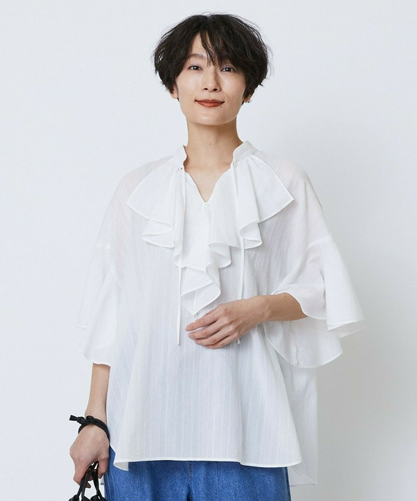 【Lサイズ】feerique ボイルクレープフリルブラウス