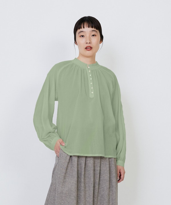 • 【LOISIR】【少量生産】ガーゼエンブロイダリースタンドカラーブラウス