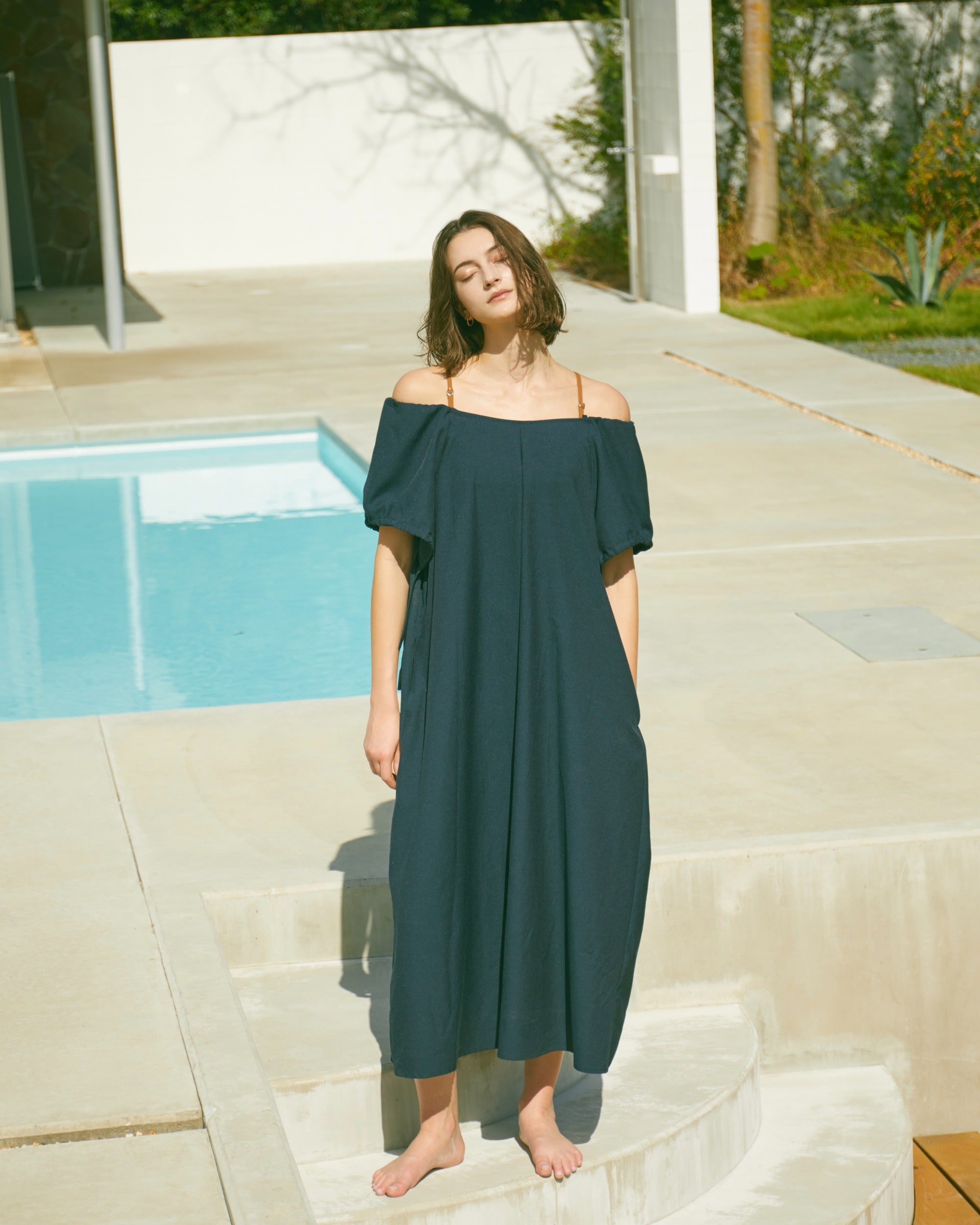 背中が映えるバックシャンデザインがポイントで、夏のデイリースタイルにもぴったり。