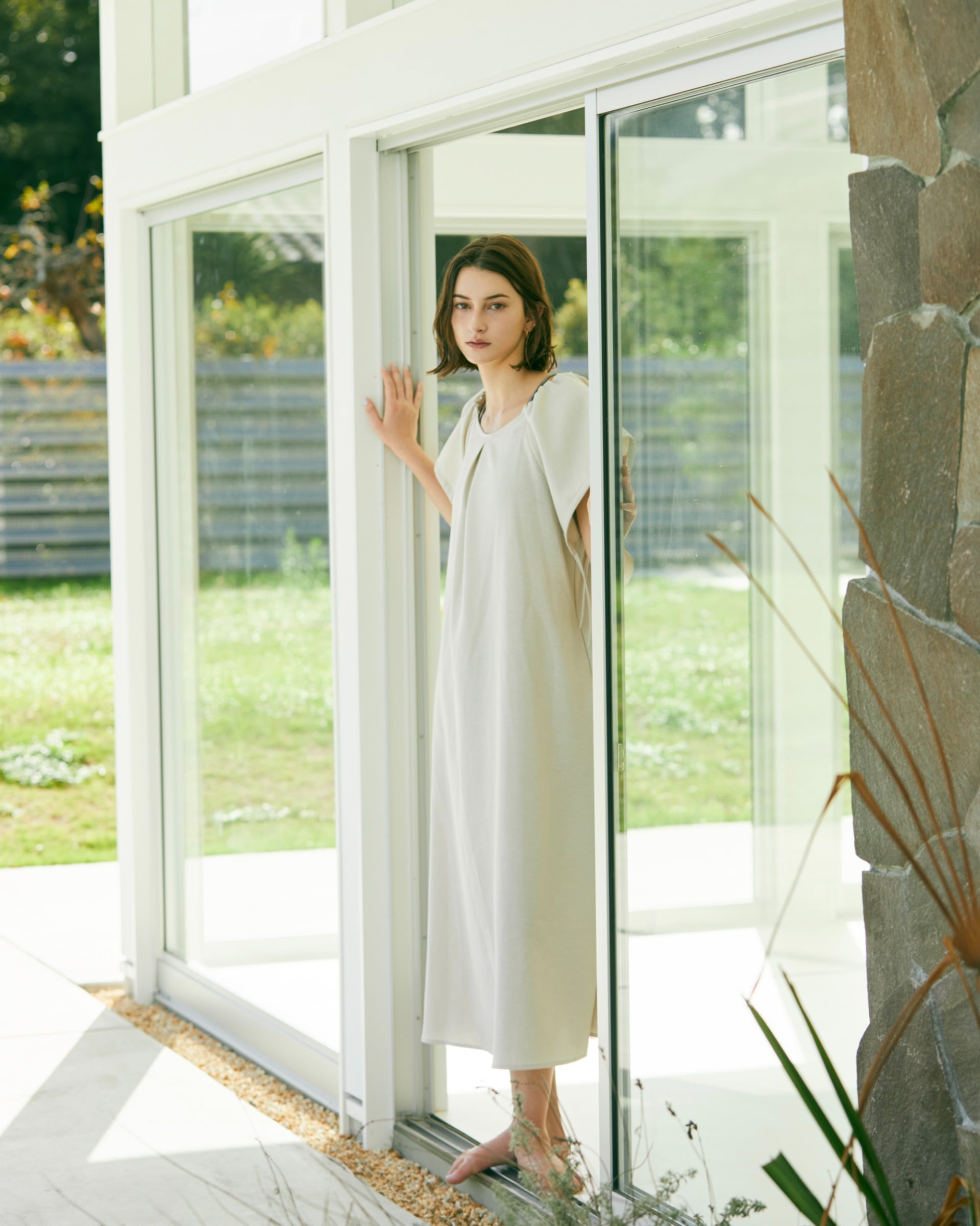 軽やかな素材が生み出す、美しく揺れるシルエットが魅力のワンピース。