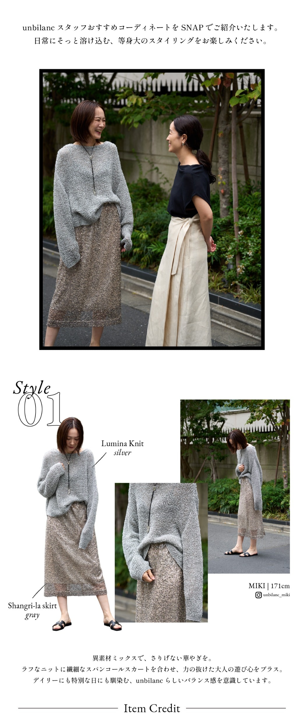 ルミナニットシルバー ¥42,900(tax in) シャングリラスカートグレー ¥149,600(tax in) <JOAQUIN BERAO>Necklace TOKYO Silver 01シルバー ¥108,900(tax in) テネルノースリーブブラック ¥26,400(tax in) ブライトンラップスカートキナリ ¥97,900(tax in) <JOAQUIN BERAO>Bangle FLORA SV 01 Mサイズシルバー ¥196,900(tax in) バラムコートベージュ ¥242,000(tax in) ストームキャミワンピーススミクロ ¥97,900(tax in) <JOAQUIN BERAO>Necklace TOKYO Silver 01シルバー ¥108,900(tax in) <JOAQUIN BERAO>Bangle TOKYO SV 01 Mサイズシルバー ¥207,900(tax in) バラムジャケットベージュ ¥239,800(tax in) トルクニットベージュ ¥49,500(tax in) トルクニットパンツベージュ ¥53,900(tax in) <JOAQUIN BERAO>Necklace GAUDI SV 01シルバー ¥107,800(tax in)