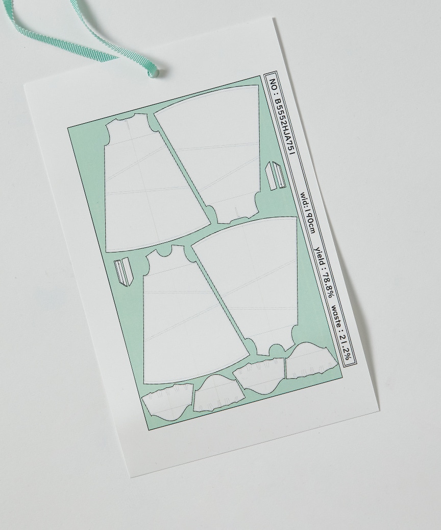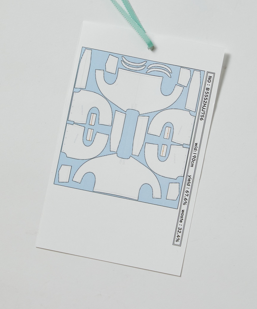 L'EQUIPE GREENの一部アイテムは、カットロスを考えながらもデザイン性を失わないように、女性らしい構築的なフォルムにもこだわっています。