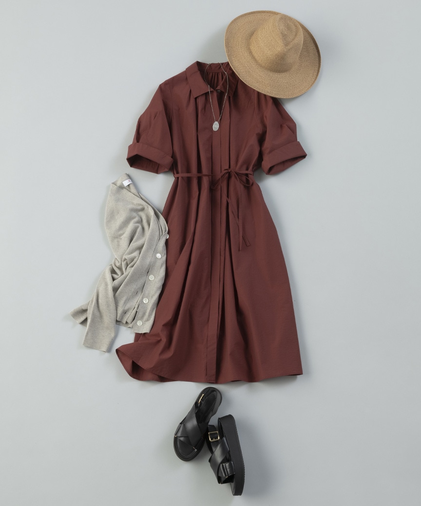 シンプルに一着で、または羽織りとしてマルチに活躍するシャツワンピース。