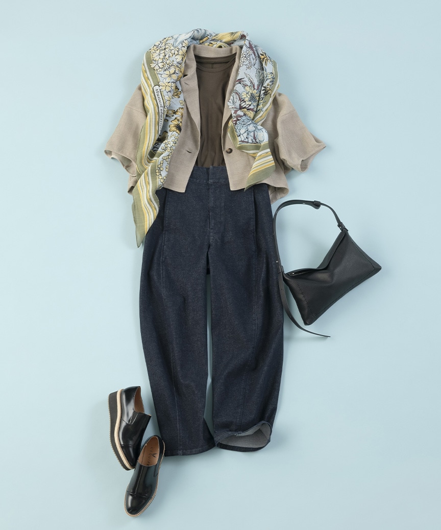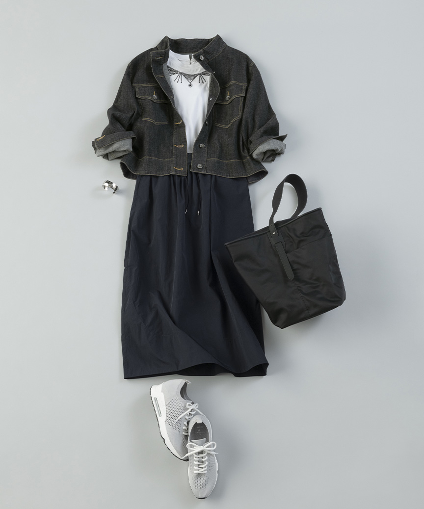 短めの丈でボトムスを選ばず、合わせやすいのも魅力で、デニムスタイルを格上げしてくれます。