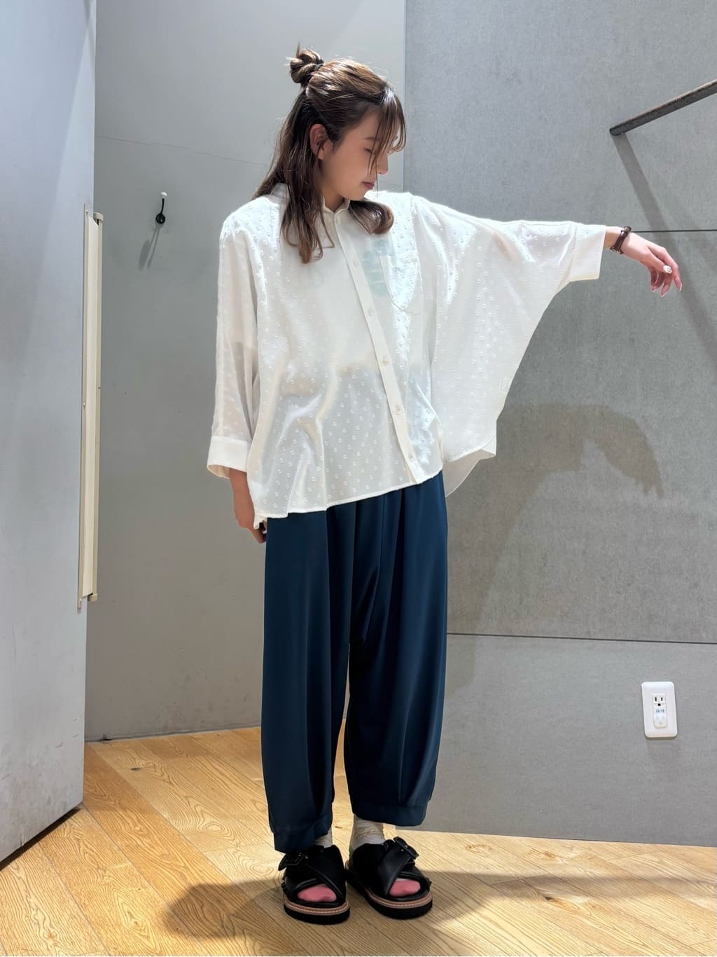 ふわっとした形が涼し気なブラウスに ドレープ感が特徴のサルエルパンツを合わせた リラックス感がフラボアらしいコーディネート。 ゆったりとしたシルエットながら 光沢のある素材を使っていることで 上品な印象も◎ ▼着用アイテム▼