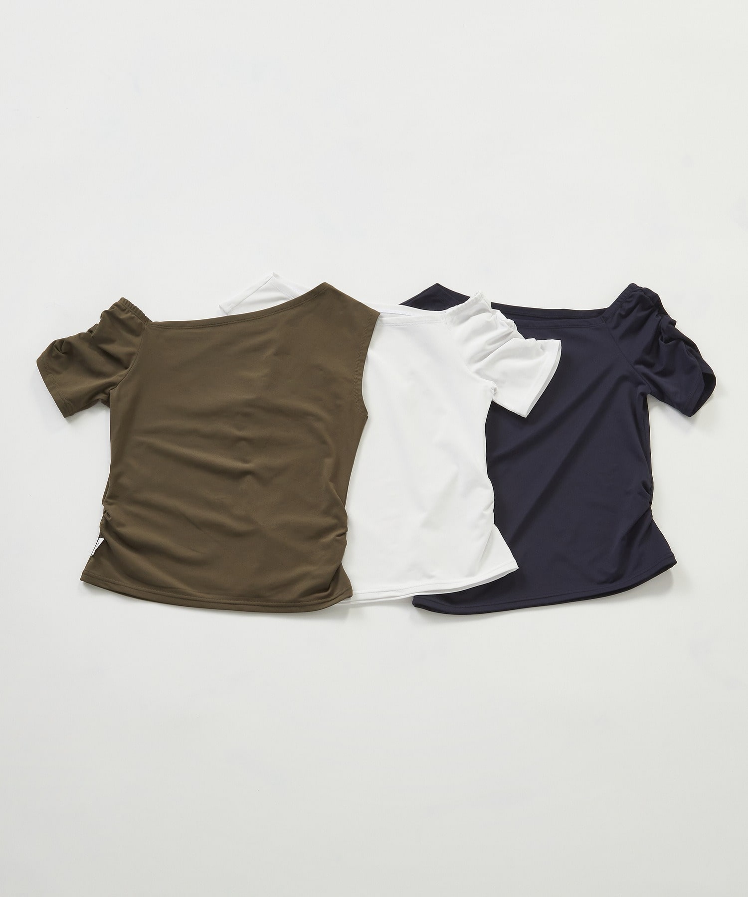 片方はノースリーブ、もう片方は肩を落として着るアシンメトリーデザインは、計算されたカッティングでヘルシーな肌見せと洗練されたおしゃれ感を両立。1枚でコーデが決まる存在感がありながら、デイリーにも取り入れやすい着回し力の高さも魅力です。
