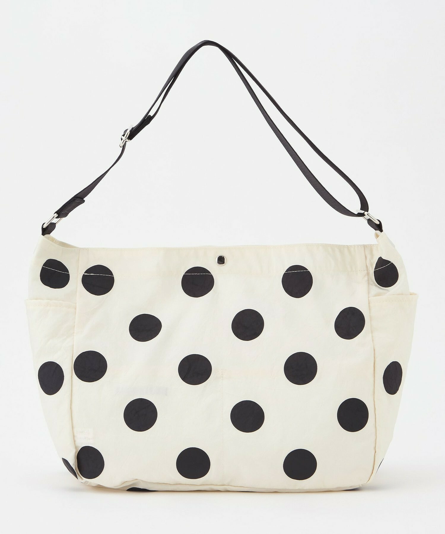 リサイクル素材にオリジナルのドットプリントを施したアイテム。エアーバッグやシートベルトの素材はリサイクル品の為、1点1点異なり、プリントが入っていたり、若干汚れや当たりが出ていたり、色も全て同じではありませんが、その偶然性をお楽しみください。