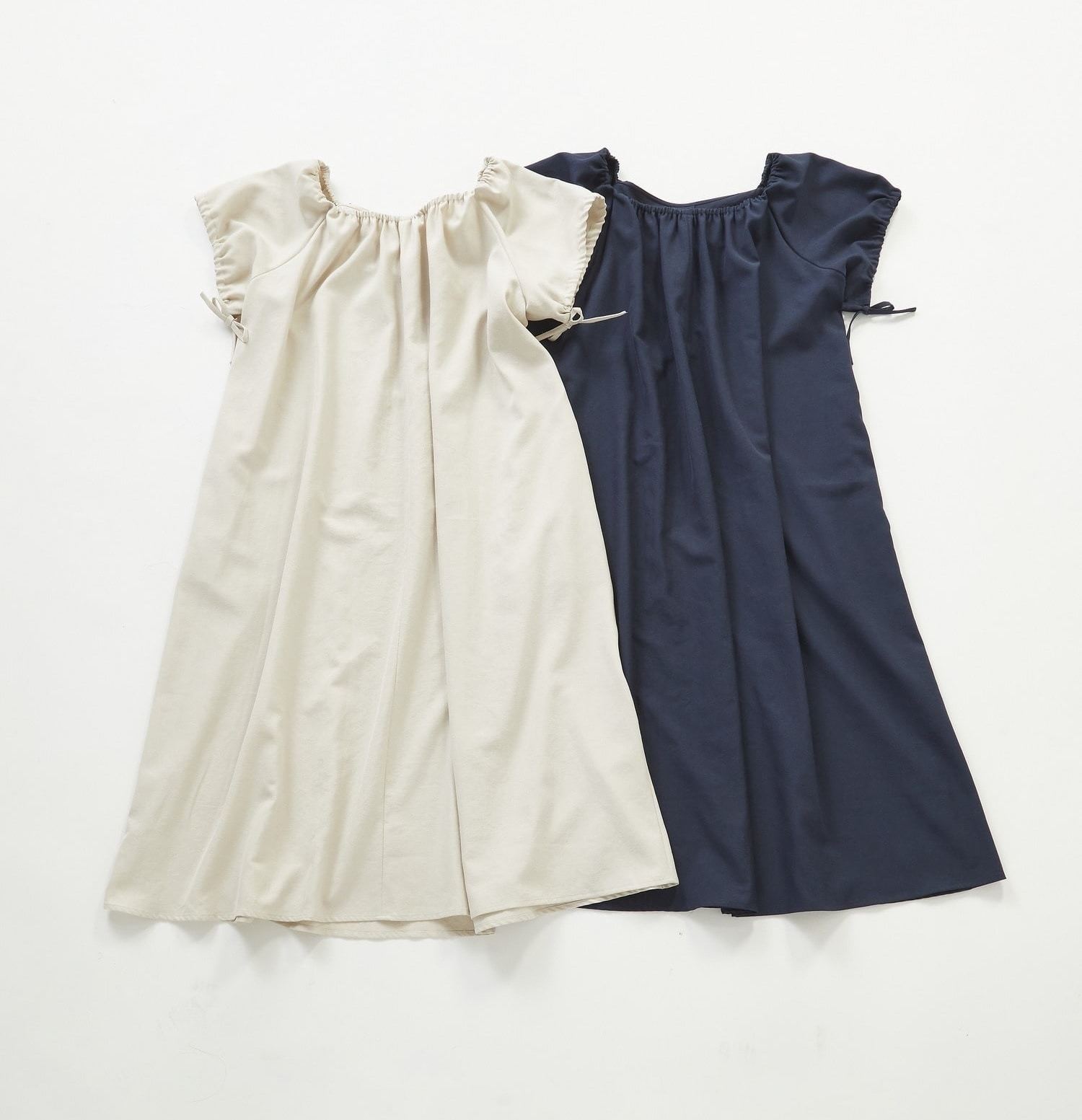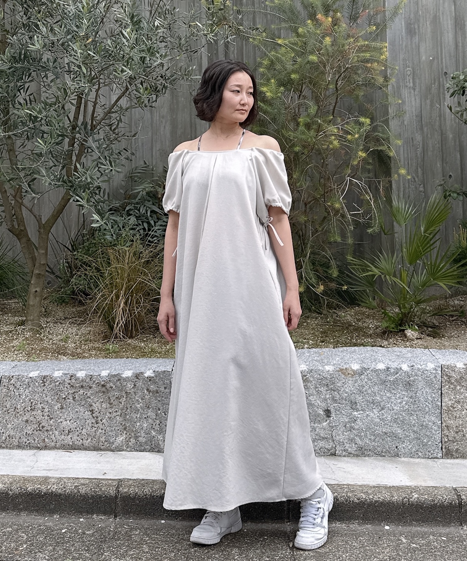 接触冷感×速乾性の快適素材に、シワが気になりにくいリネン混。さらりと着られて見た目はきれいめ、ジメジメする季節でも快適に過ごせる優秀ワンピースです。オフショルやパフスリーブにもアレンジできるので、1枚で印象チェンジも自在。デイリーに頼れる一着です。