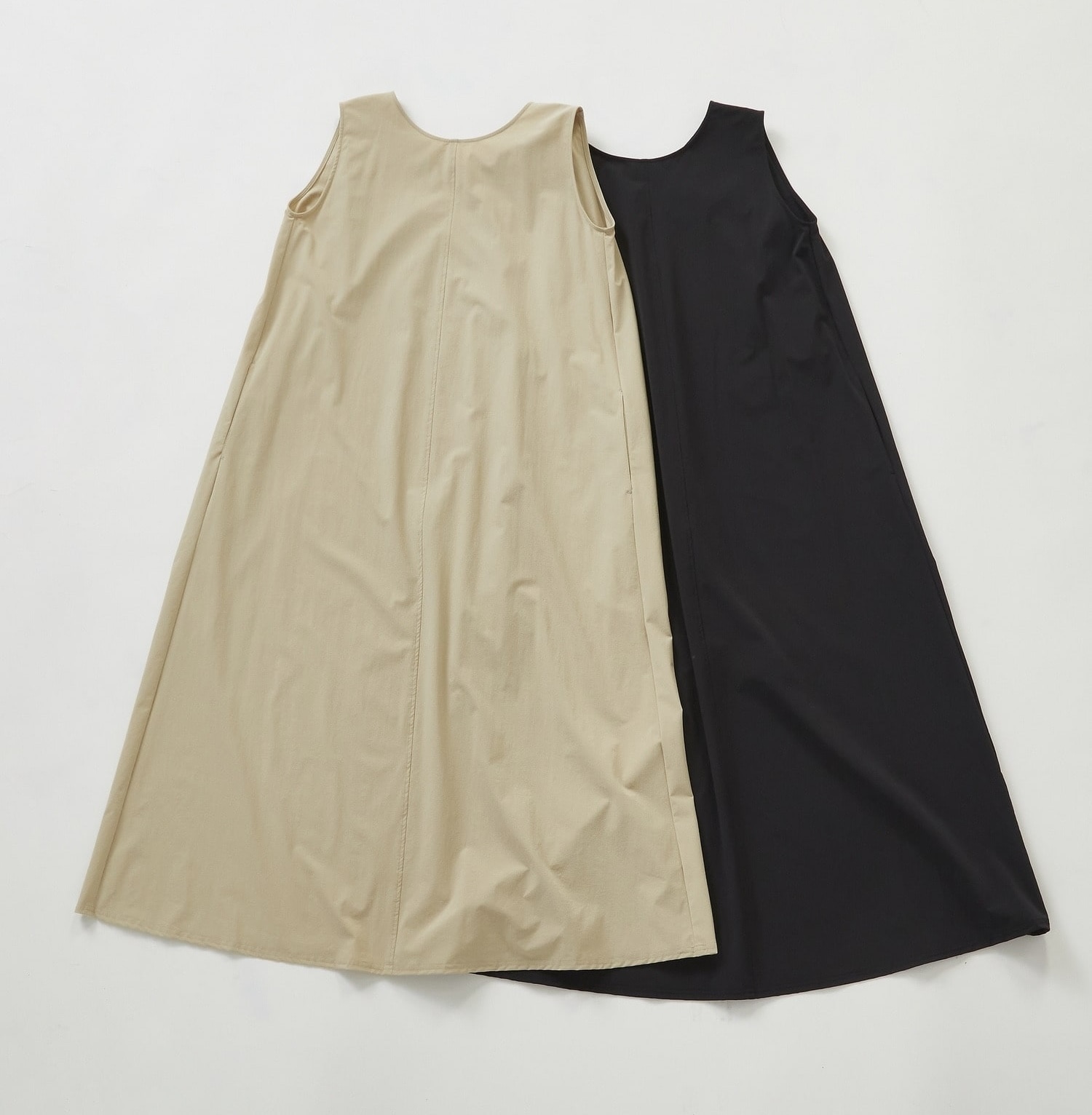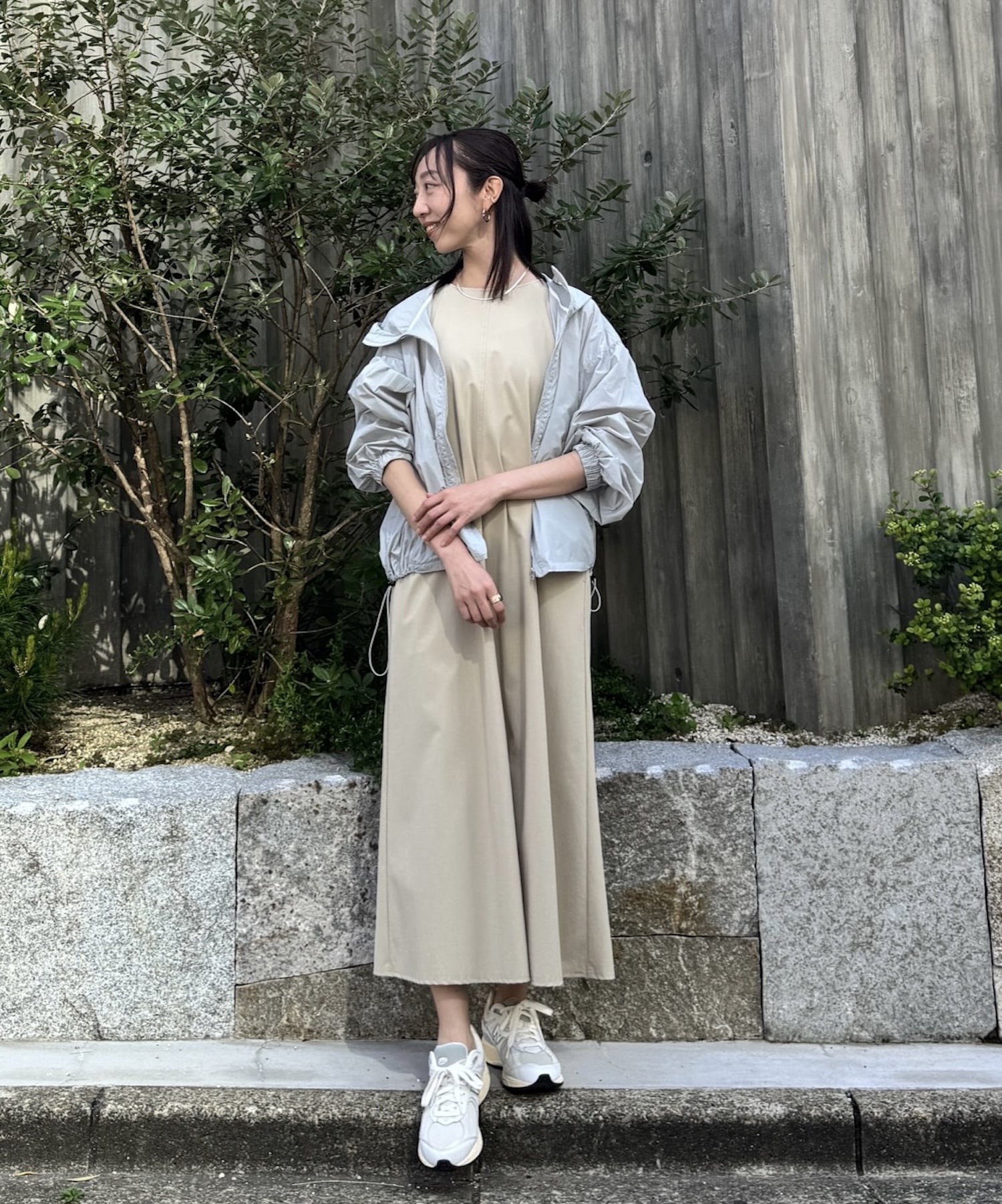 ライトブルーのブルゾン×ベージュのワンピースで、淡色なのにぼやけず爽やかに決まる大人の装いです。撥水・UVカット・接触冷感と高機能のゆったりシルエットワンピは動きやすく、ブルゾンは撥水&UVカット機能付きで、どちらも天候にも柔軟に対応。ブルゾンは気温に合わせて、サッと脱いでバッグにしまえる手軽さも魅力です。