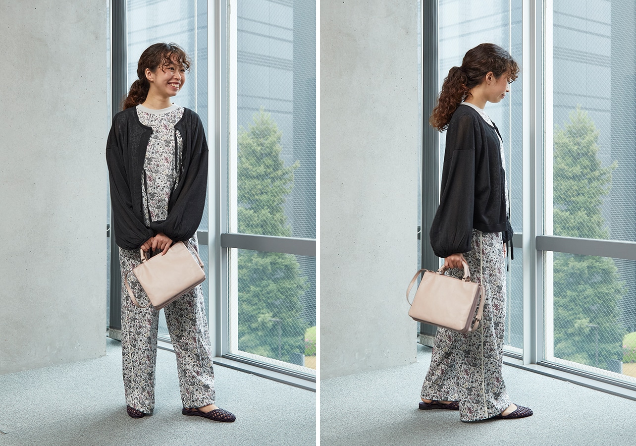 リバティプリントのイージーパンツとも好相性のアイテムです。