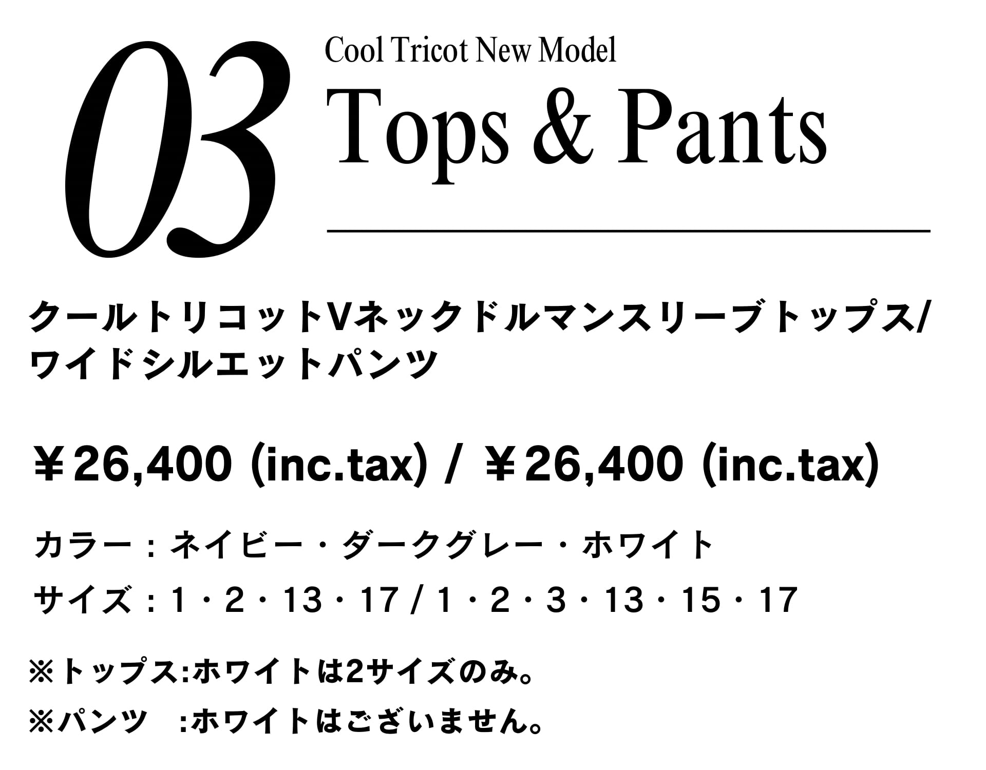 ※トップス:ホワイトは2サイズのみ