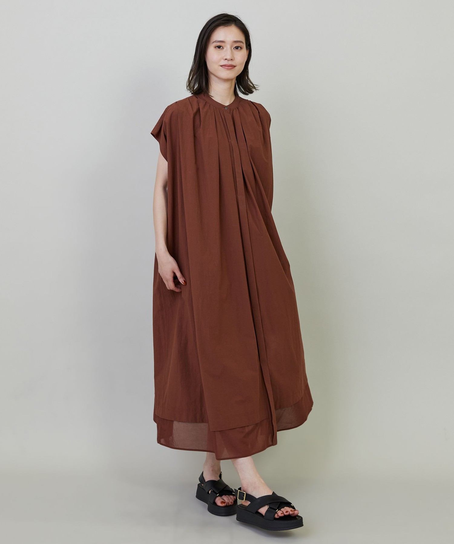 肌離れが良く、裾が同系色のシアー素材で軽さのあるデザインなので、「今買って、秋まで活躍する」アイテムとしておすすめです。