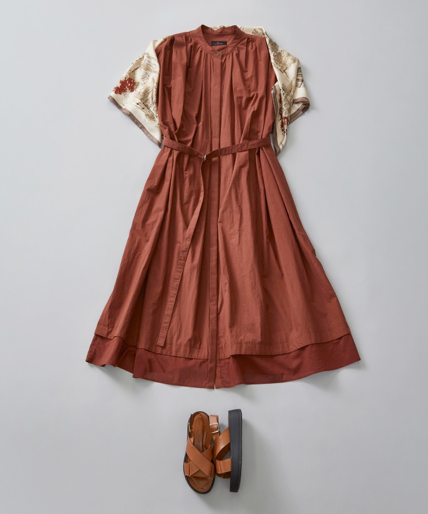 一枚でさまになるワンピースは、深みのある秋カラーが目を惹きます。