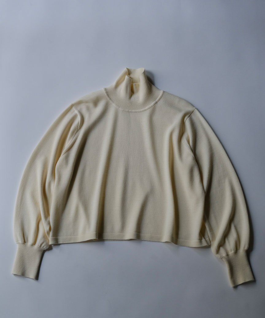ゆったりしたテントラインがリラックスした心地良さを感じるハイネックニットです。クロップド丈でどんなボトムとも相性良く着て頂けます。