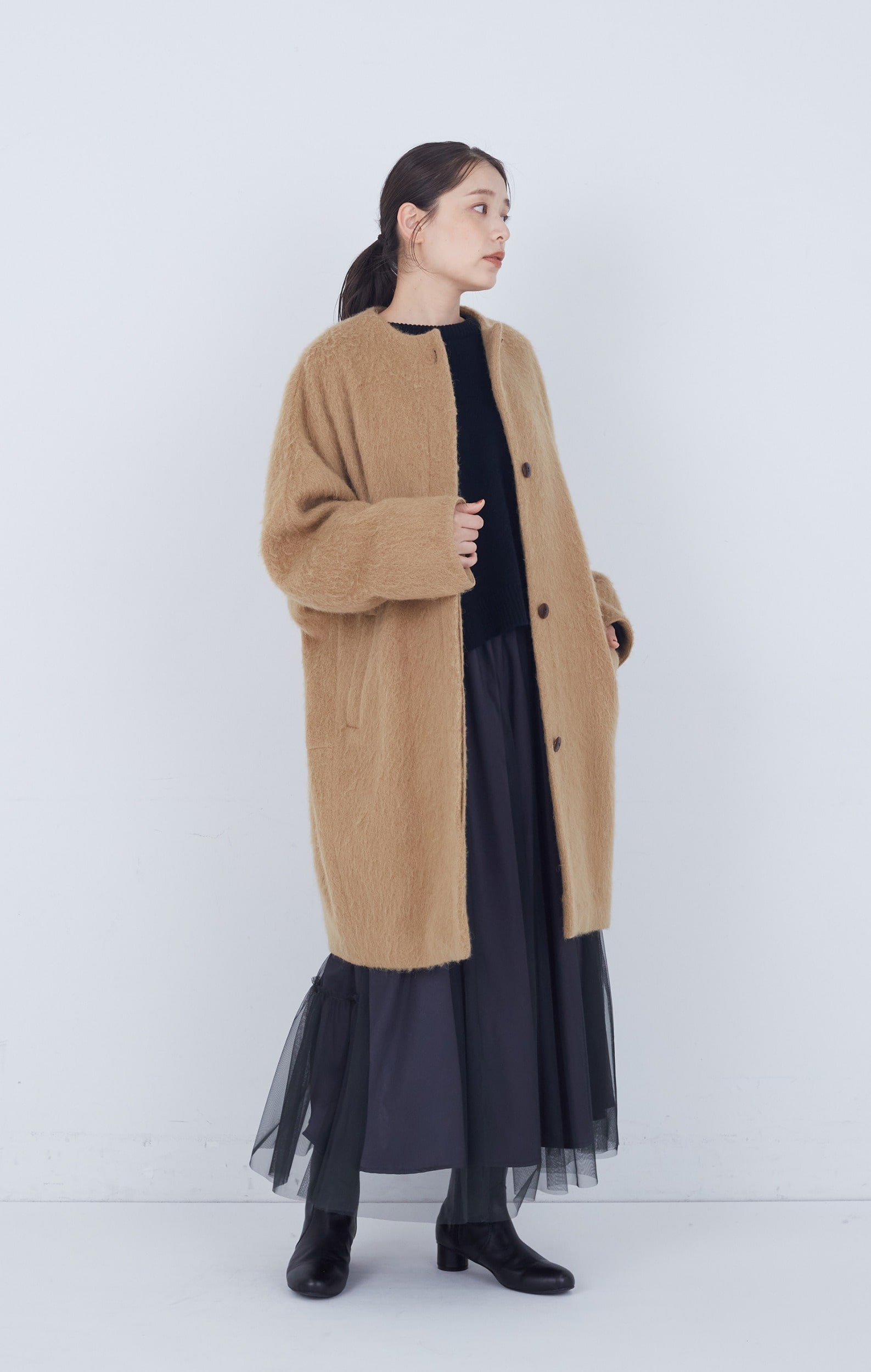 ふんわりとした毛足のアルパカ混のシャギー素材。