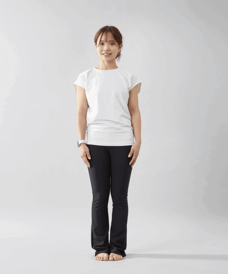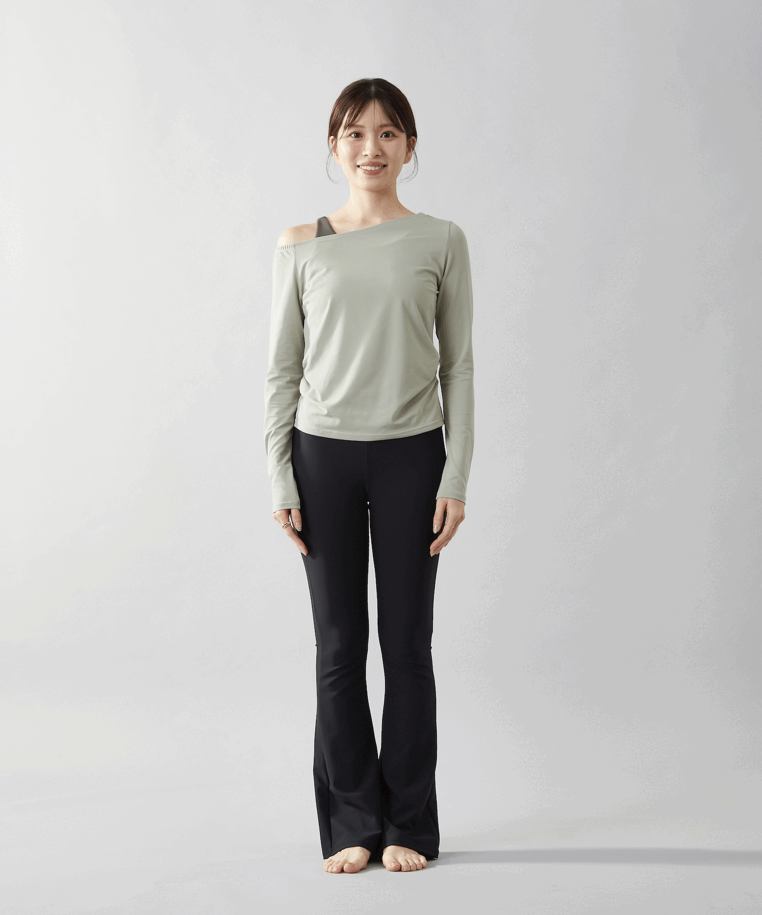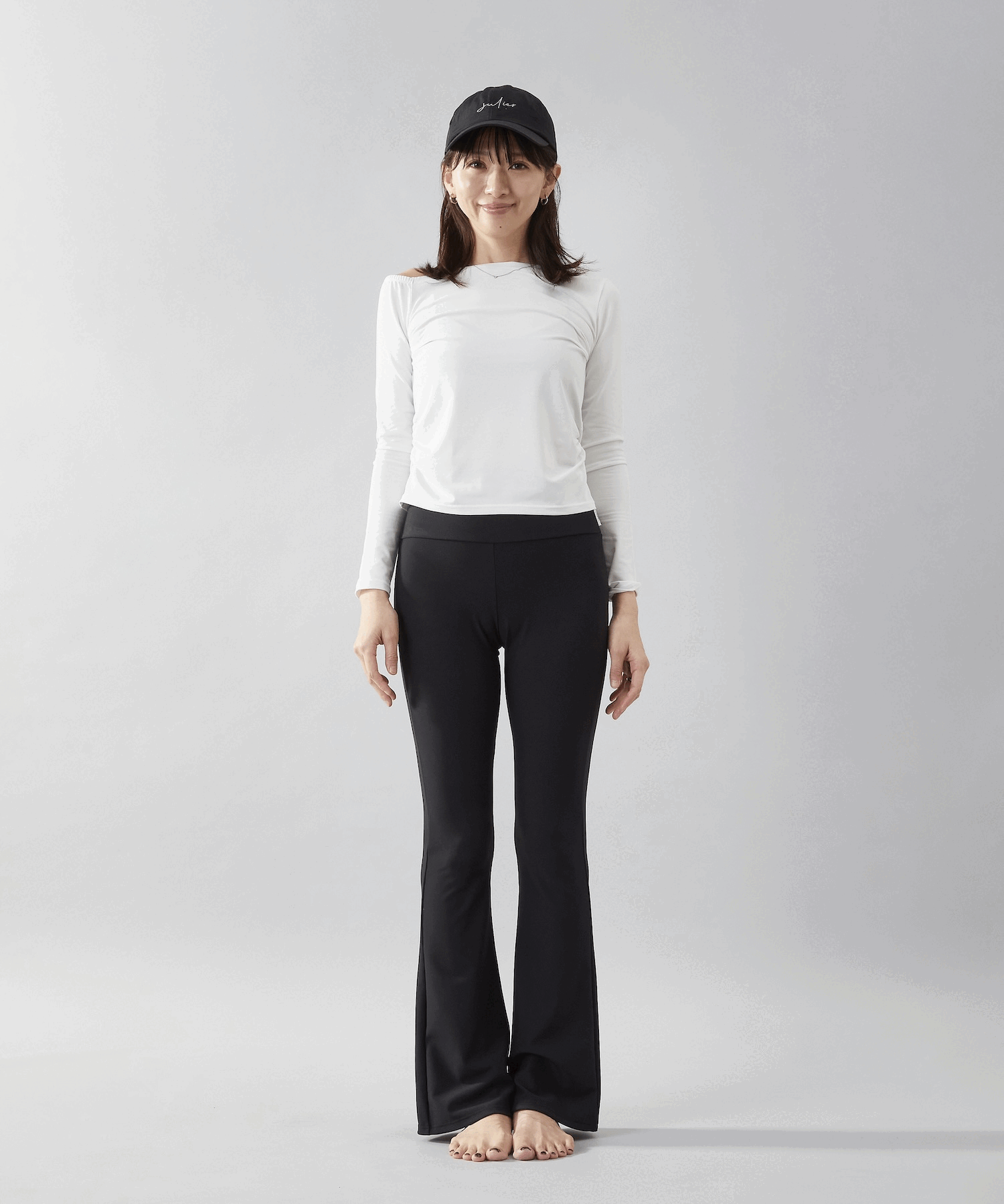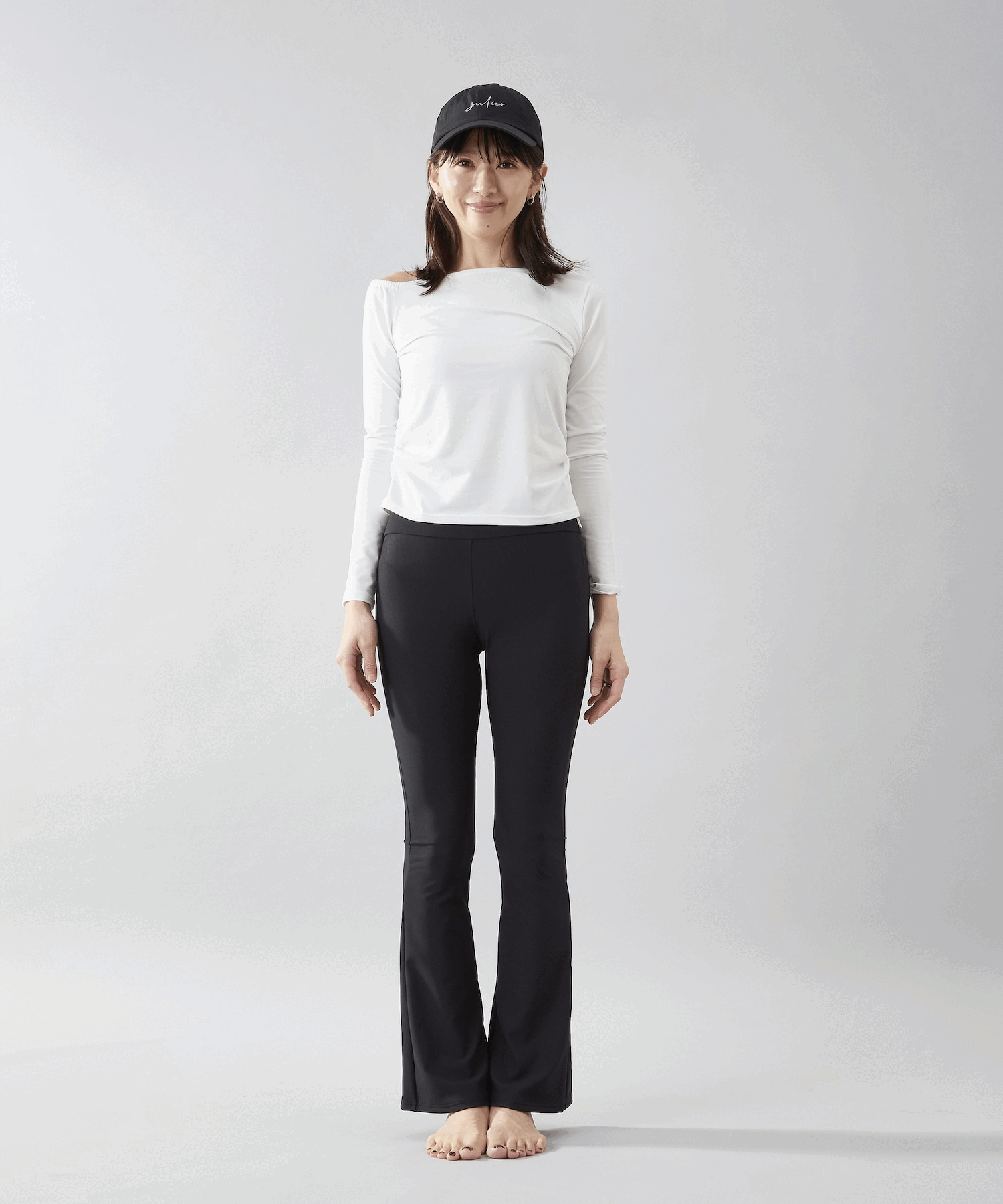 サイズ1は、丈が長めのためワークアウトにはやや不向きですが、スニーカーやヒールを合わせたデイリー使いならちょうどよく着こなせます。用途に合わせて選ぶのがおすすめです。」