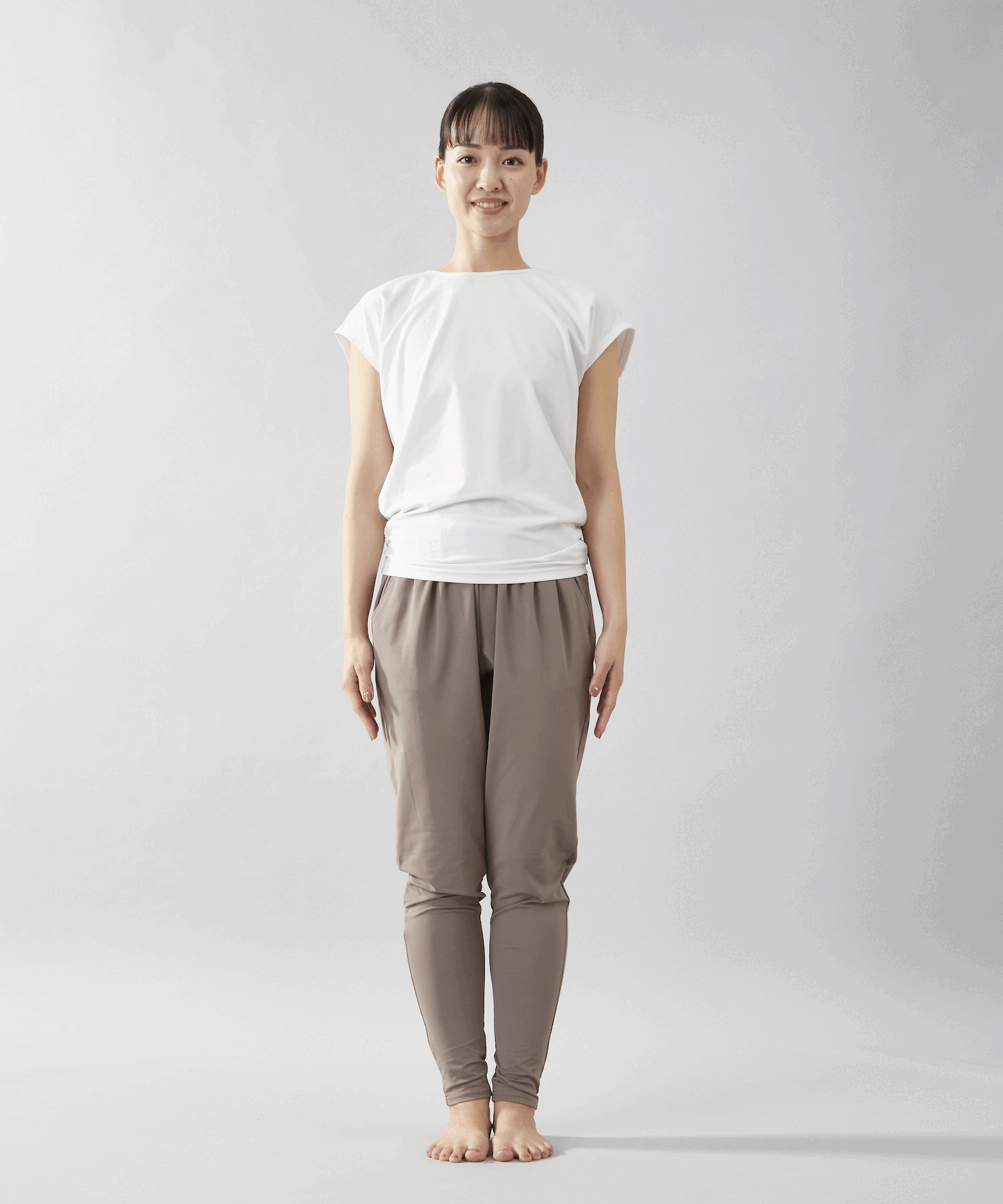 「サイズ0は、足首でやや余りが出る丈感で、すっきりとした印象に。