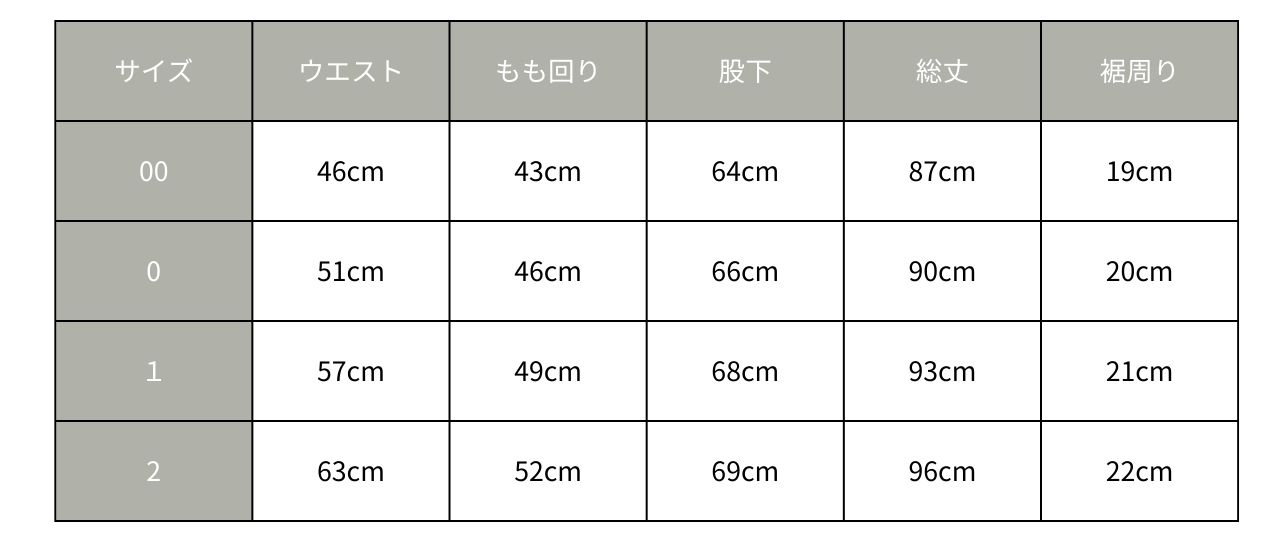 「サイズ0は、足首に少し余りが出る丈感で、全体をすっきりと見せてくれます。